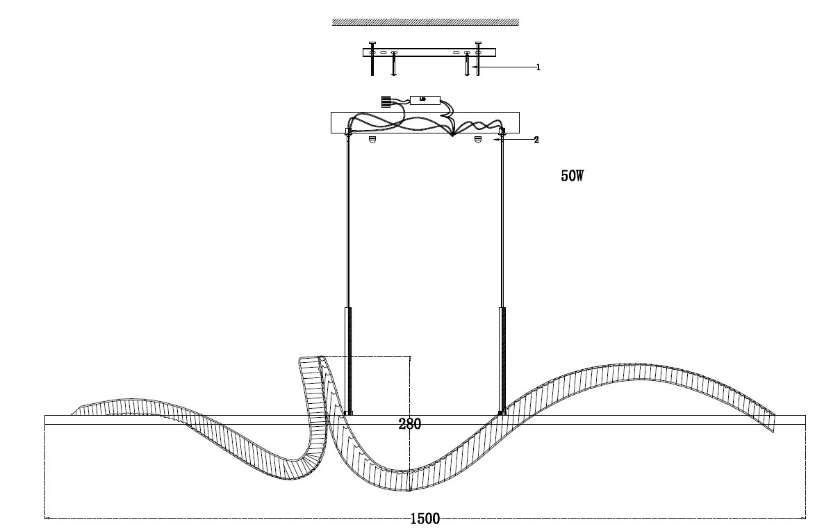 Lampa RITZ ma niezwykły kształt, przypominający płynne linie serpentyny lub falę.