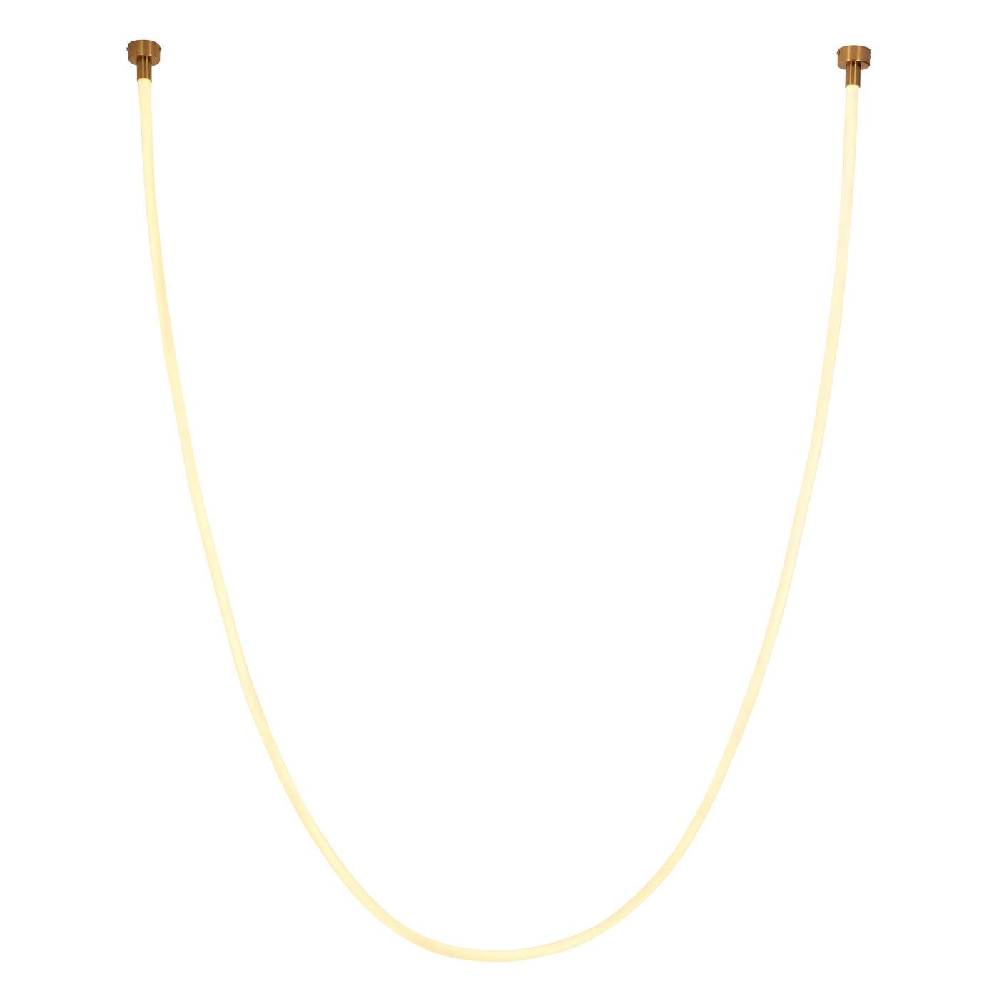 Wąż ledowy zamocowany jest na złotych, eleganckich uchwytach przytwierdzanych do sufitu.