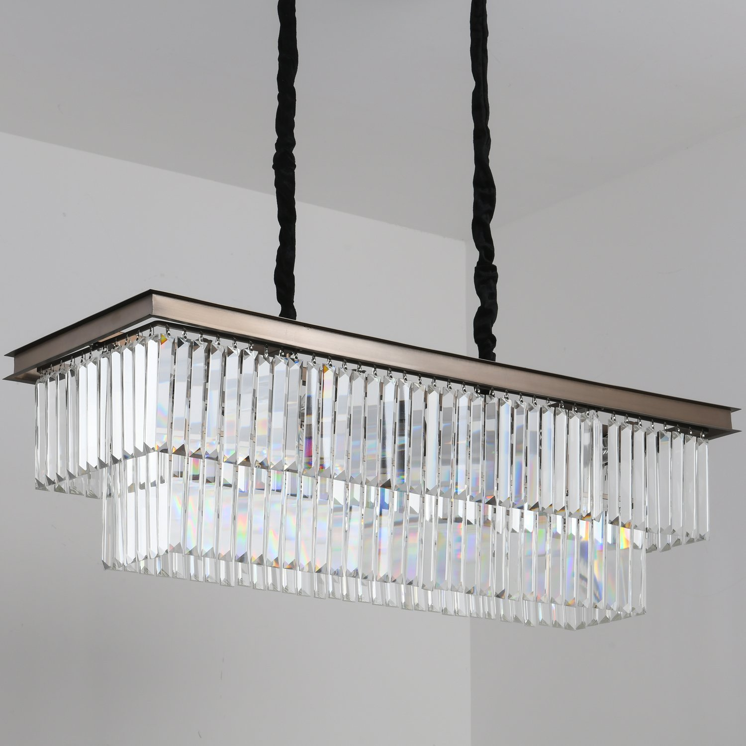 Lampa wisząca SPARKLE DOUBLE to luksusowa, imponująca, kryształowa lampa zwieńczona prostokątną ramą w kolorze szczotkowanego antracytu.