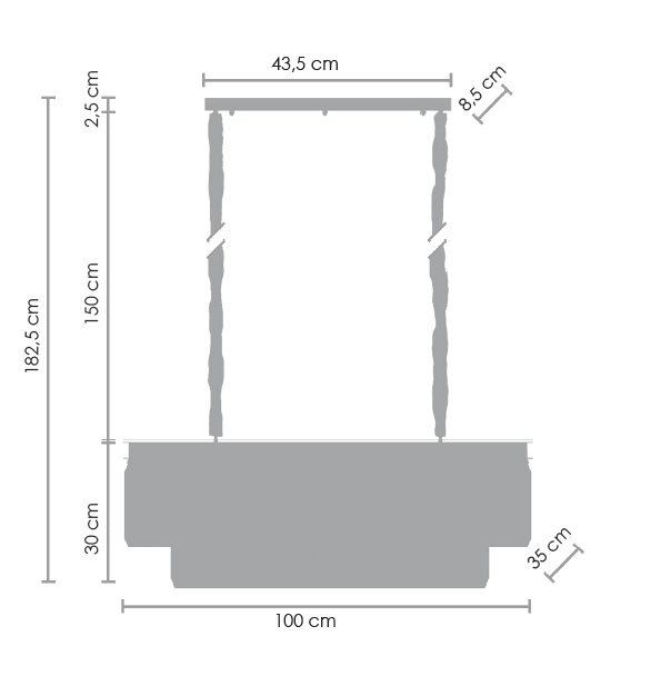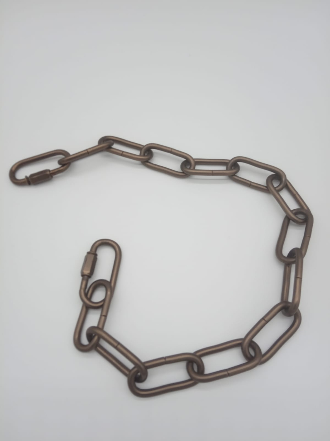 Całość zawieszona jest na stalowym łańcuchu w tekstylnym oplocie z możliwością regulacji i owalnej podsufitce w kolorze oprawy oświetleniowej.