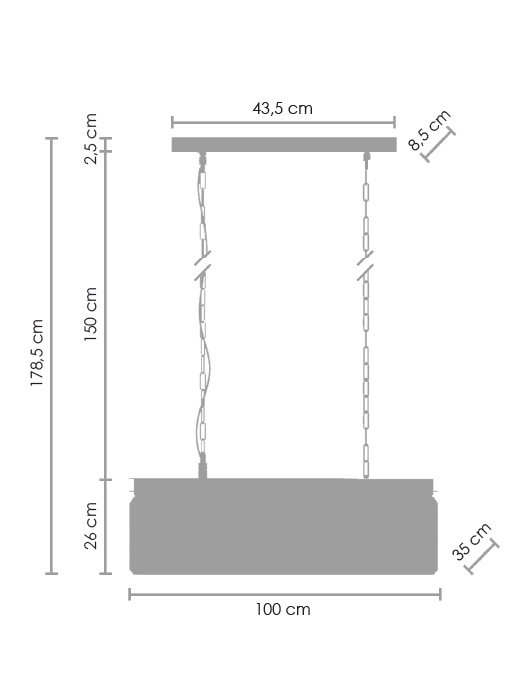 Lampa wyposażona jest w przewód PVC +łańcuch antracytowy o długości 150 cm