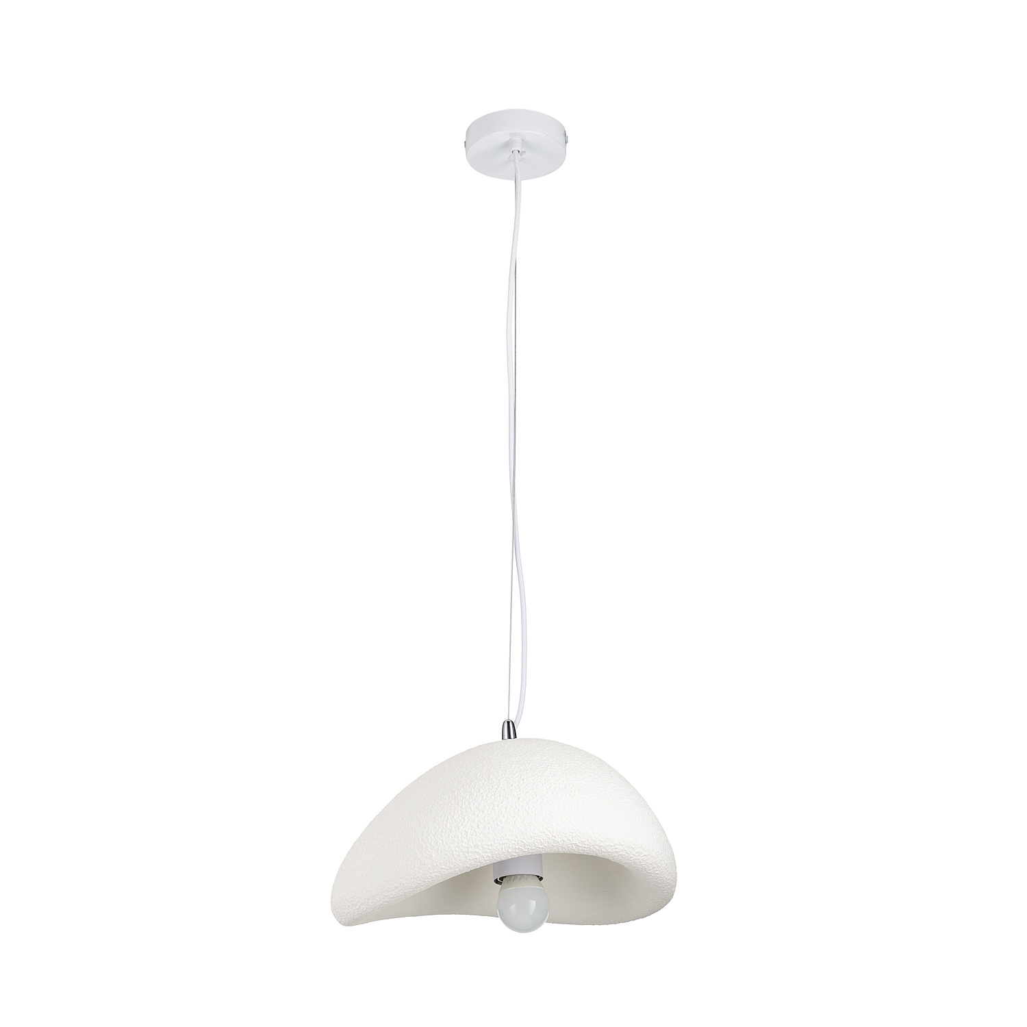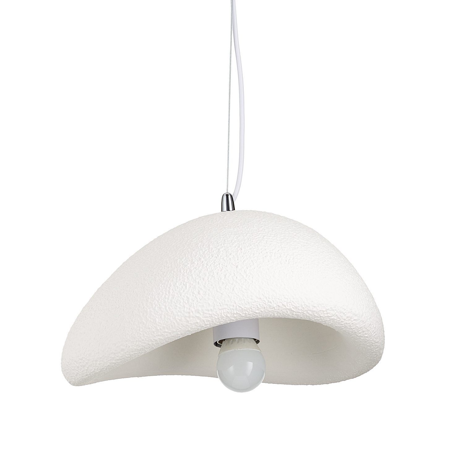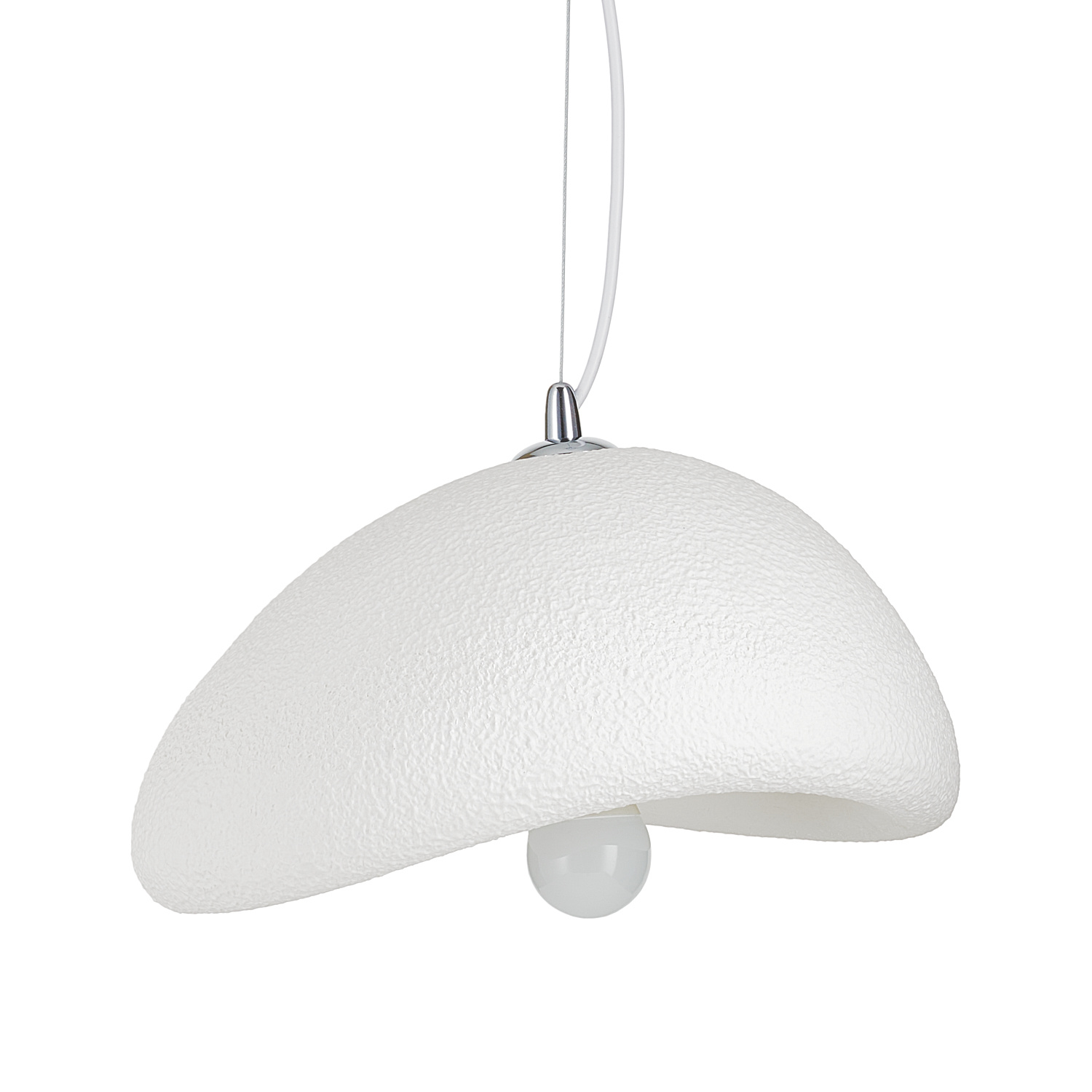Biała lampa wisząca z serii STONE to ponadczasowy i niepowtarzalny design swoim kształtem przypominający kamień