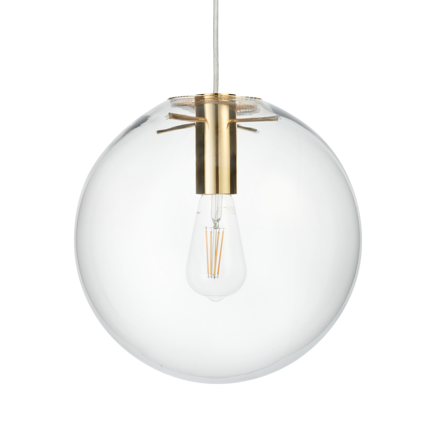 Minimalistyczna, subtelna lampa wisząca TONDA w kształcie szklanej kuli, wykonana jest z transparentnego szkła.