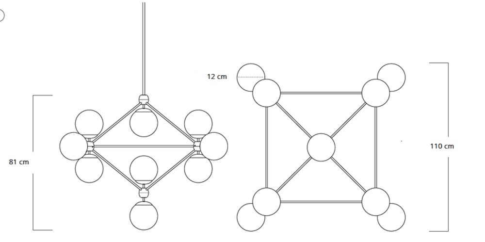 Cechą charakterystyczną lampy ASTRIFERO jest jej czarny, metalowy stelaż na planie trójkąta, swoim kształtem przypomina figurę molekularną.
