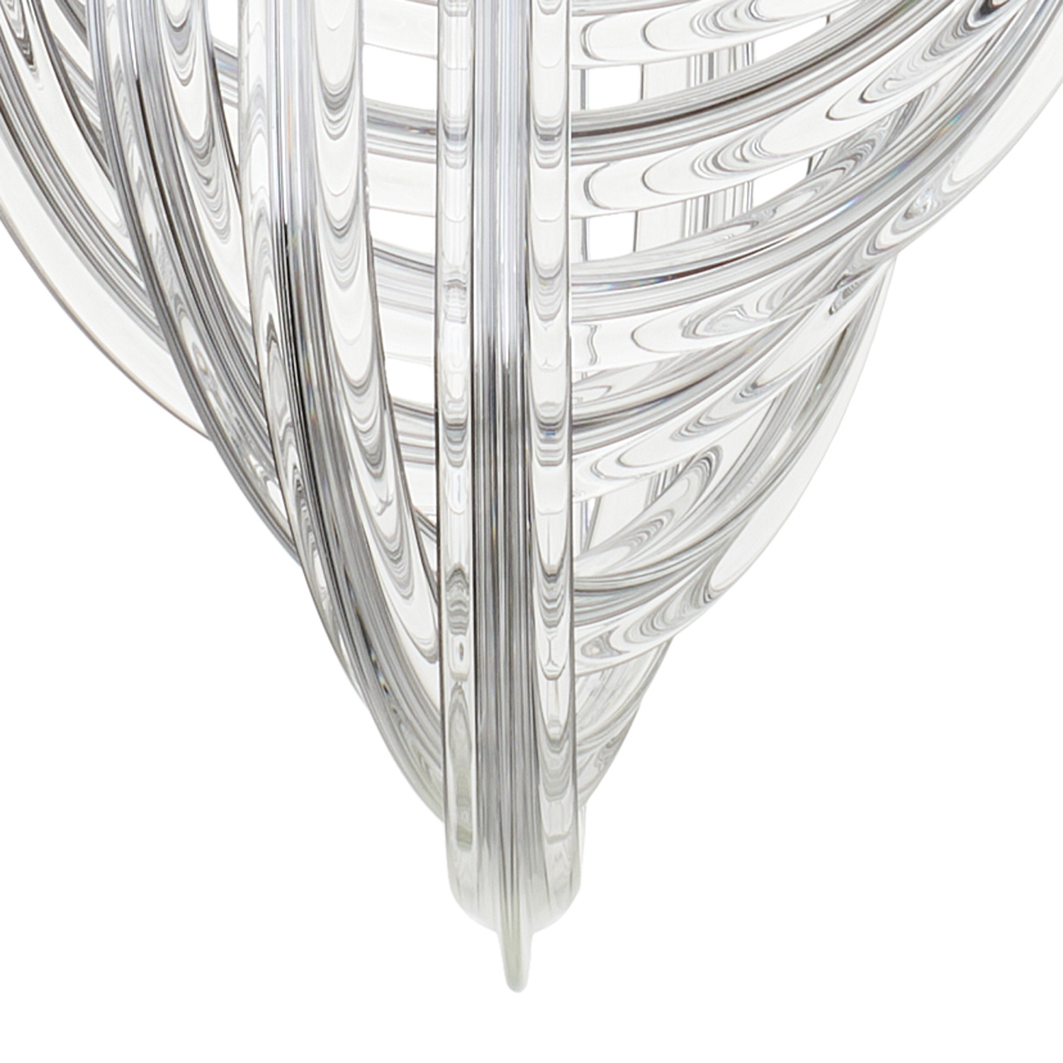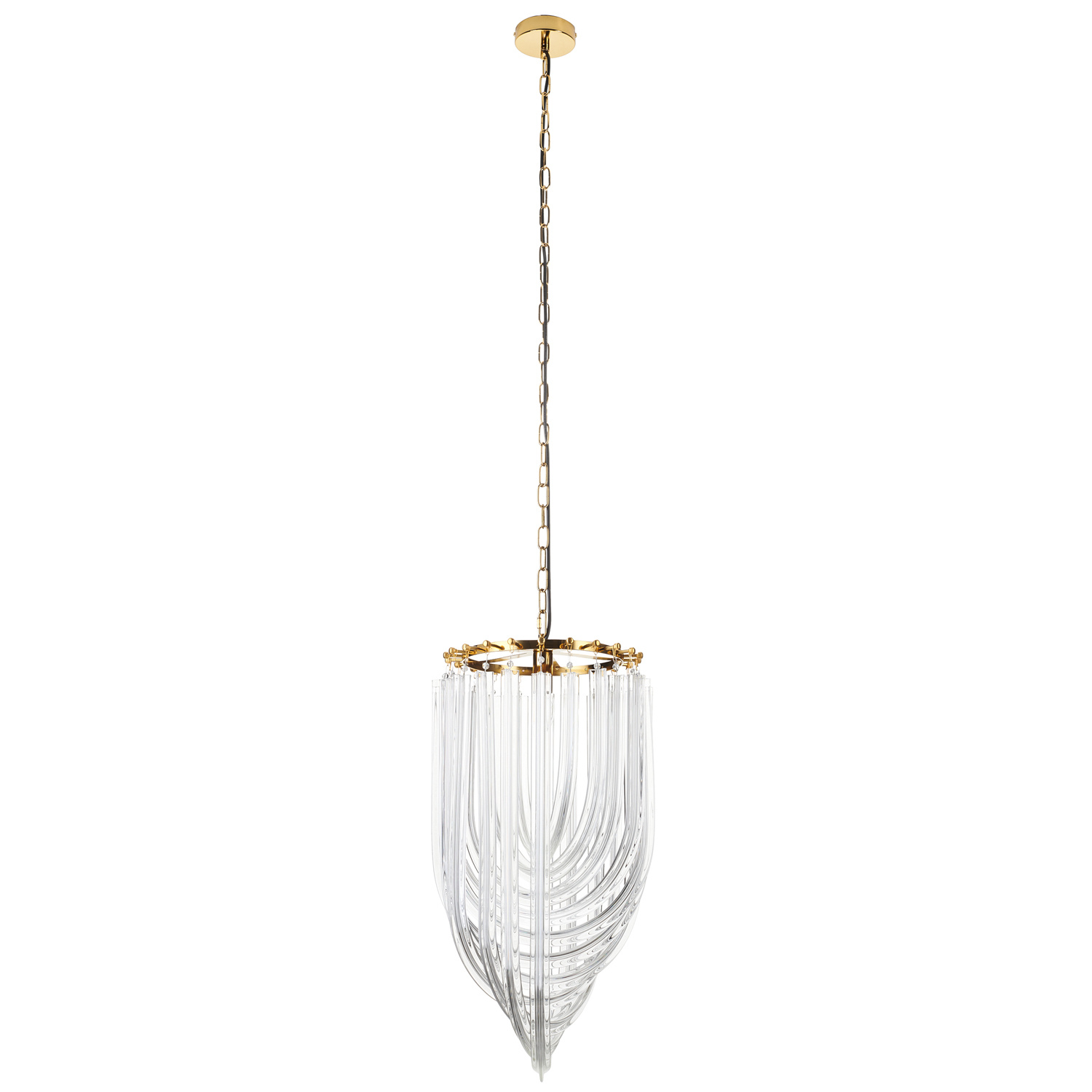 Opadające kryształowe rurki dodają lampie delikatności i lekkości.