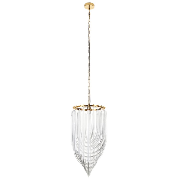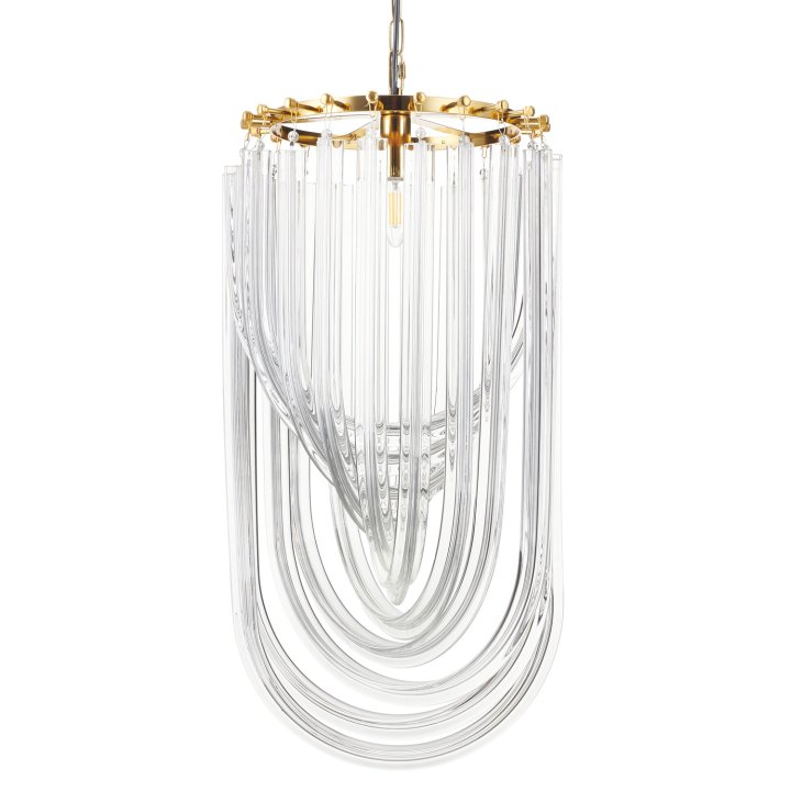 Charakteryzuje się smukłą, złotą oprawą, z której zwisają kaskadowo długie szklane rurki/kryształy