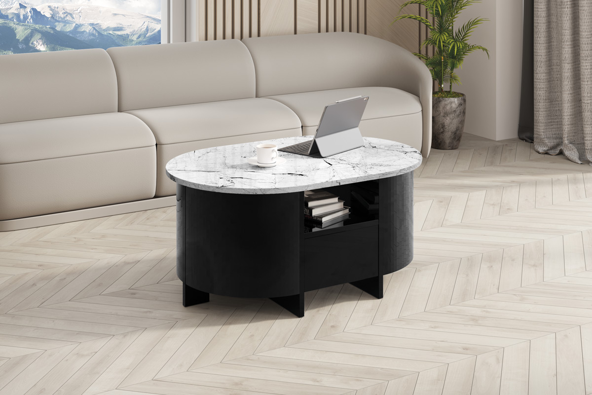 Strona główna » Meble » Ławy » Ława Lumia Biało / Czarny Wysoki Połysk