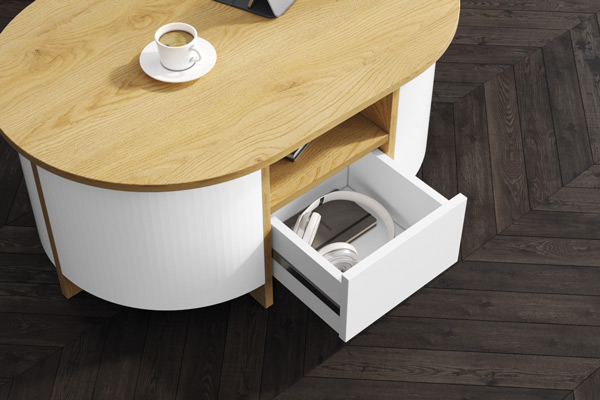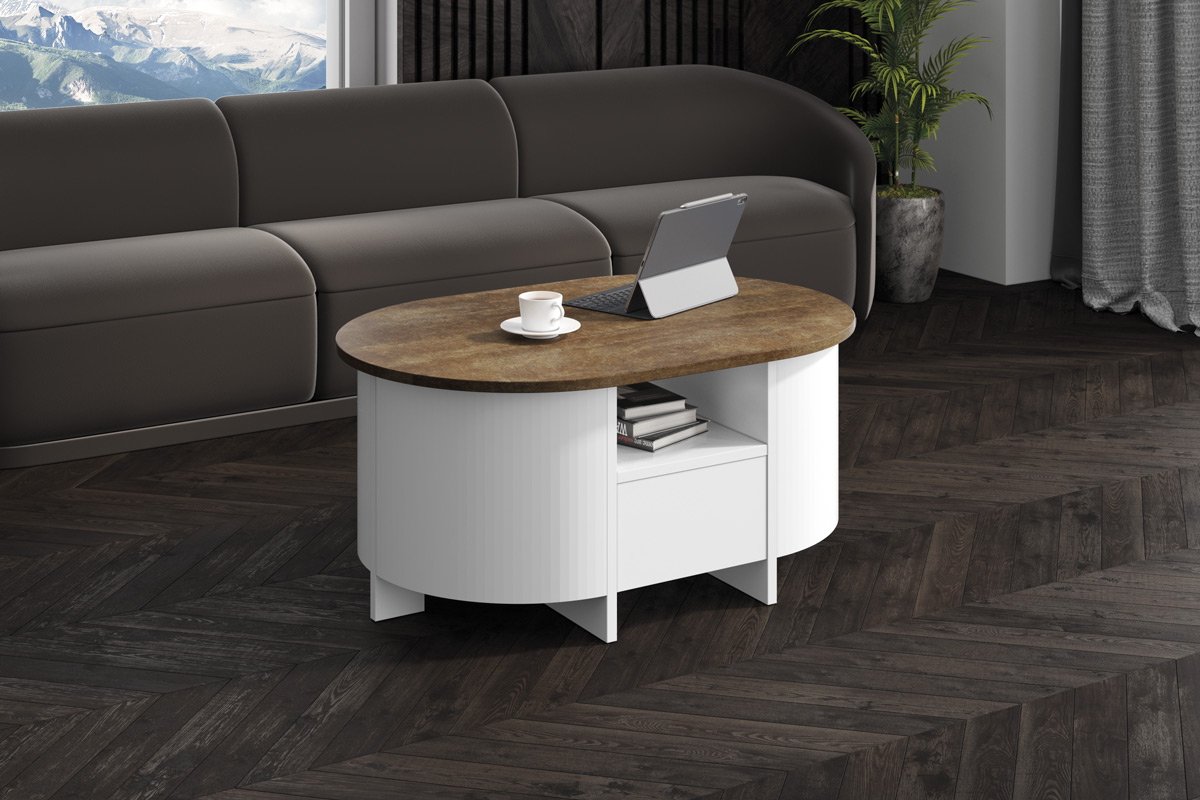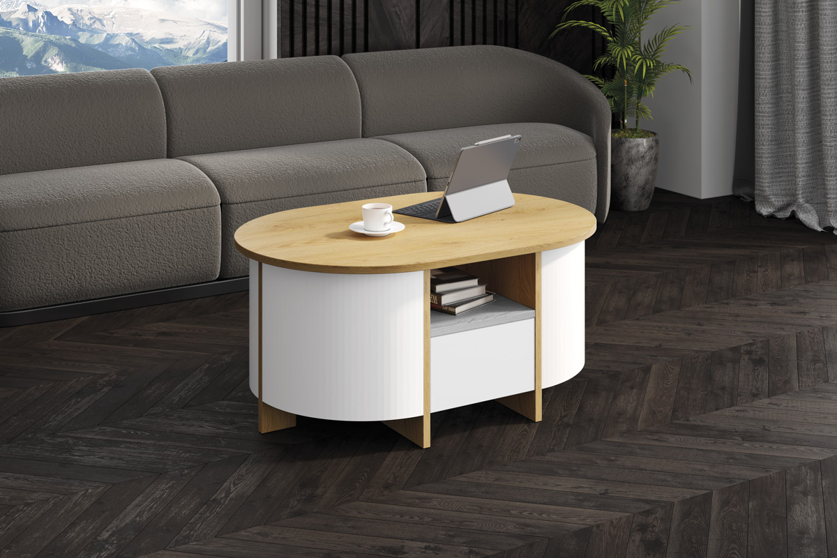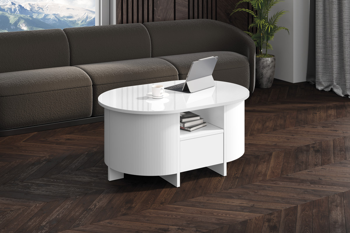 Ława owalna LUMIA  to niezwykle elegancki projekt firmy Hubertus. Wyróżnia ją nowoczesny, minimalistyczny design: owalny blat (w efektownym wykończeniu na wysoki lustrzany połysk, głęboki aksamitny mat lub super print) w najmodniejszych kolorach i wzorach sezonu.