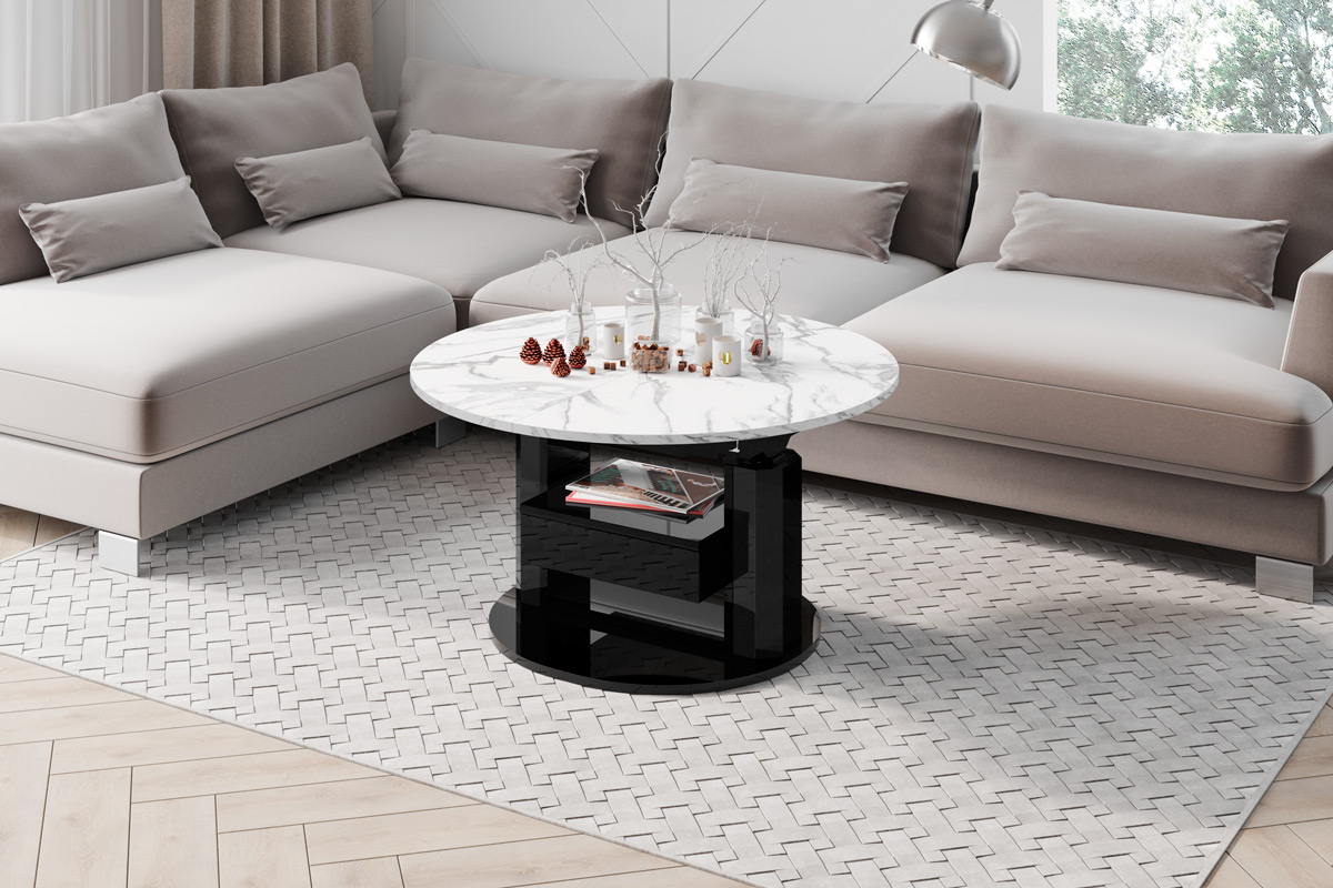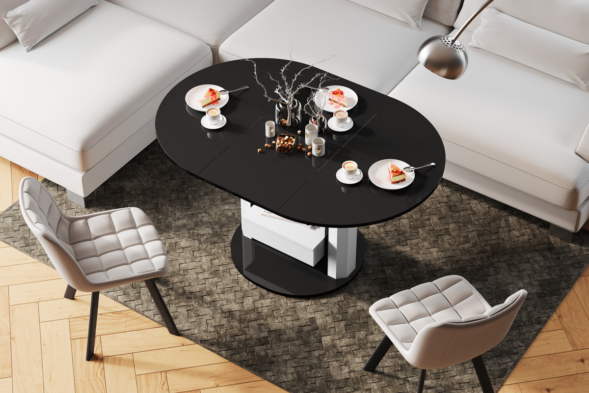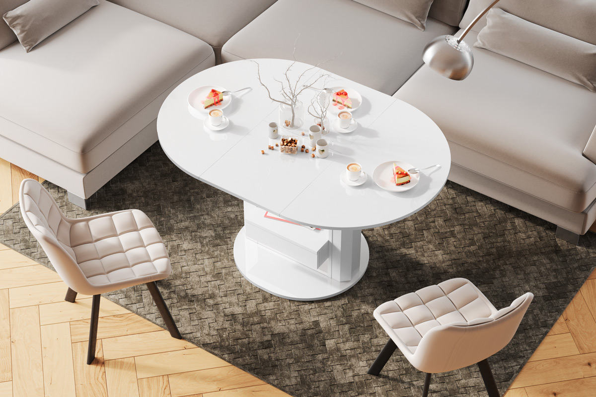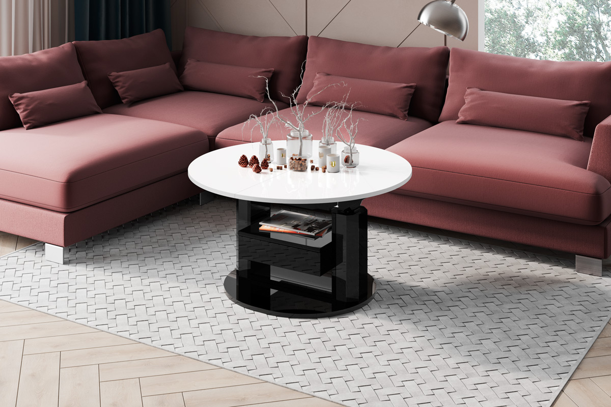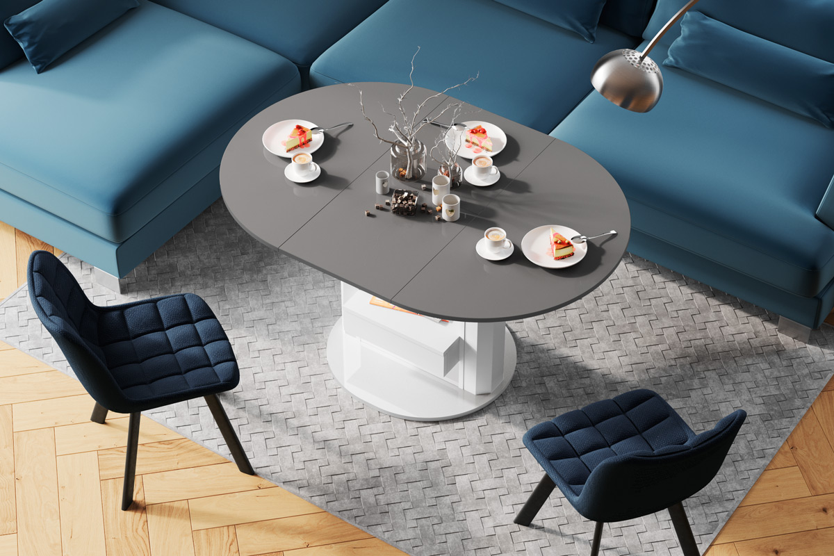 Ławostół PRIMO MAX charakteryzuje się prostotą designu, najwyższą jakością wykonania i wymiarami standardowej okrągłej ławy, która w krótkiej chwili może zmienić się w pełnowymiarowy stół. Funkcja rozkładania pozwala na zwiększenie powierzchni użytkowej ze 100 cm do 144 cm (pod blatem umieszczona jest dodatkowa wkładka powiększająca, podzielona na 2 części).