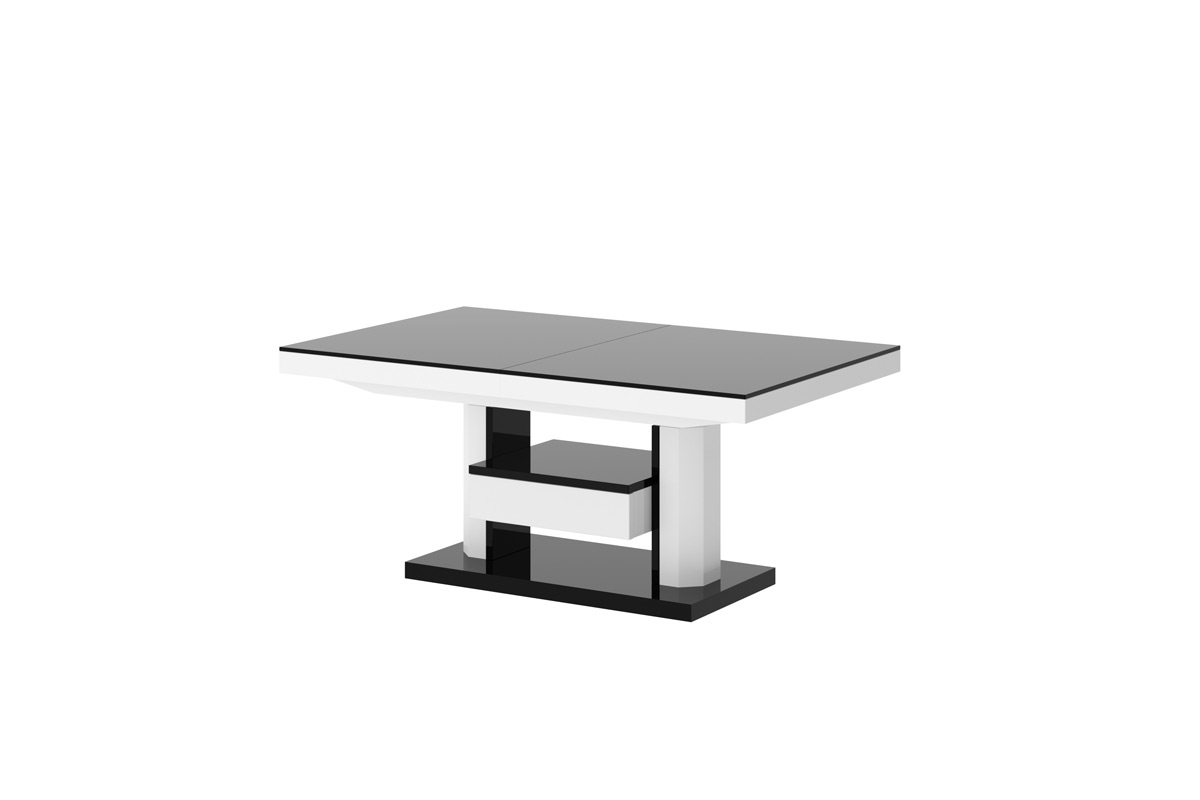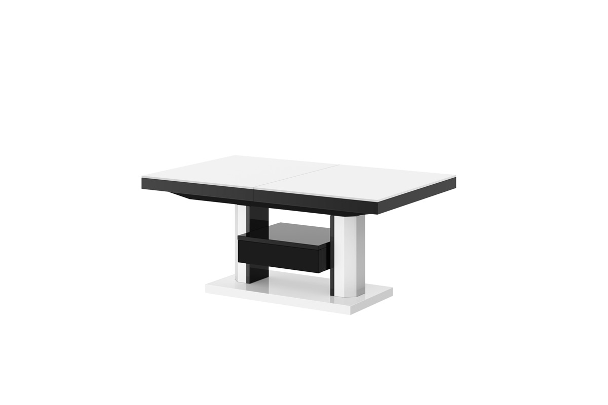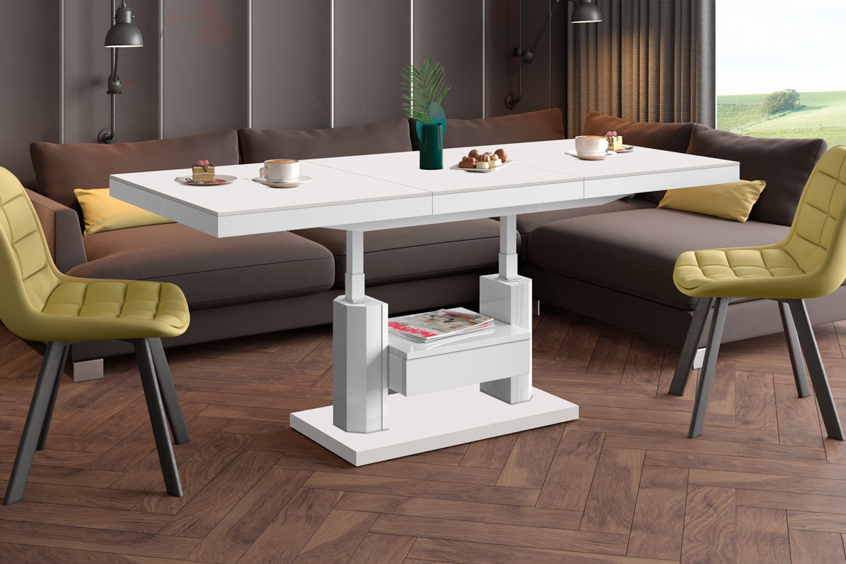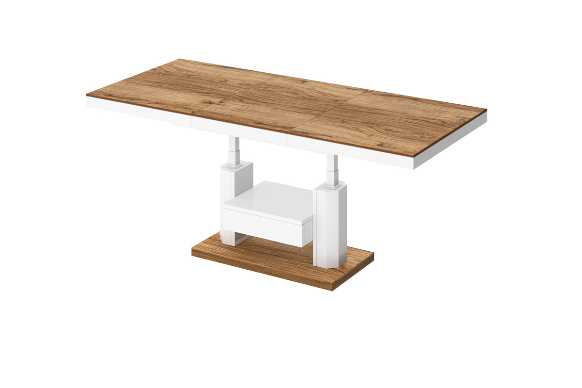Ławostół Quadro Max to najnowsza propozycja producenta mebli Hubertus. Wychodząc naprzeciw oczekiwaniom klientów, bestsellerowy model  ławostół Quadro Lux – został doposażony w funkcjonalną szufladę i półkę. Ławostół posiada funkcję rozkładania i podnoszenia i w krótkiej chwili może zmienić się z eleganckiego stolika kawowego w pełnowymiarowy stół.