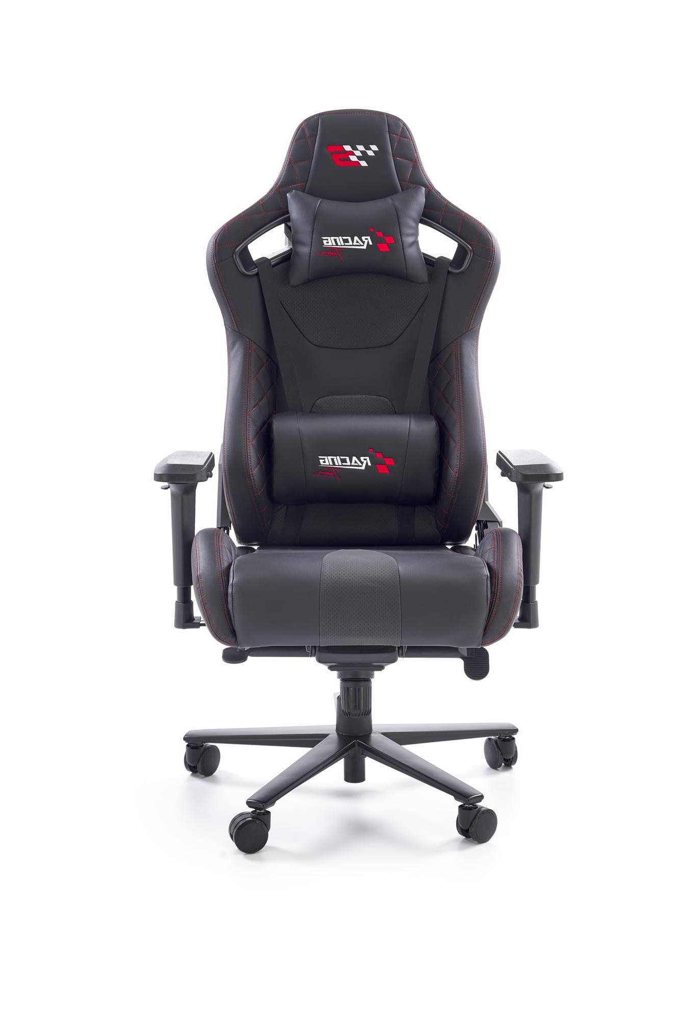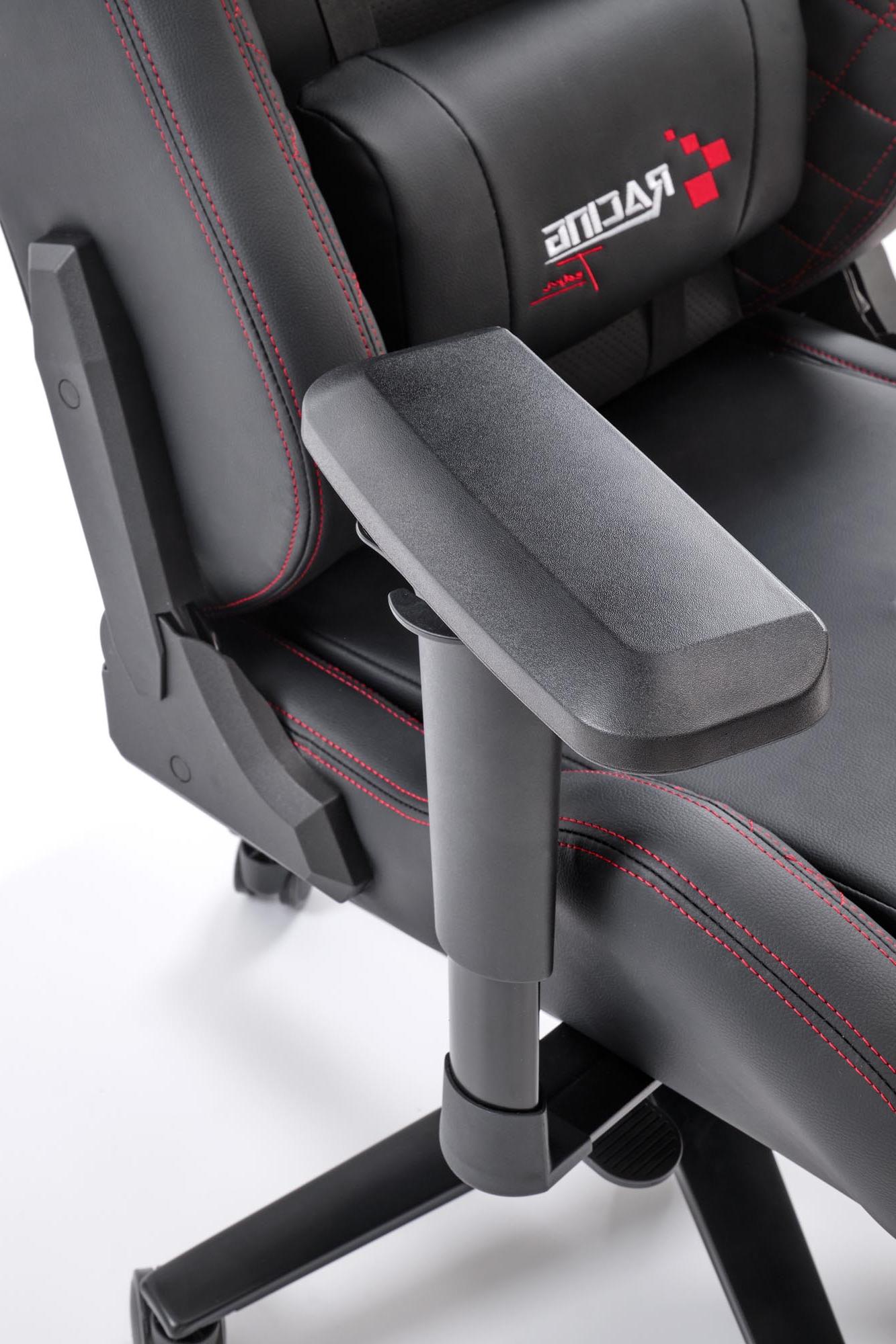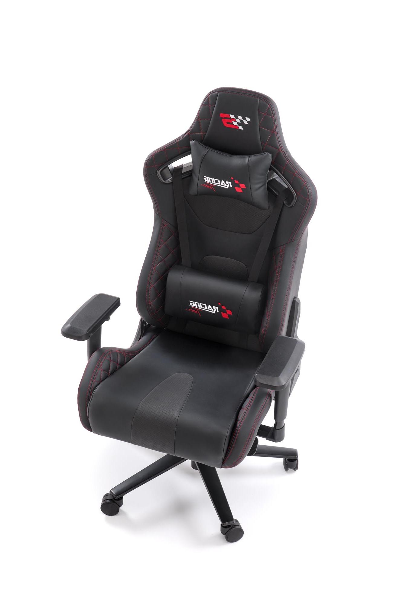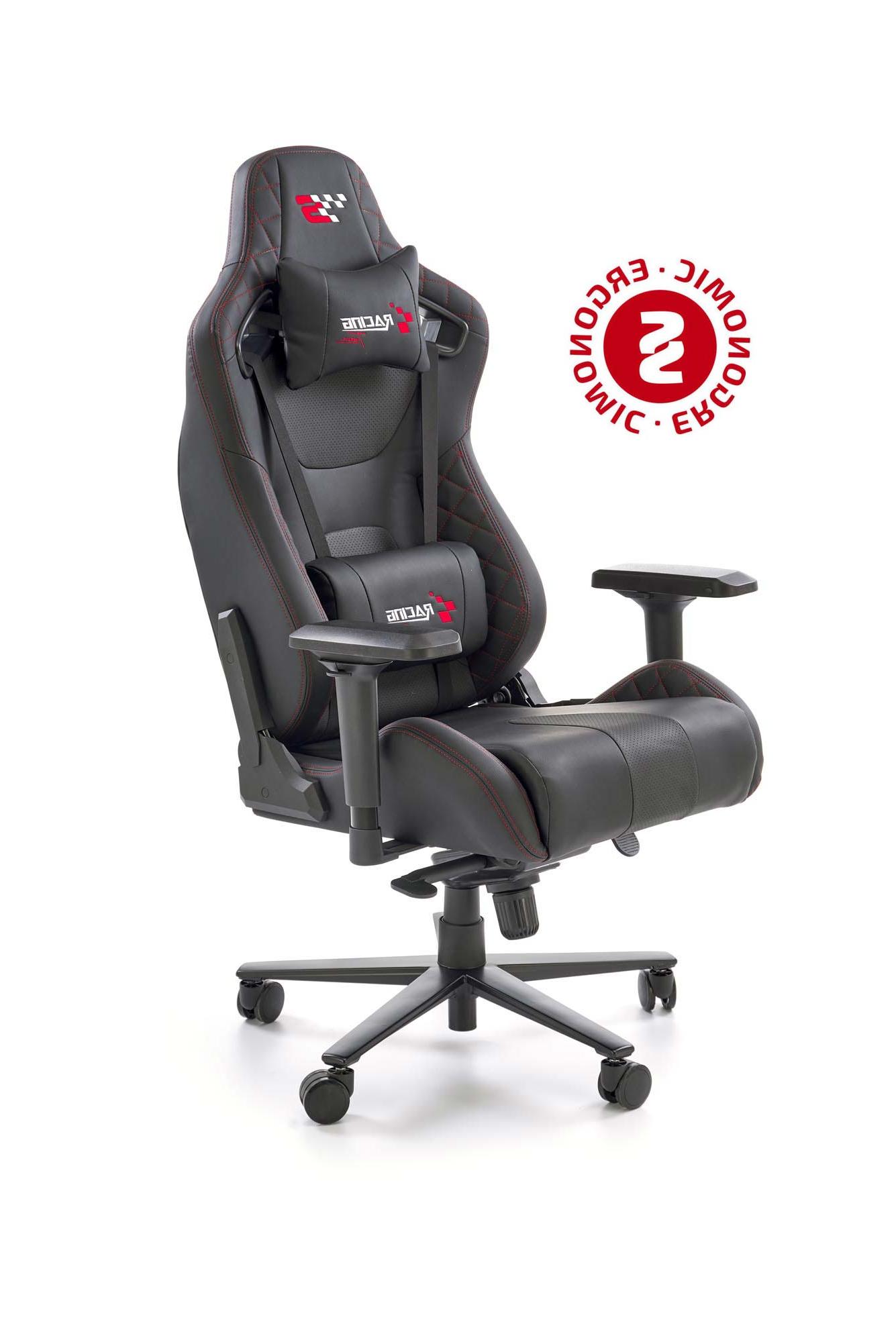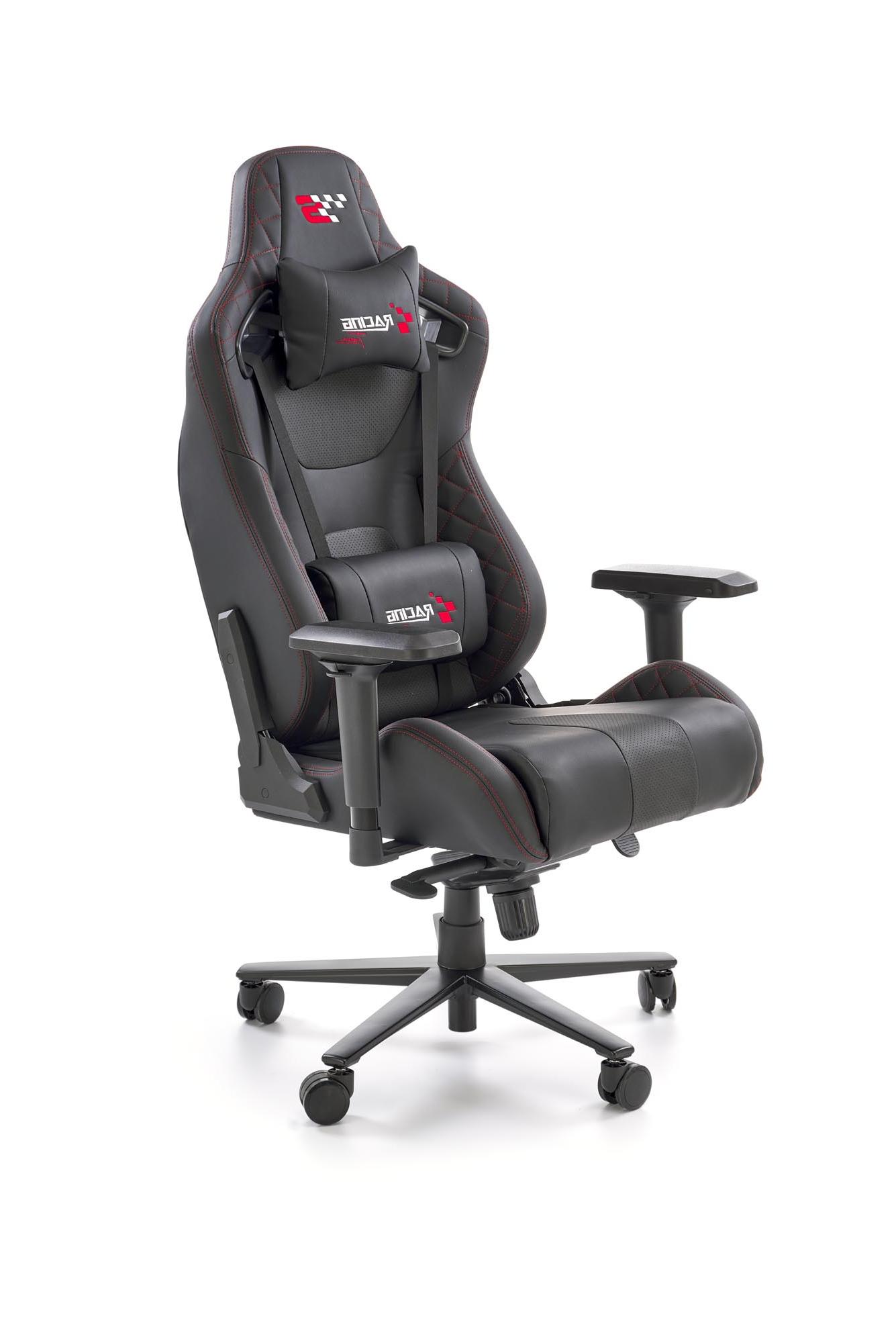 Nowoczesny Fotel dla gracza, z poduszkami na kark i lędźwie, regulowane podłokietniki, kolor czarny, eko skóra