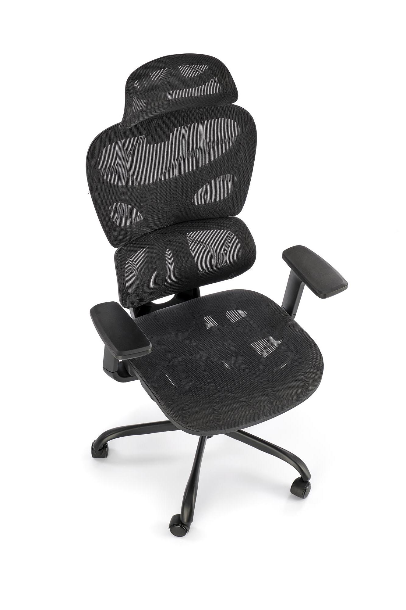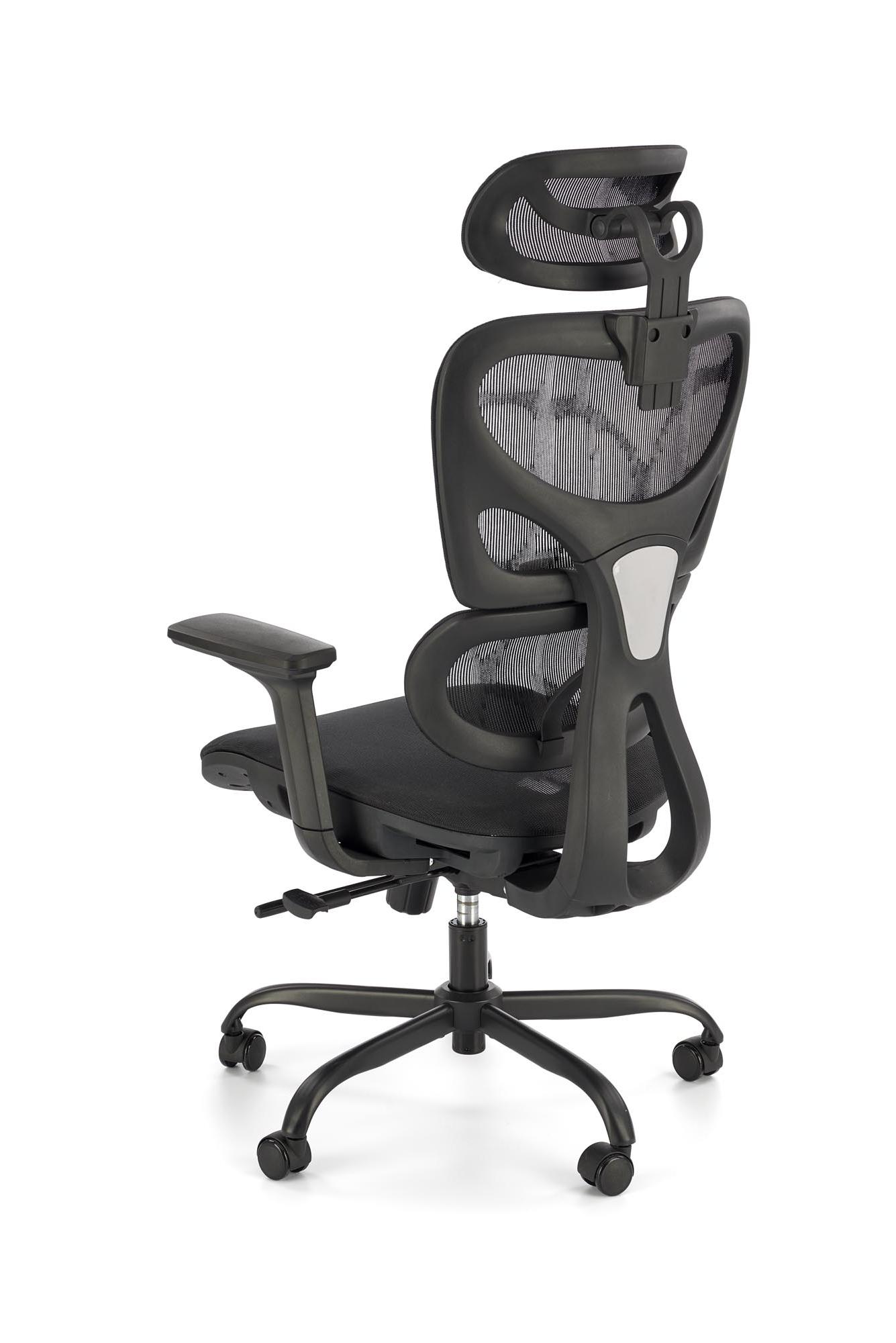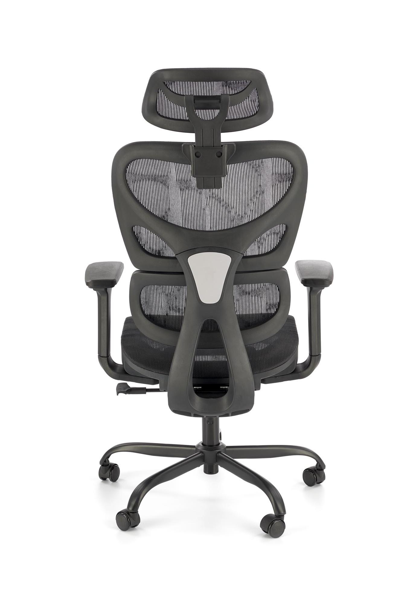 Nowoczesny Fotel do biurka z zagłówkiem i czarną obrotową podstawą, oparcie siatka