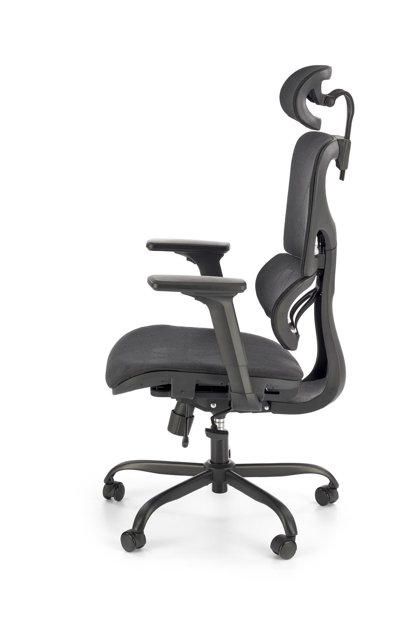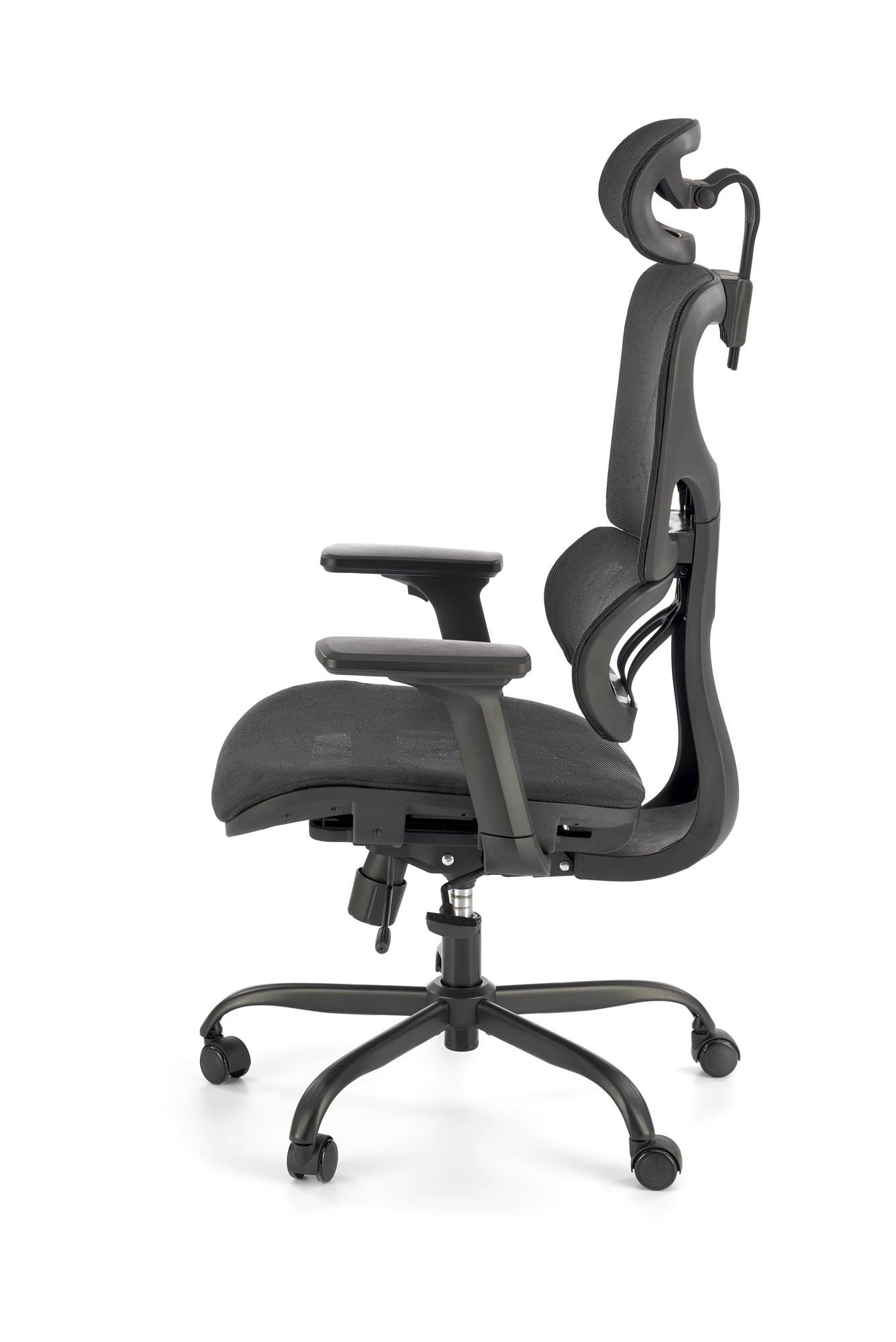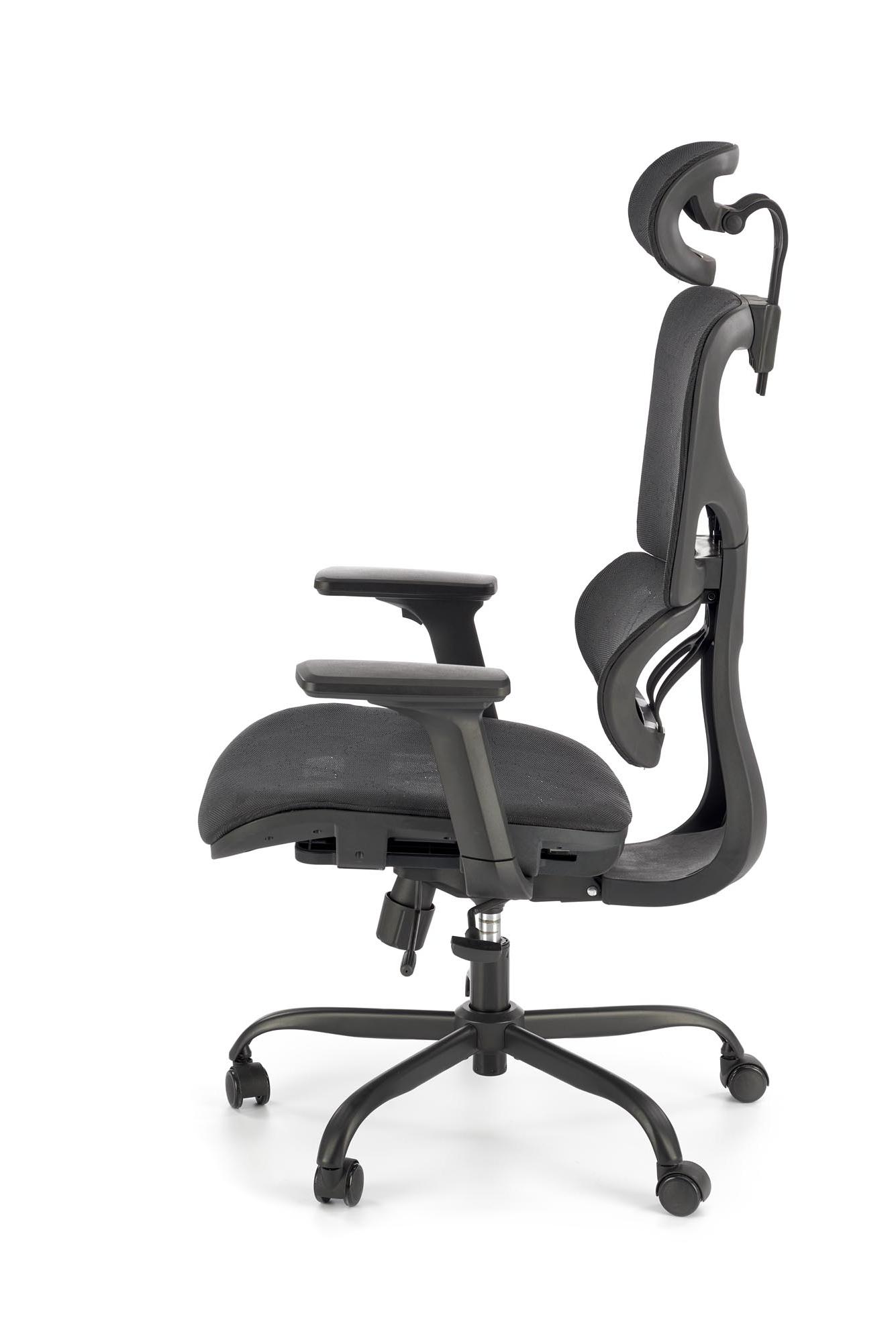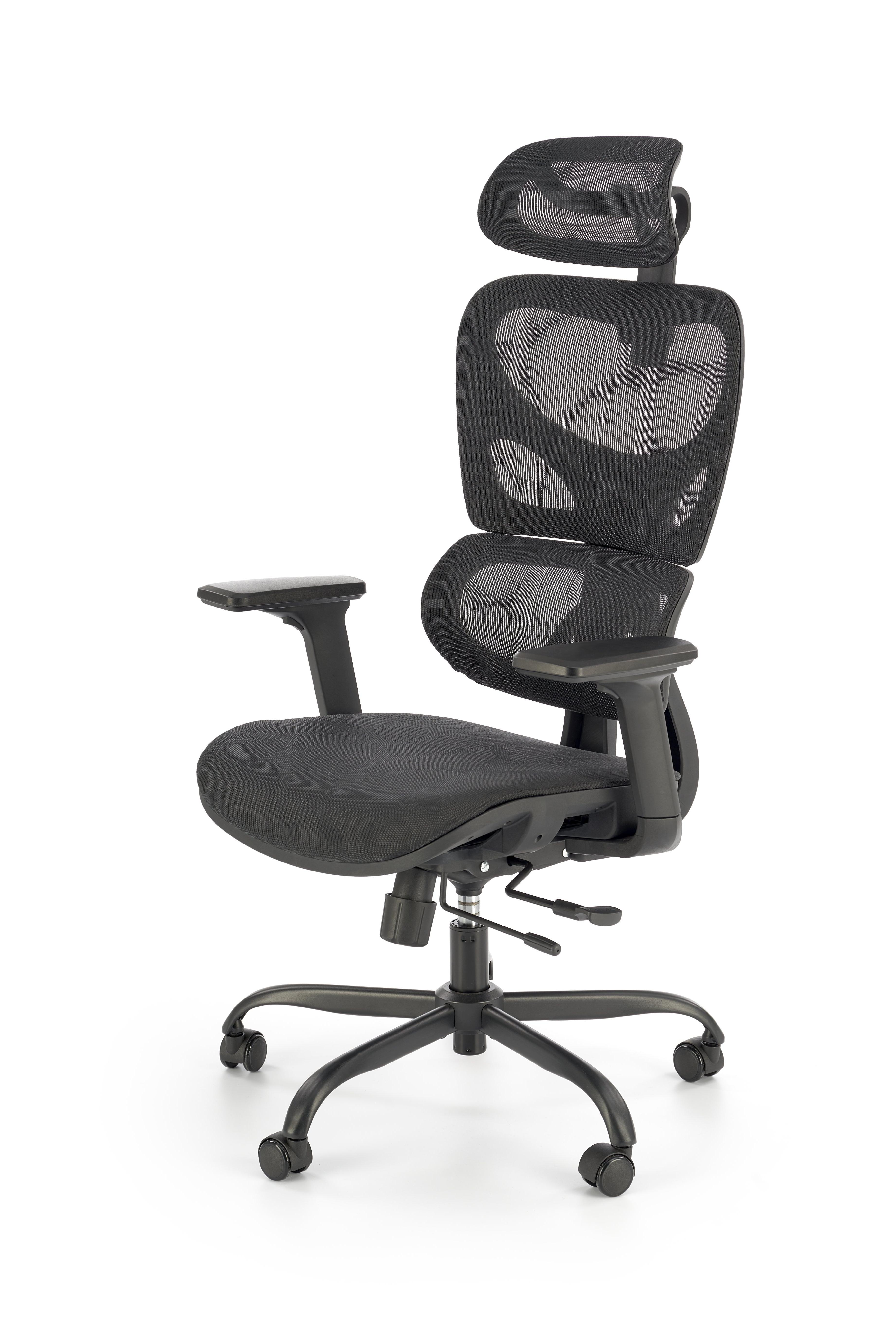 Nowoczesny Fotel do biurka z zagłówkiem i czarną obrotową podstawą, oparcie siatka
