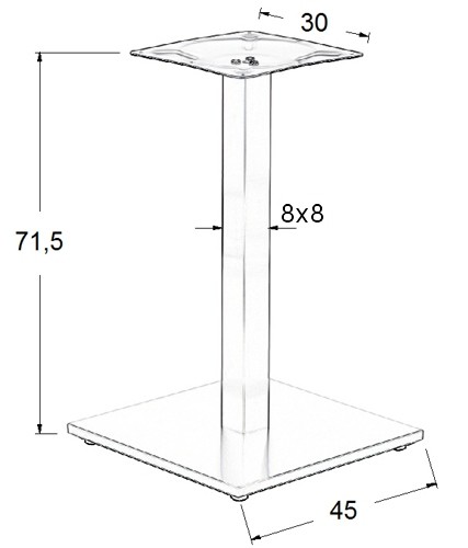 • noga o przekroju 80x80 mm wykonana ze stali nierdzewnej polerowanej, grubość ścianki 1,2 mm