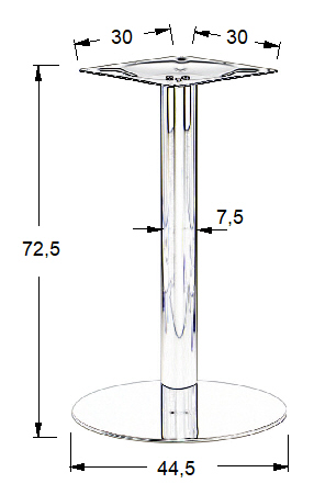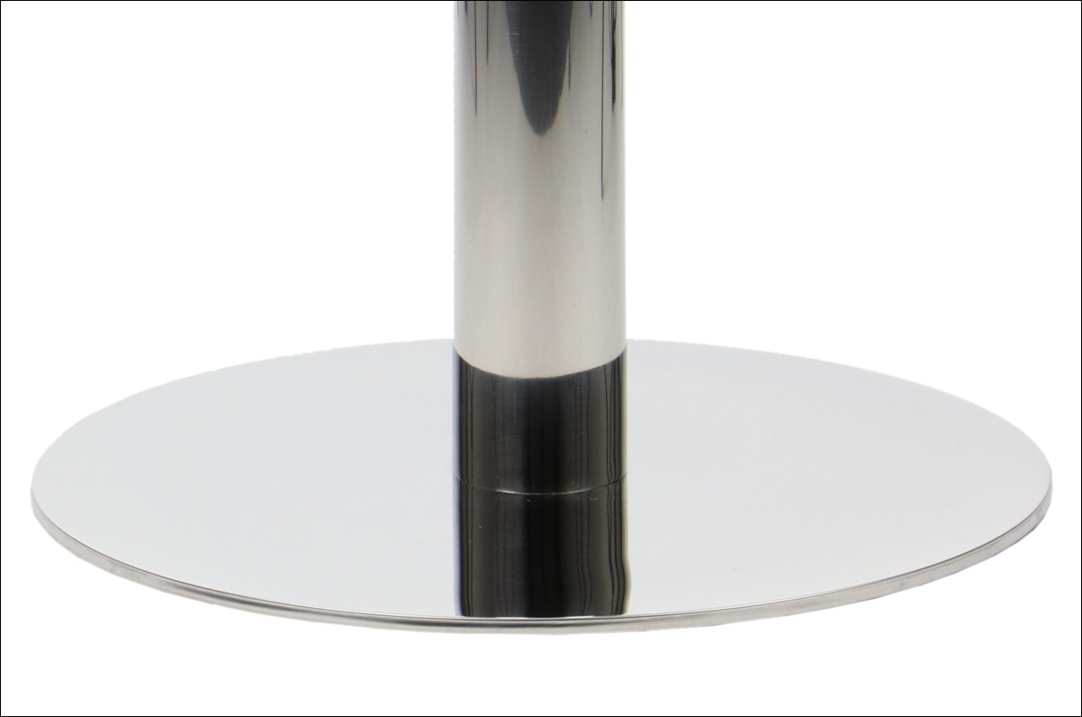Dolny element podstawy SH-3001-5/P to koło o średnicy 44,5 cm wykonane ze stali i blachy nierdzewnej polerowanej. Noga ze stali nierdzewnej połączona została z elementem przeznaczonym do montażu blatu, który wykonano z blachy tłoczonej. Dzięki regulowanym stopkom podstawę można łatwo wypoziomować. Produkt przeznaczony jest do samodzielnego montażu.