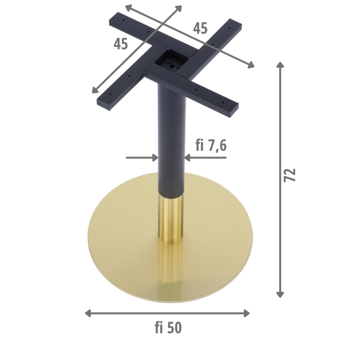 • noga o średnicy 76 mm wykonana ze stali nierdzewnej w kolorze złotym połączonej ze stalą w kolorze czarnym, grubość ścianki 1,2 mm