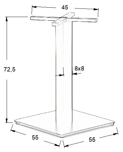 • noga o przekroju 80x80 mm wykonana ze stali nierdzewnej polerowanej, grubość ścianki 1,2 mm