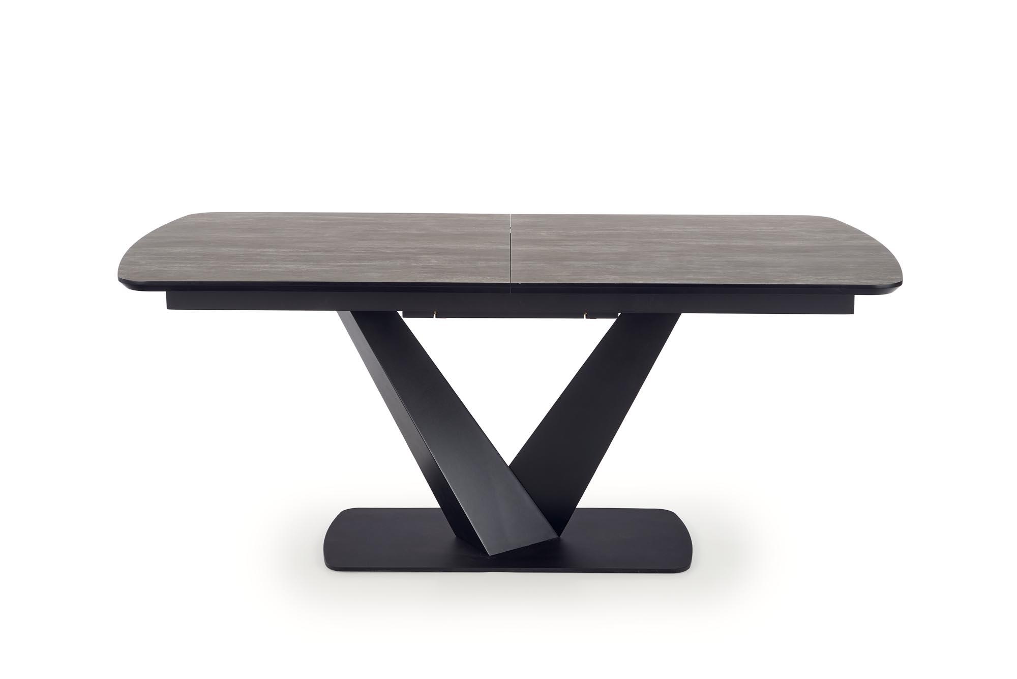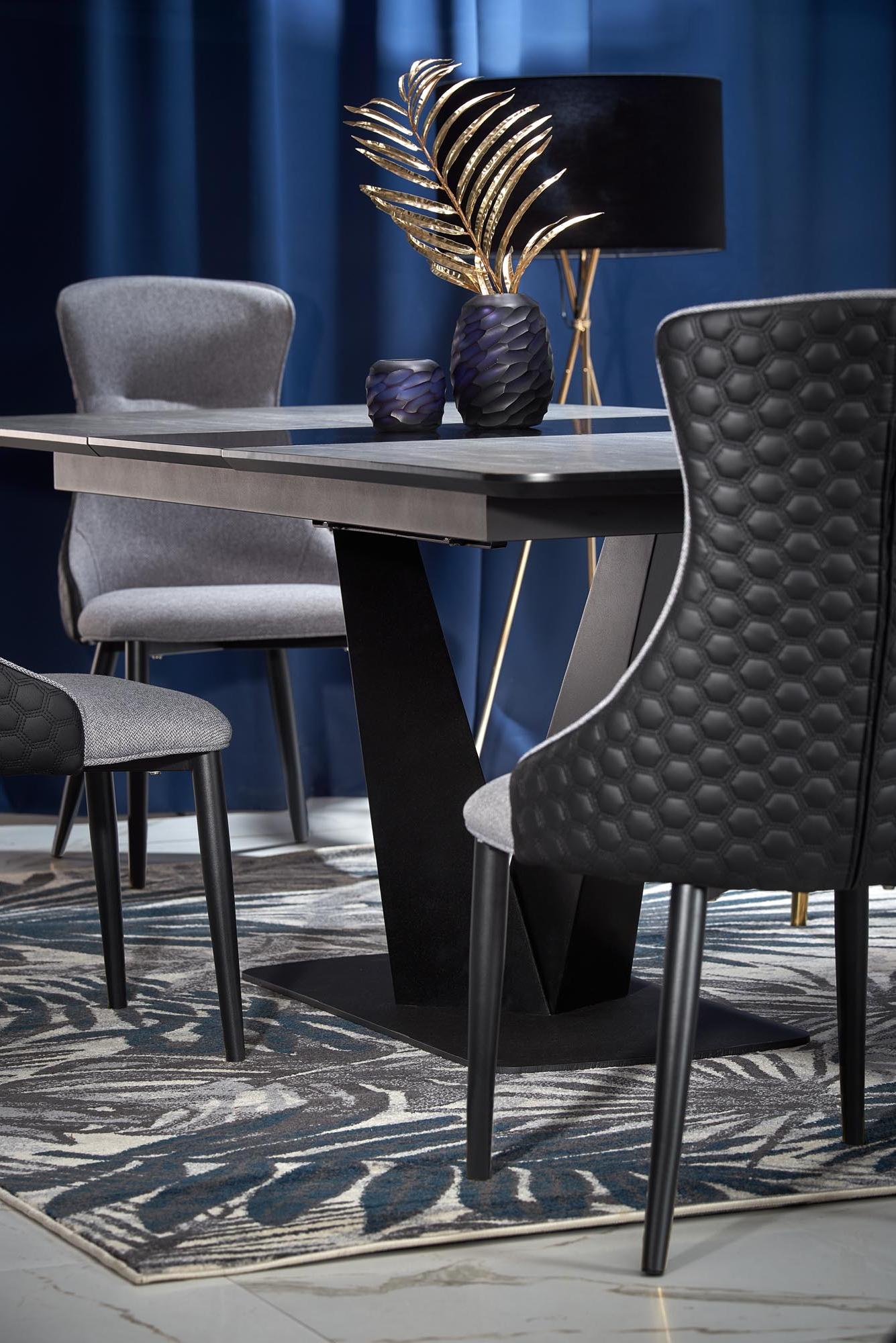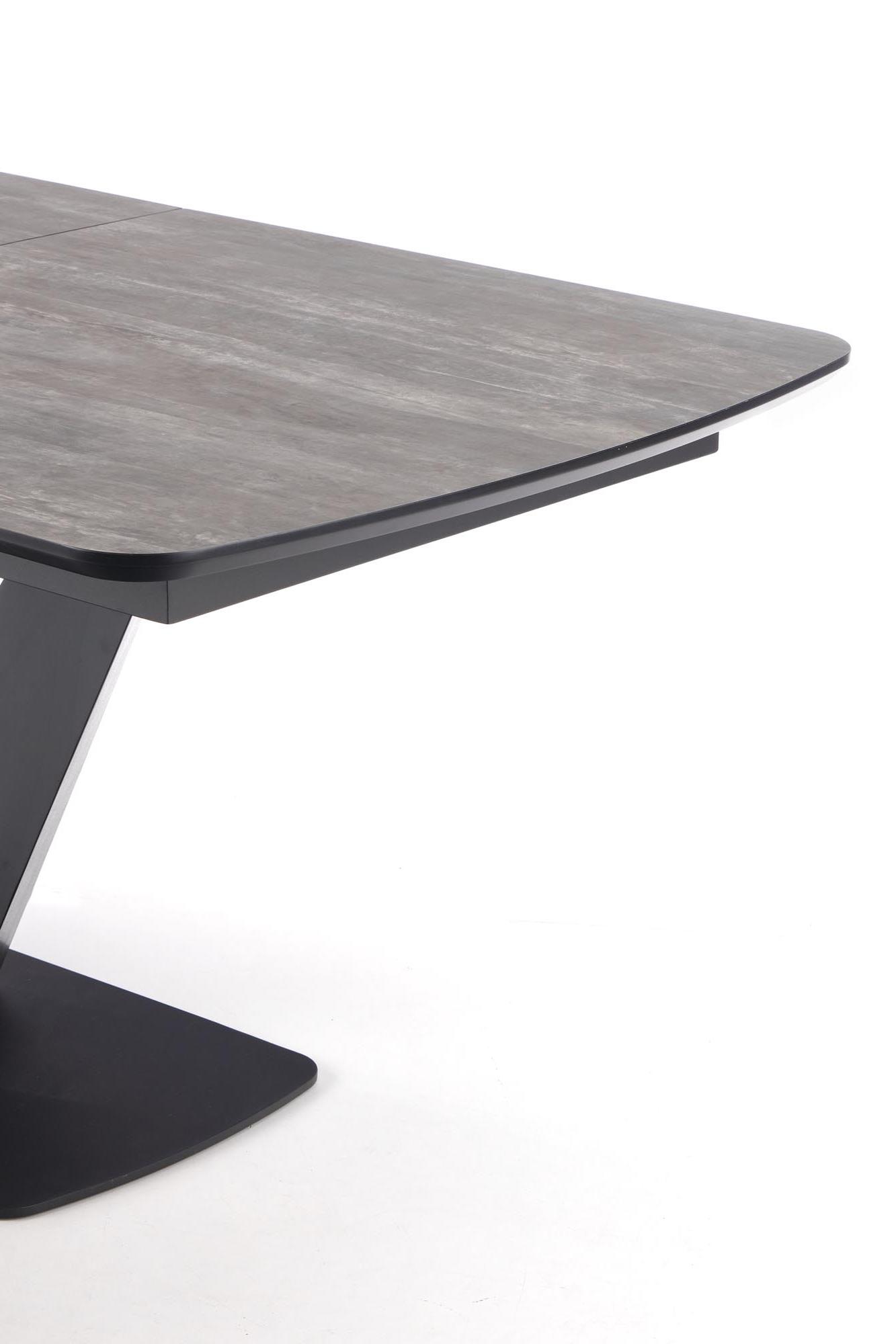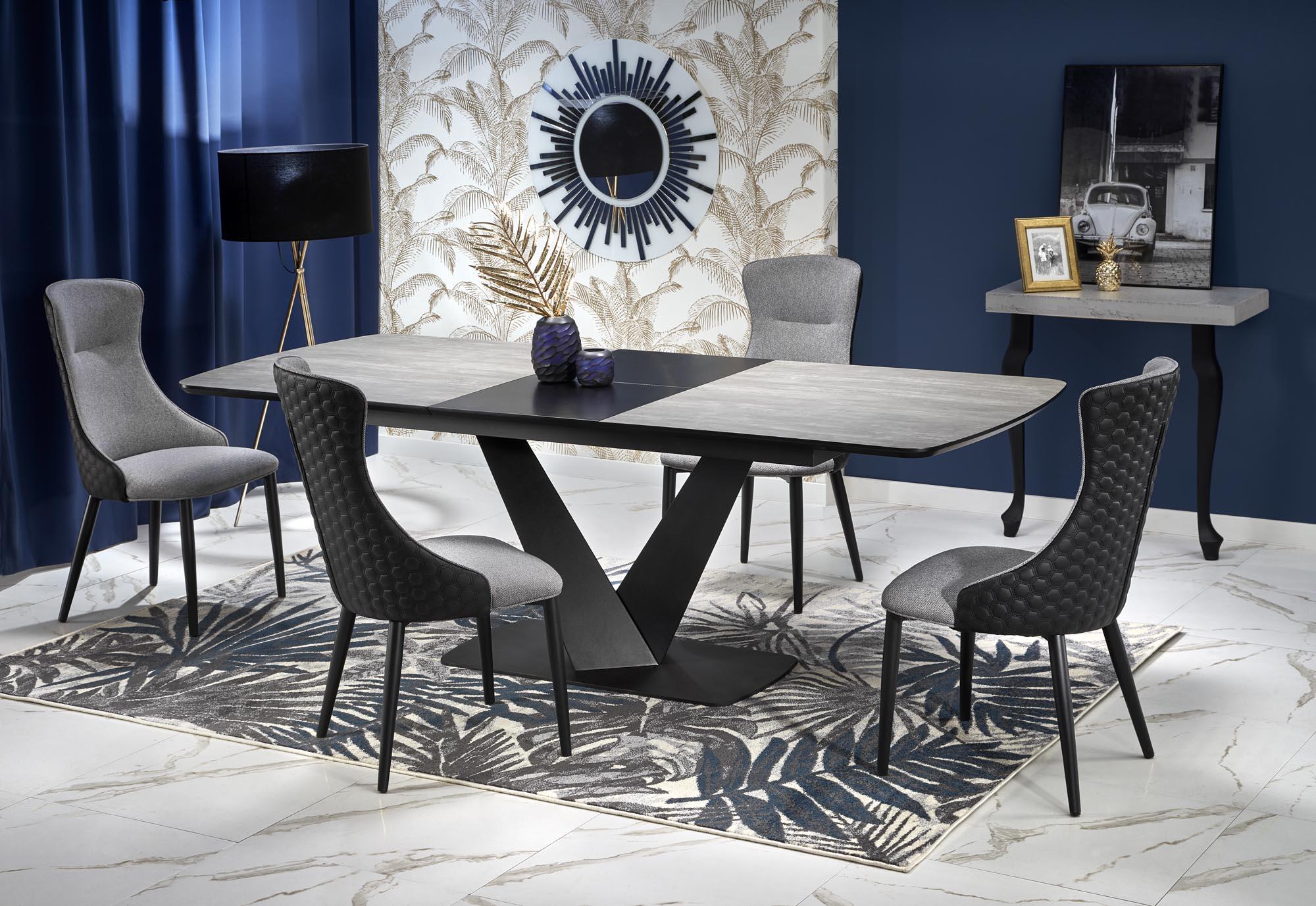 Stół wykonano z materiału: MDF lakierowany + płyta HPL / stal malowana proszkowo, kolor blat - ciemny popiel / czarny, nogi - czarny