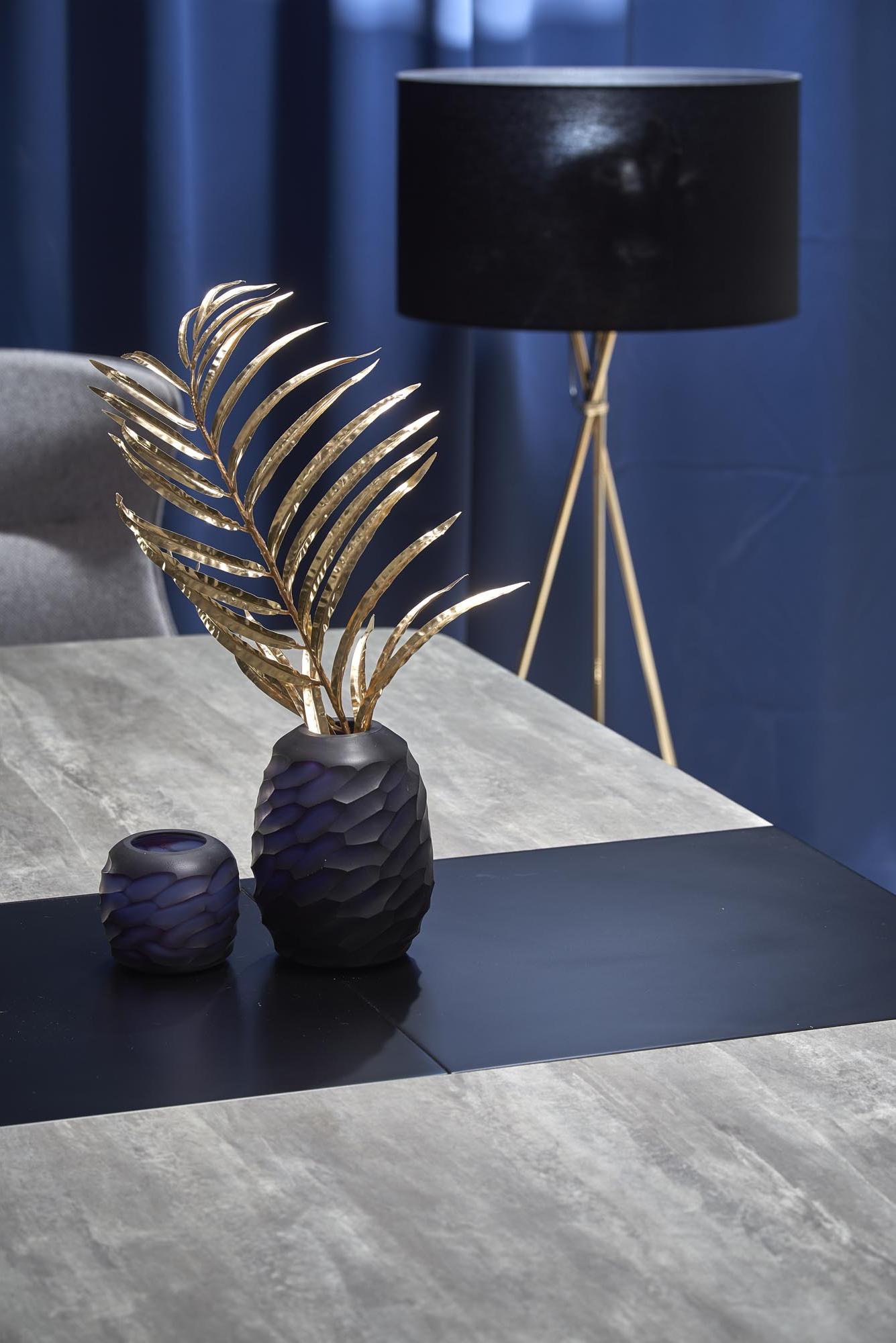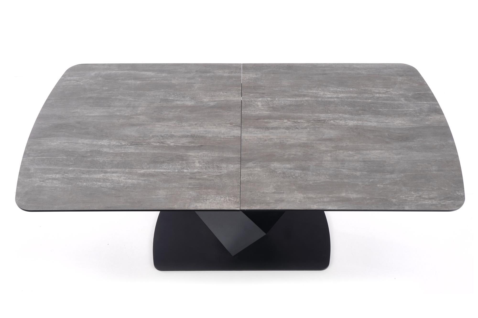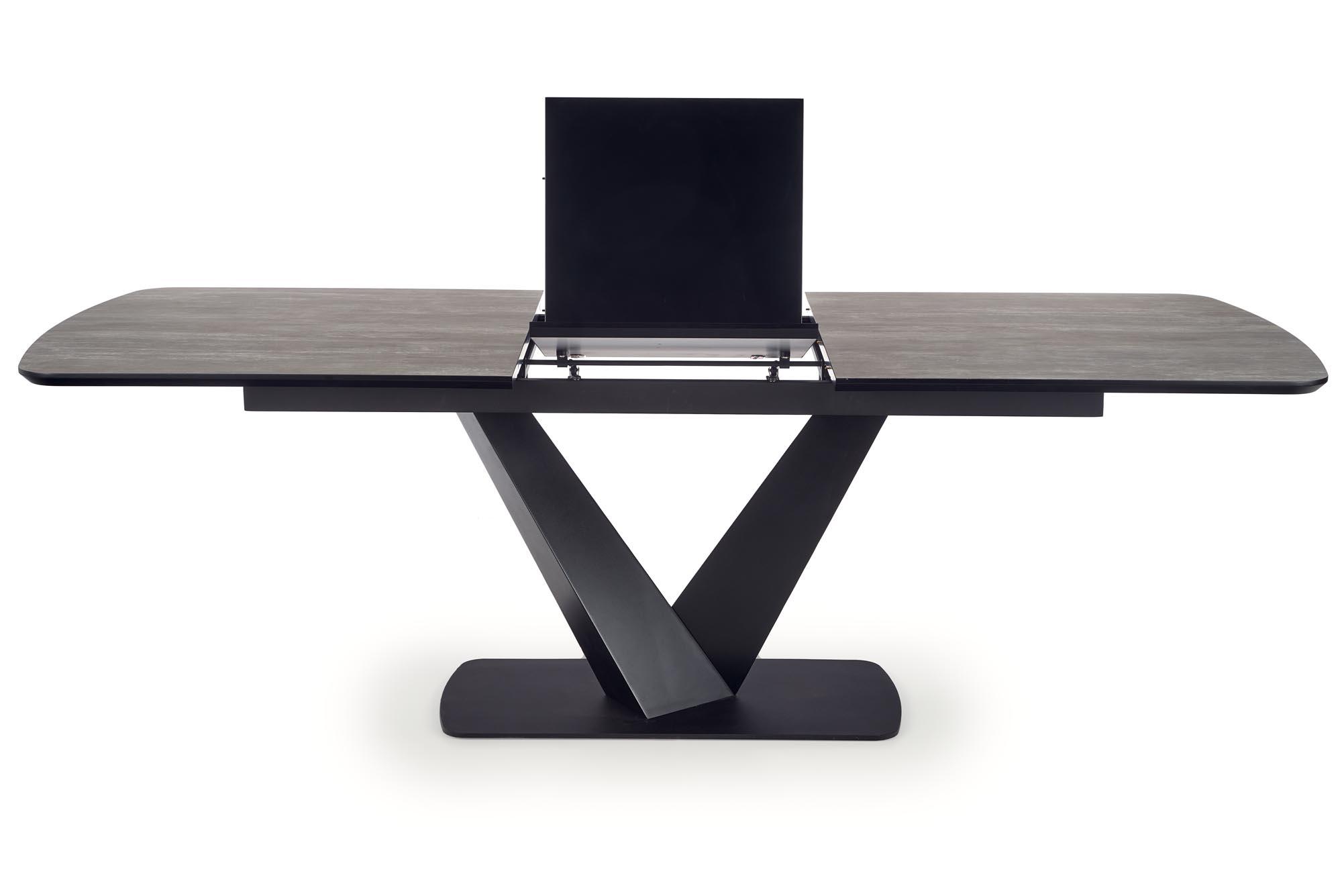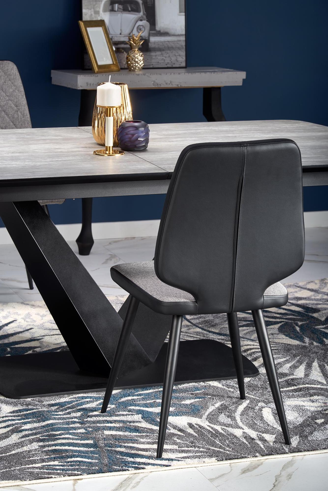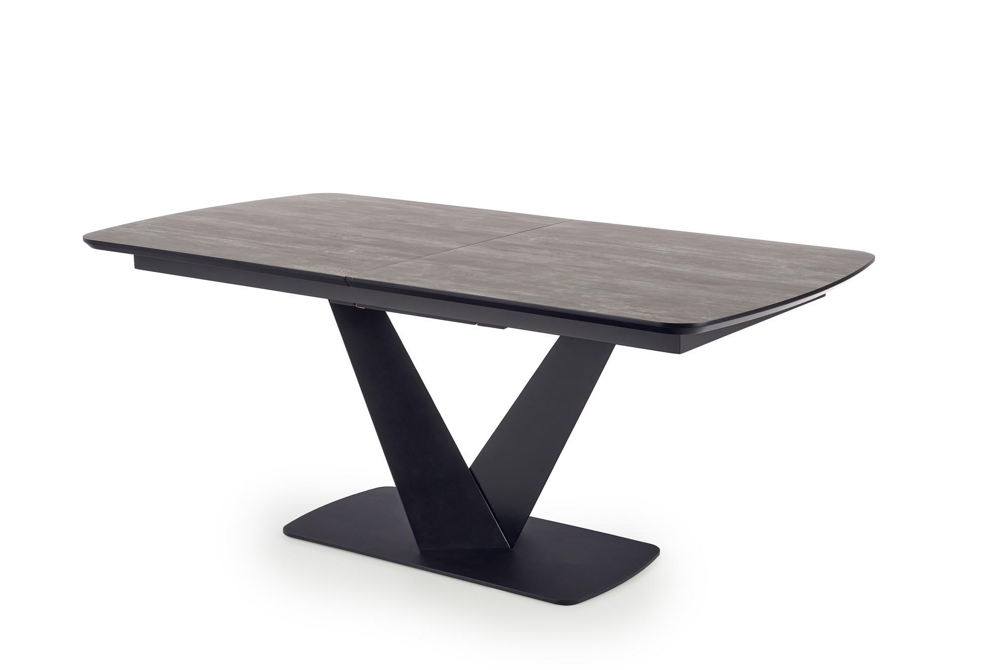 Stół wykonano z materiału: MDF lakierowany + płyta HPL / stal malowana proszkowo, kolor blat - ciemny popiel / czarny, nogi - czarny