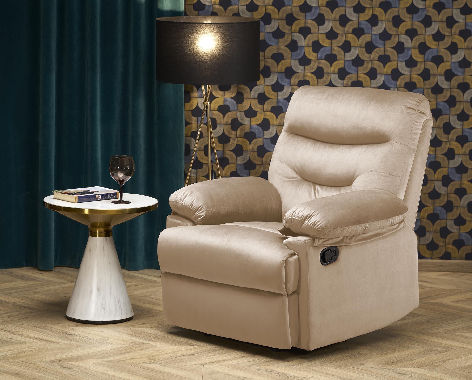 Wykonano z materiału: tkanina - velvet, kolor beżowy