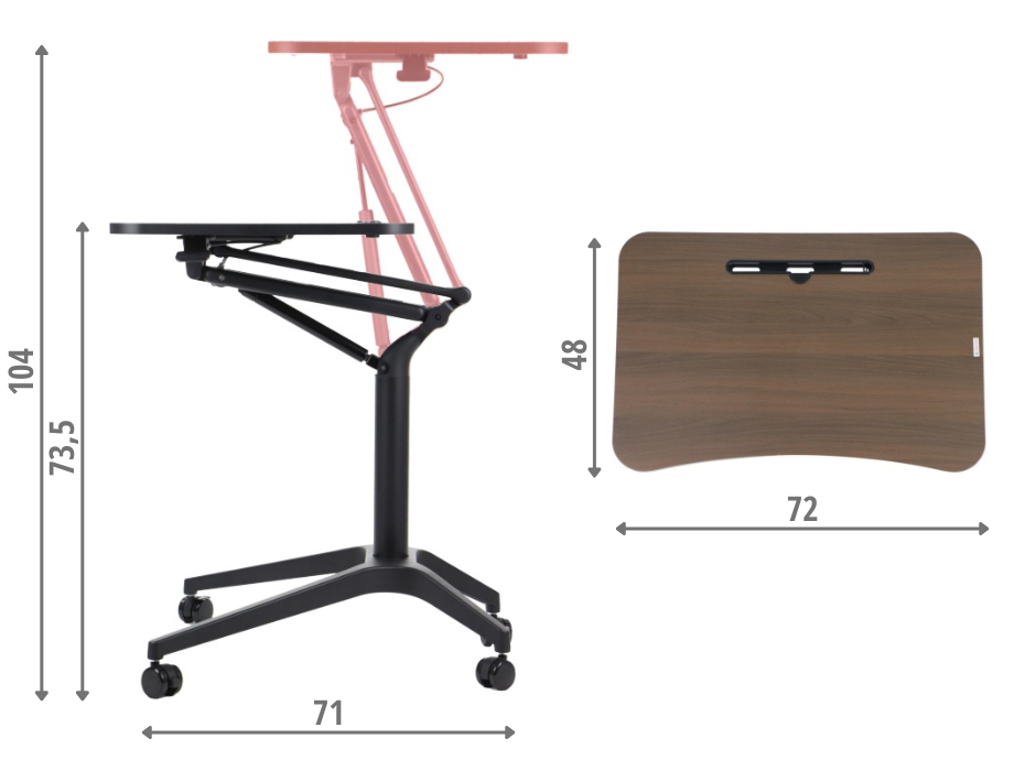 • blat z płyty laminowanej o wymiarach 72x48 cm z miejscem na przybory do pisania