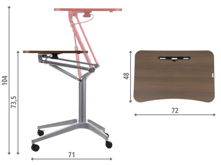 • blat z płyty laminowanej o wymiarach 72x48 cm z miejscem na przybory do pisania