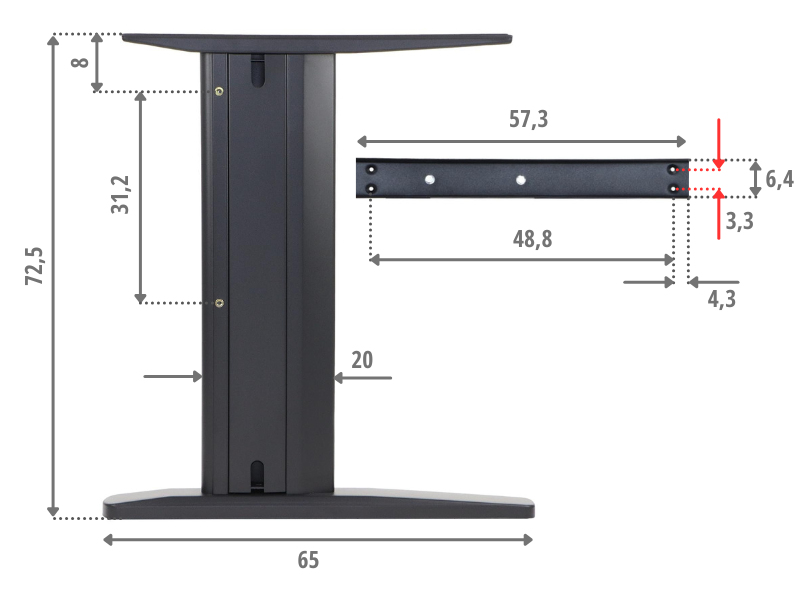 • możliwość prowadzenia kabli (zdejmowany element pionowy)