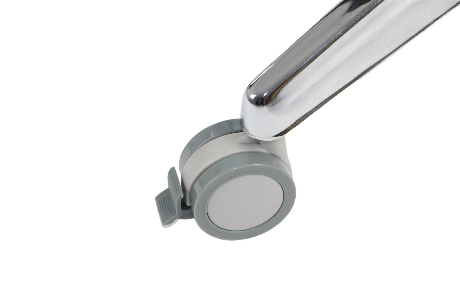 Stelaż uchylny NY-A383 wykonany jest ze stali i wyposażony w chromowane stopy. Zawiera 4 kółka zapewniające pełną mobilność, zaś 2 z nich zawierają hamulce. Stelaż pozwala zmienić ułożenie blatu o 90 stopni.