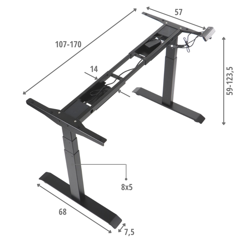 • elektryczna regulacja wysokości w zakresie 59-123,5 cm