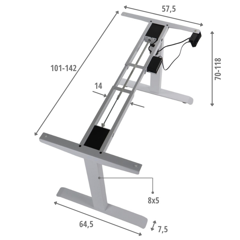 • elektryczna regulacja wysokości w zakresie 70-118 cm realizowana za pomocą jednego silnika