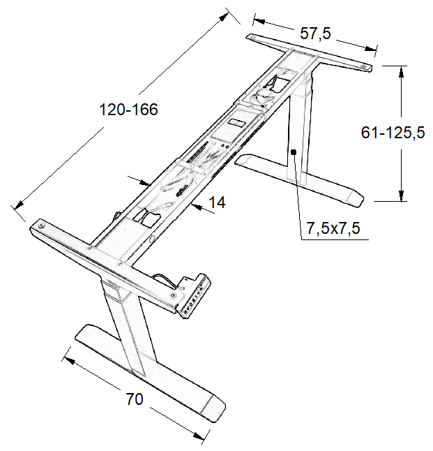 • elektryczna regulacja wysokości w zakresie 61-125,5 cm realizowana za pomocą dwóch silników