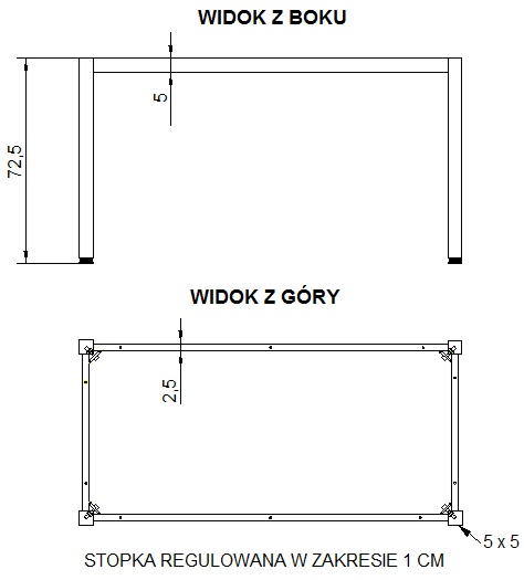 • grubości ścianek: nogi - 1,8 mm, belki - 1,3 mm