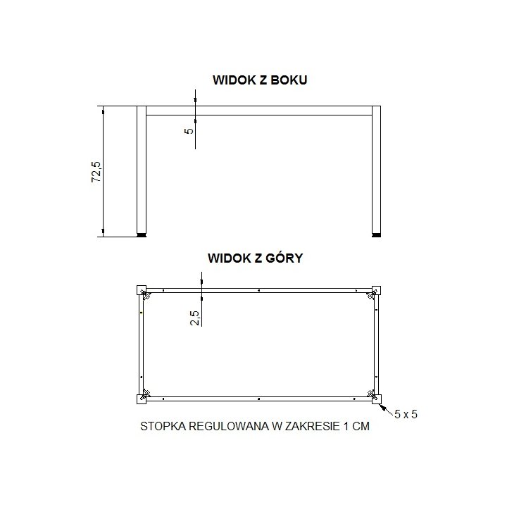 • grubości ścianek: nogi - 1,8 mm, belki - 1,3 mm