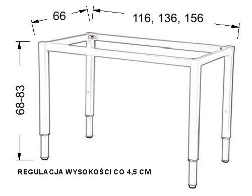 • regulacja skokowa (co 4,5 cm) wysokości w zakresie 68-83 cm