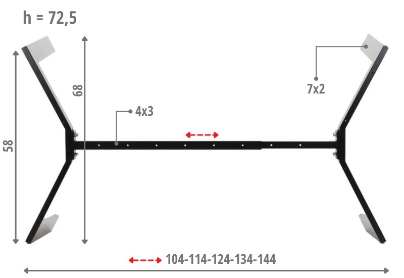 • grubości ścianek: nogi - 1,2 mm, belki - 1,2 mm