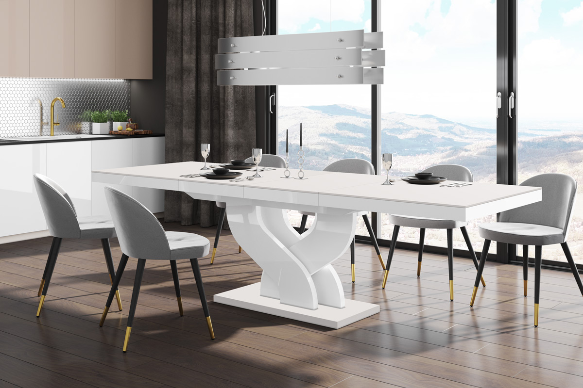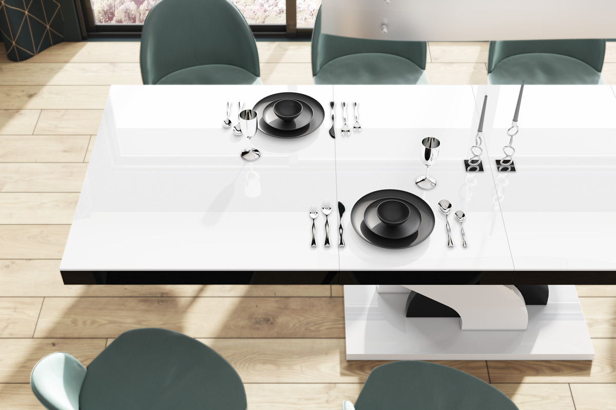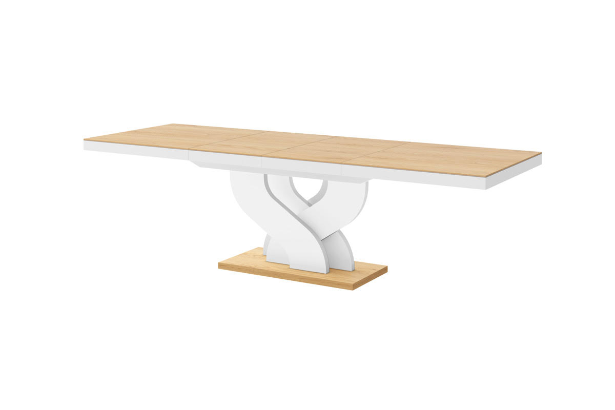 Stół BELLA to oryginalny i niezwykle elegancki projekt firmy Hubertus. Wyróżnia go niespotykany design (podstawa stołu w kształcie finezyjnie przeplatających się fal) oraz funkcjonalność (rozkładany blat z miejscem do przechowywania dodatkowych wkładek pod blatem). Konstrukcja stołu, w przeciwieństwie do klasycznego modelu z czterema nogami, jest niezwykle stabilna i pozwala na swobodne usytuowanie większej liczby użytkowników. Wpasowując się w nowoczesne trendy blat stołu został pogrubiony.