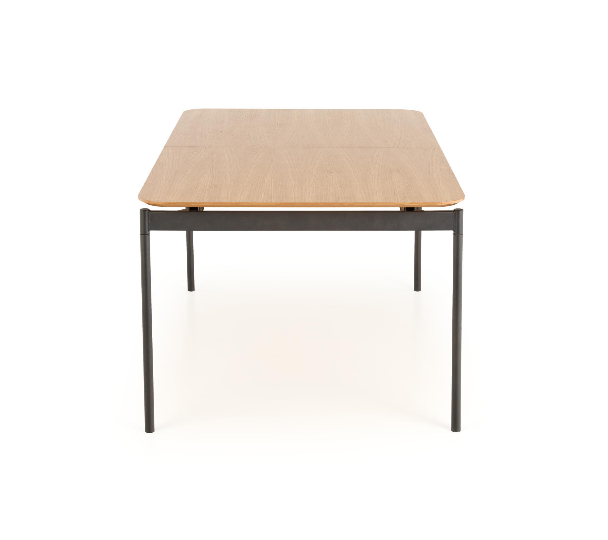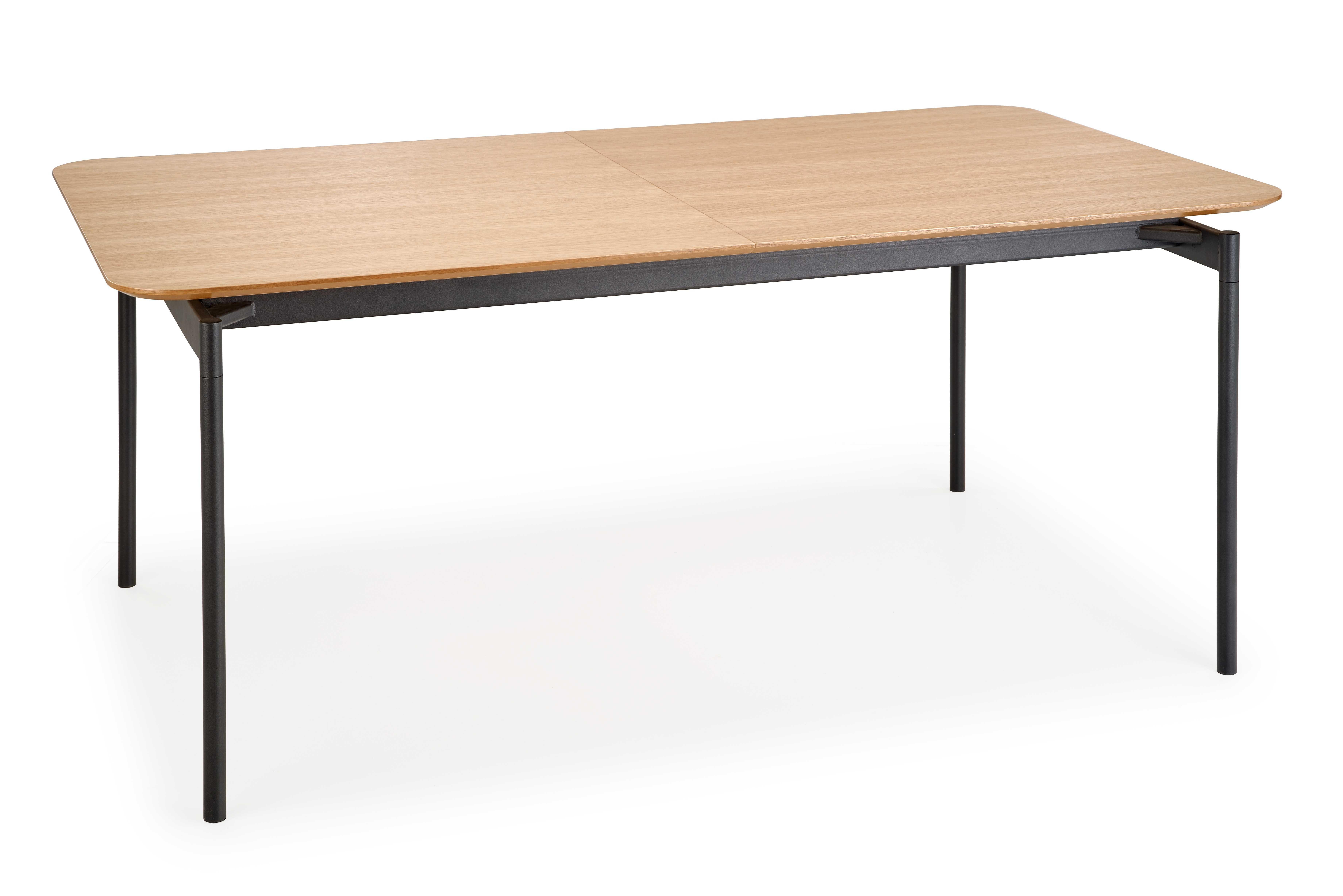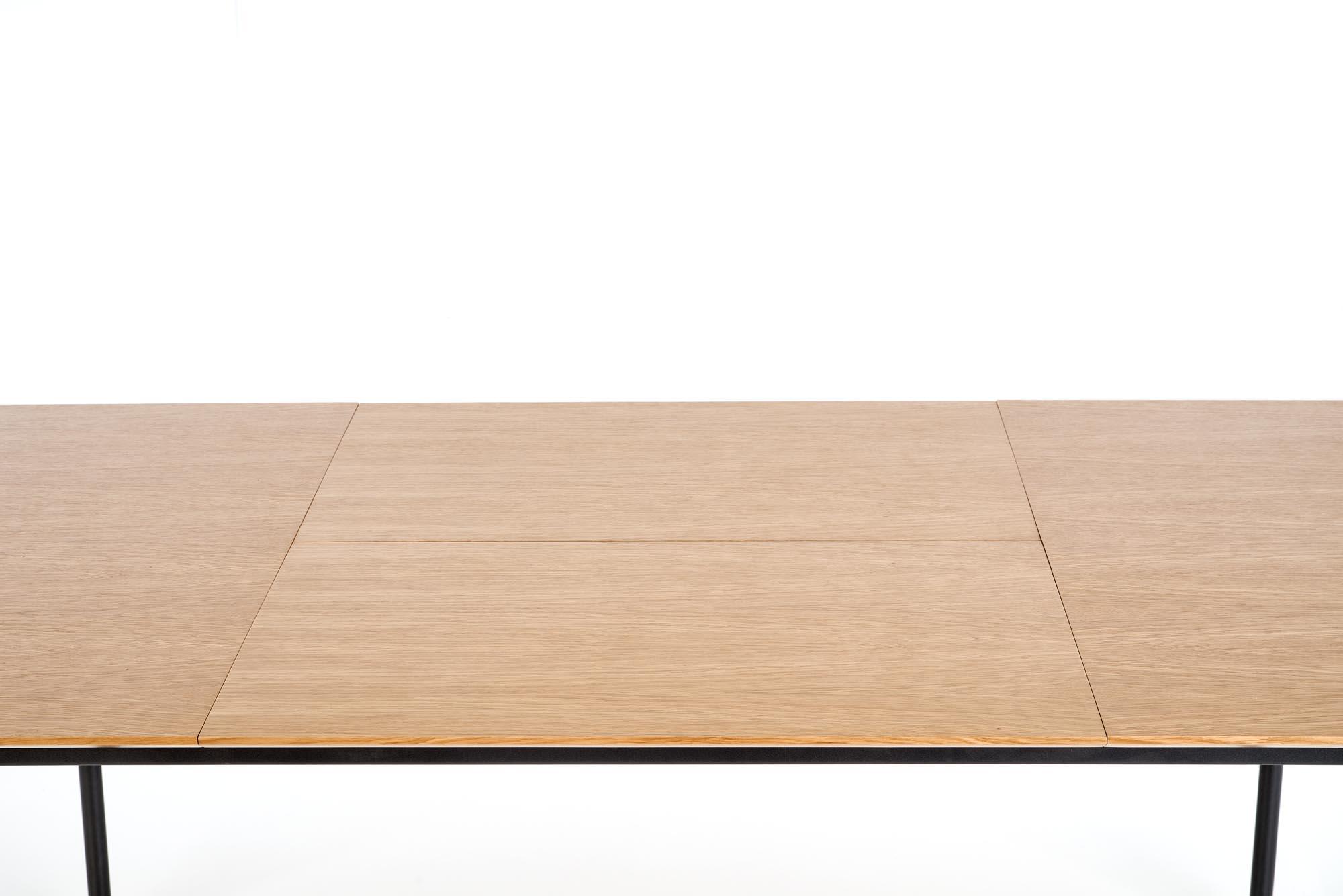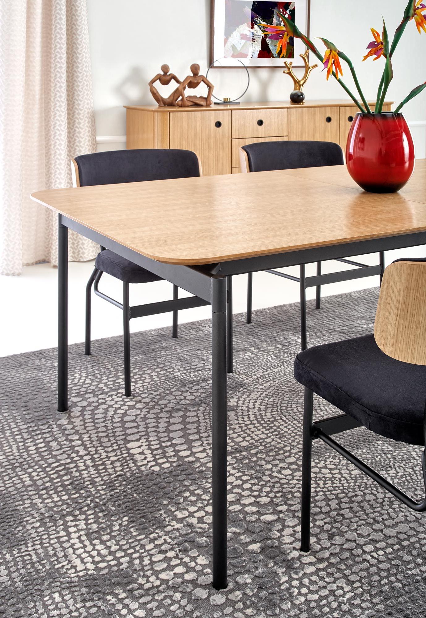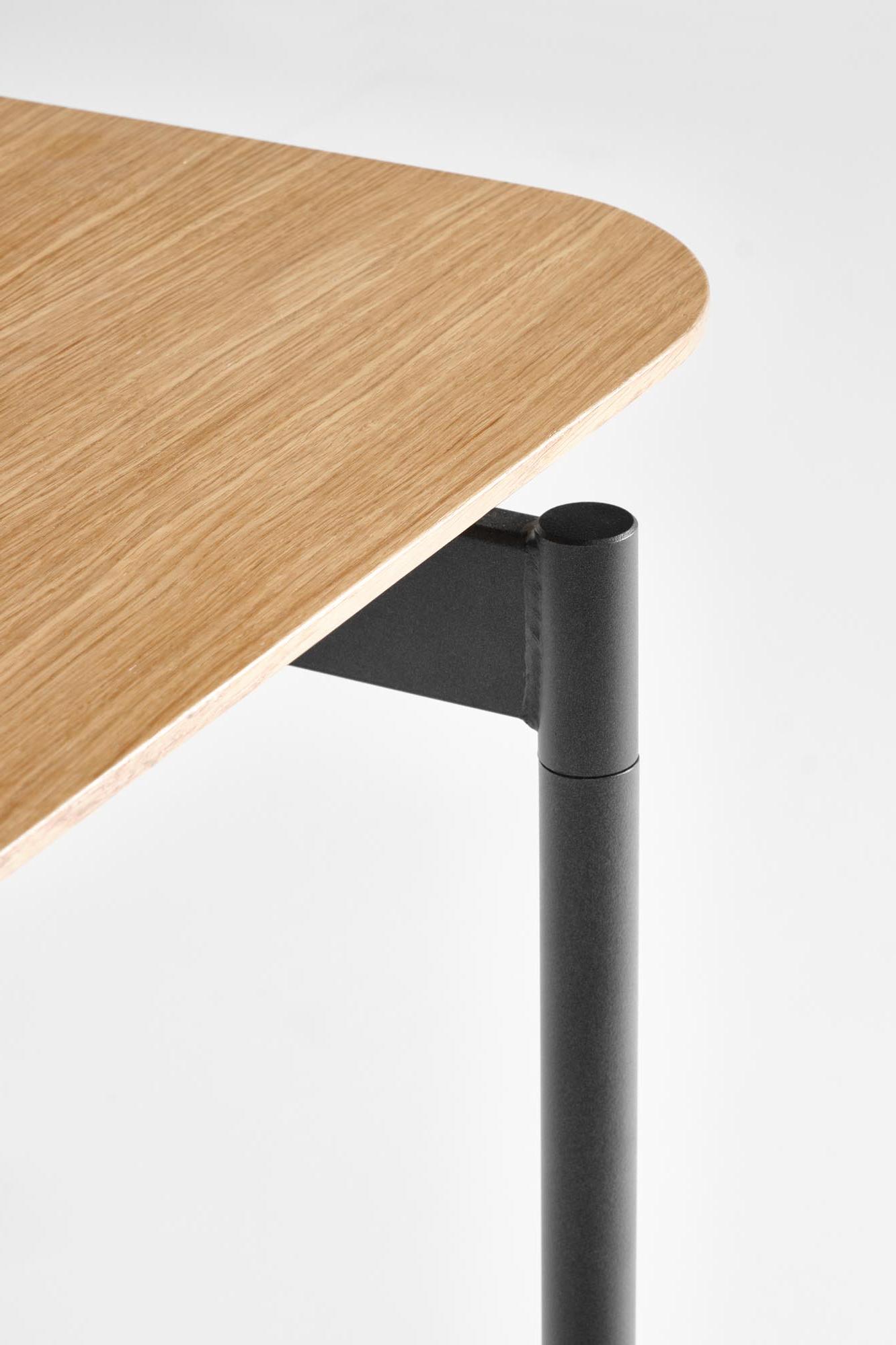 Stół wykonano z materiału: MDF + okleina naturalna - dębowa / płyta meblowa + okleina naturalna - dębowa / stal malowana proszkowo, kolor dąb naturalny - czarny