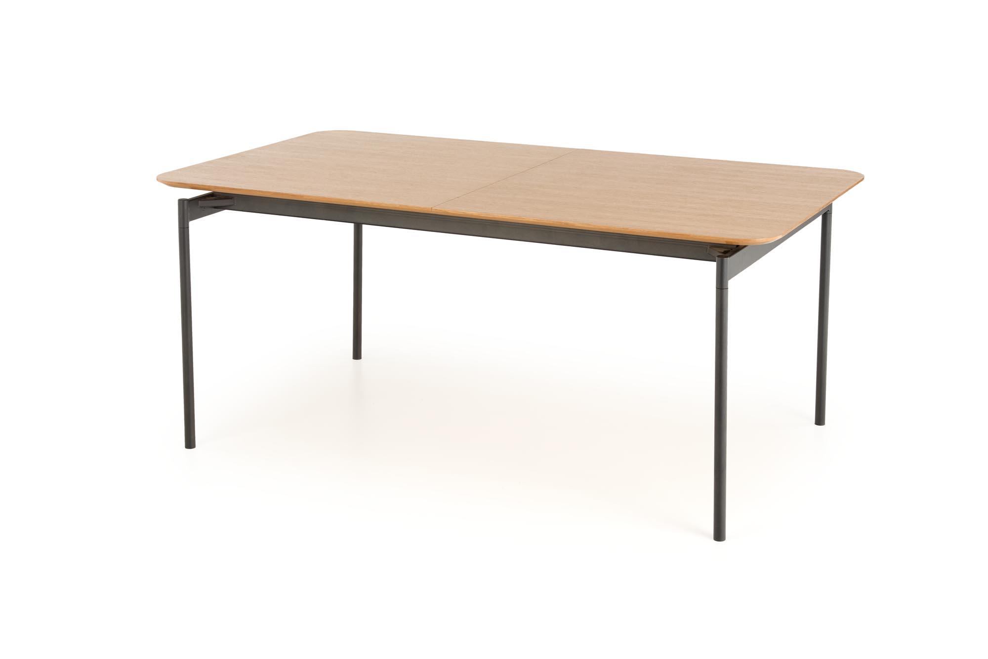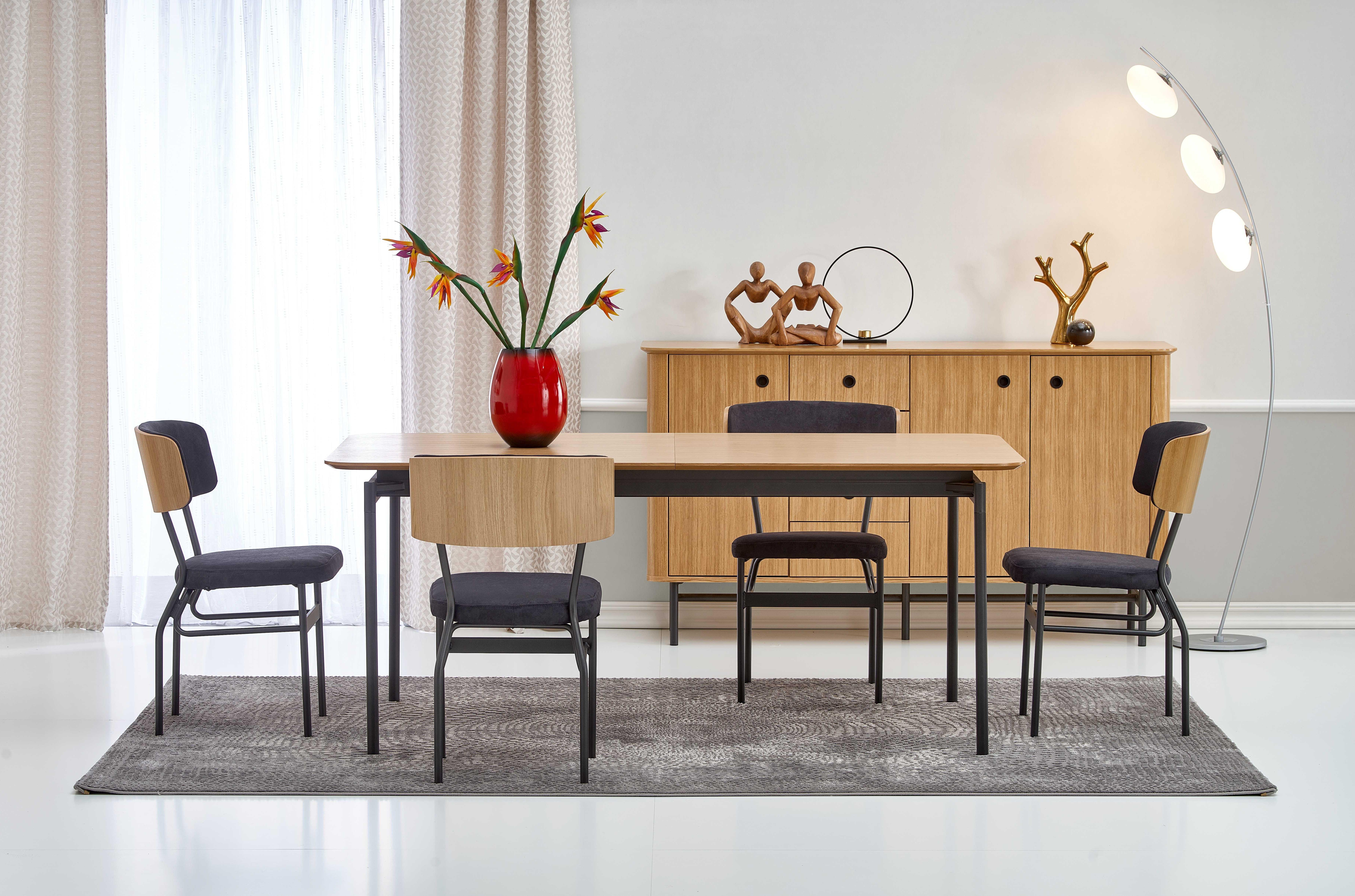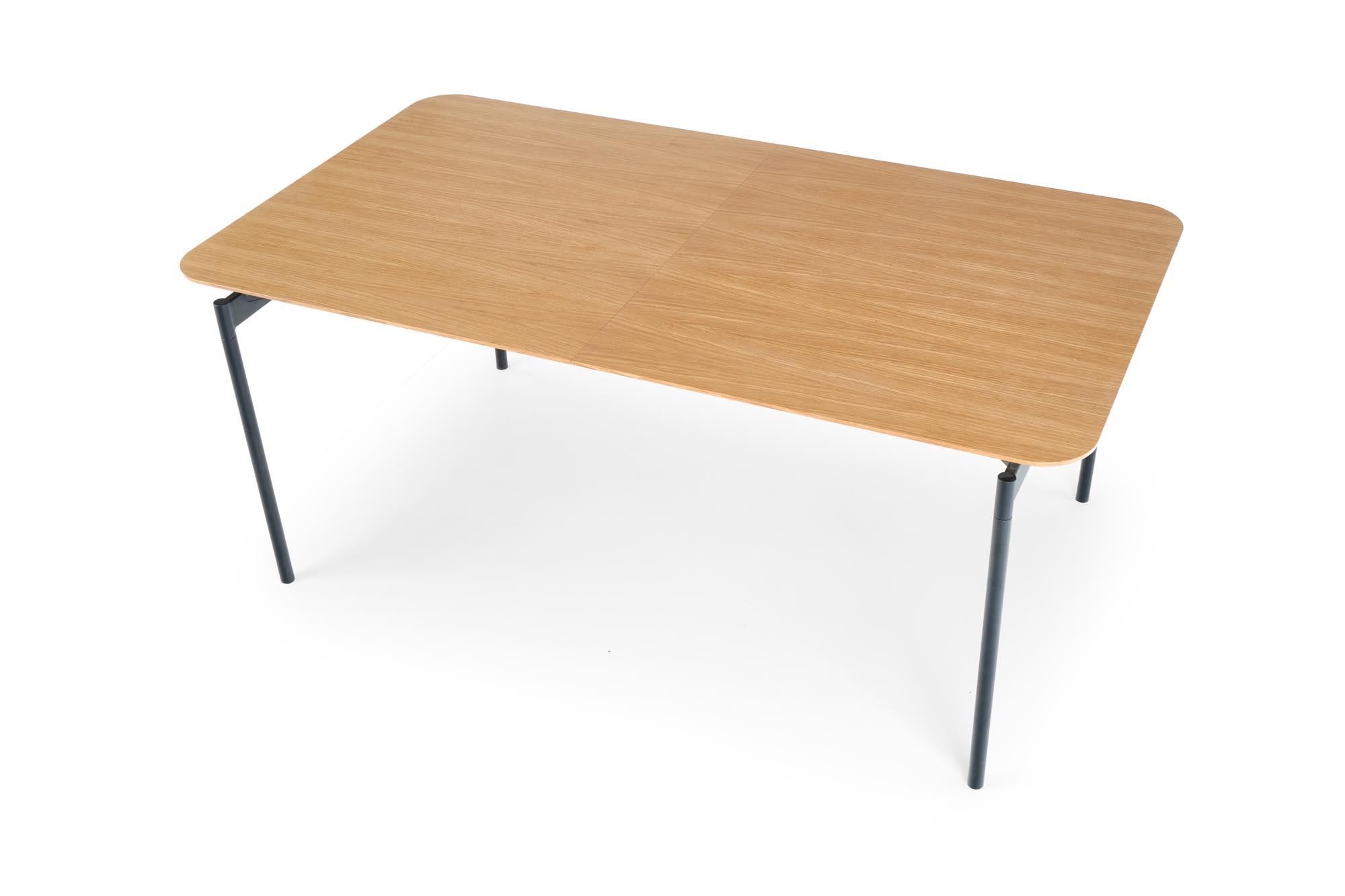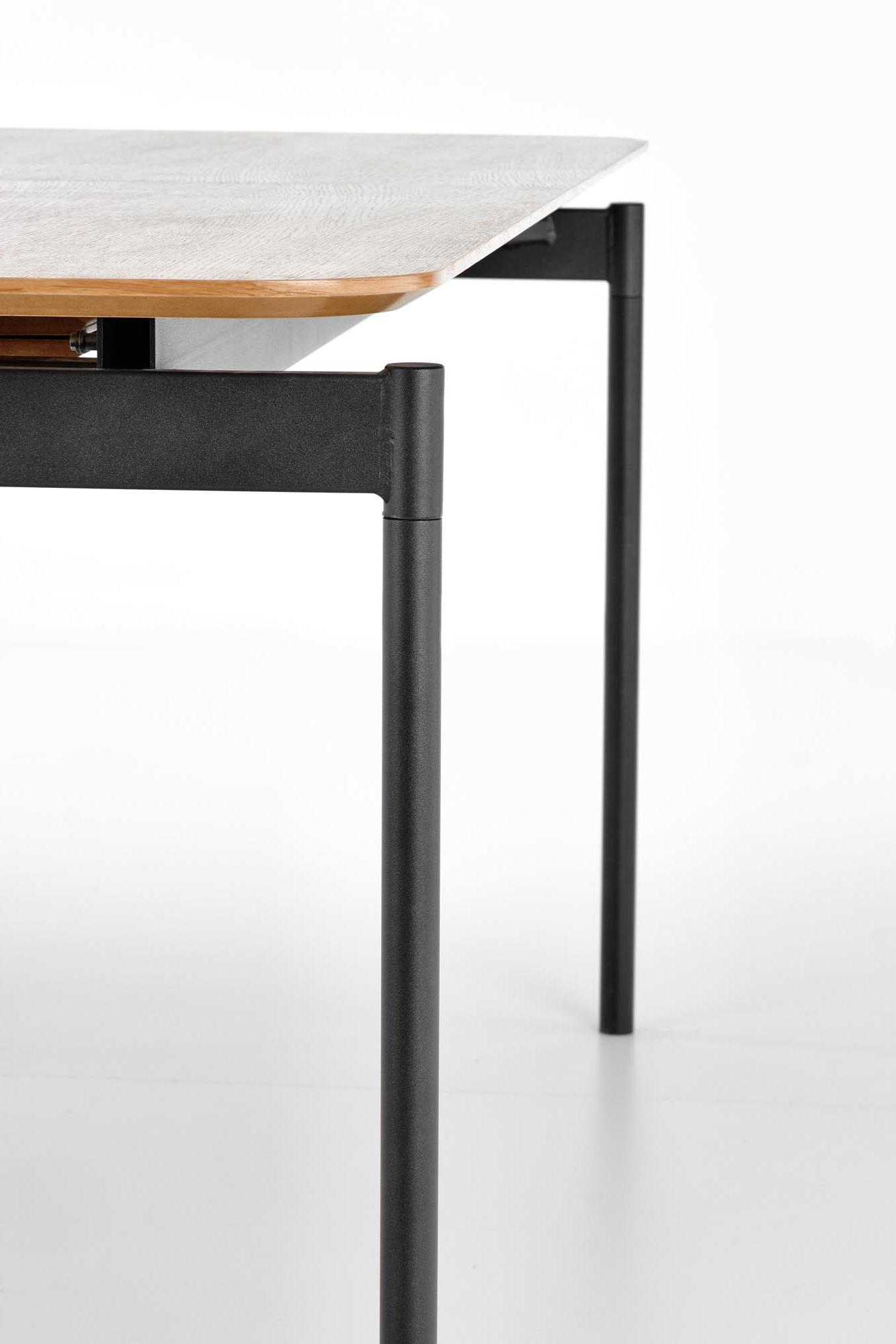 Stół wykonano z materiału: MDF + okleina naturalna - dębowa / płyta meblowa + okleina naturalna - dębowa / stal malowana proszkowo, kolor dąb naturalny - czarny
