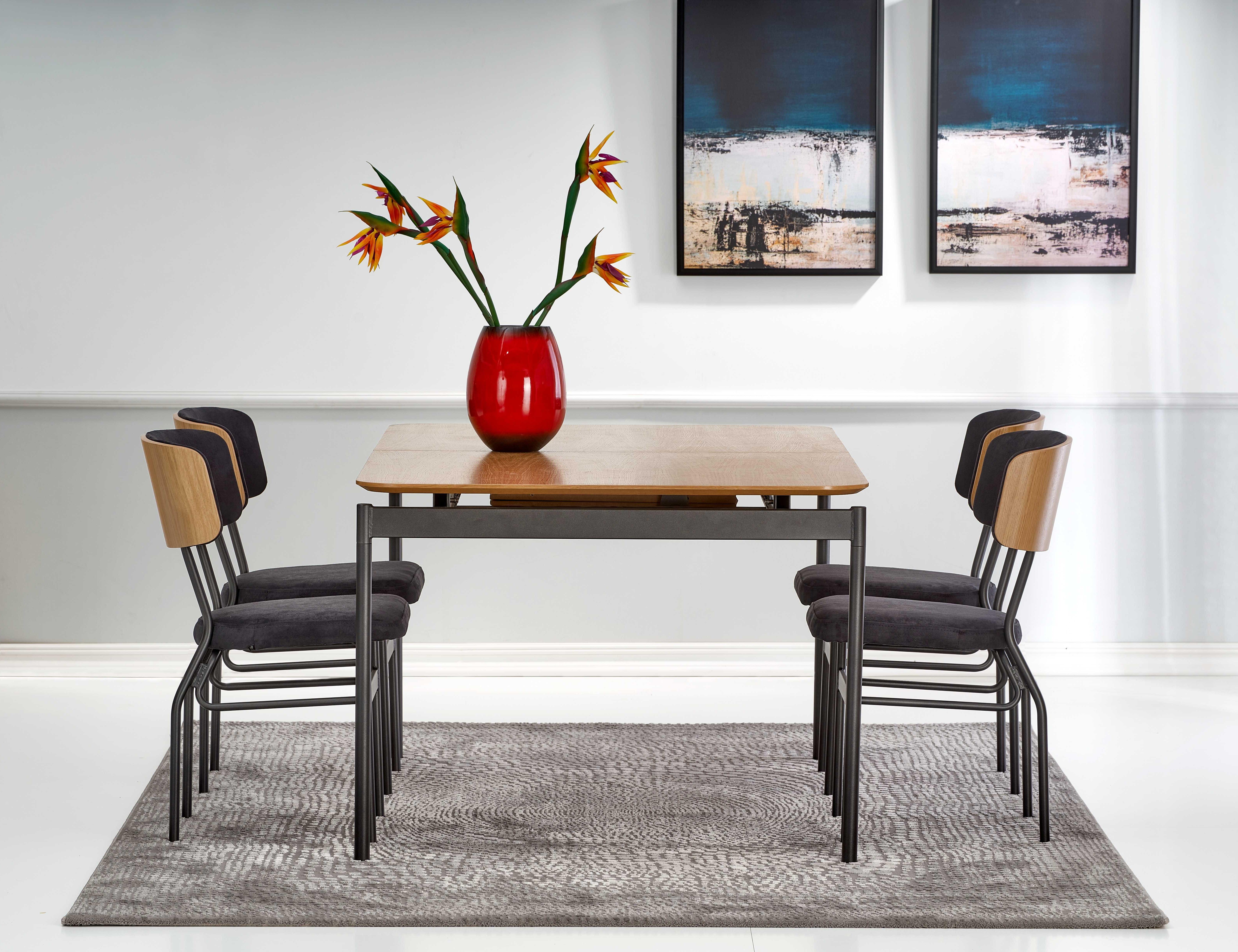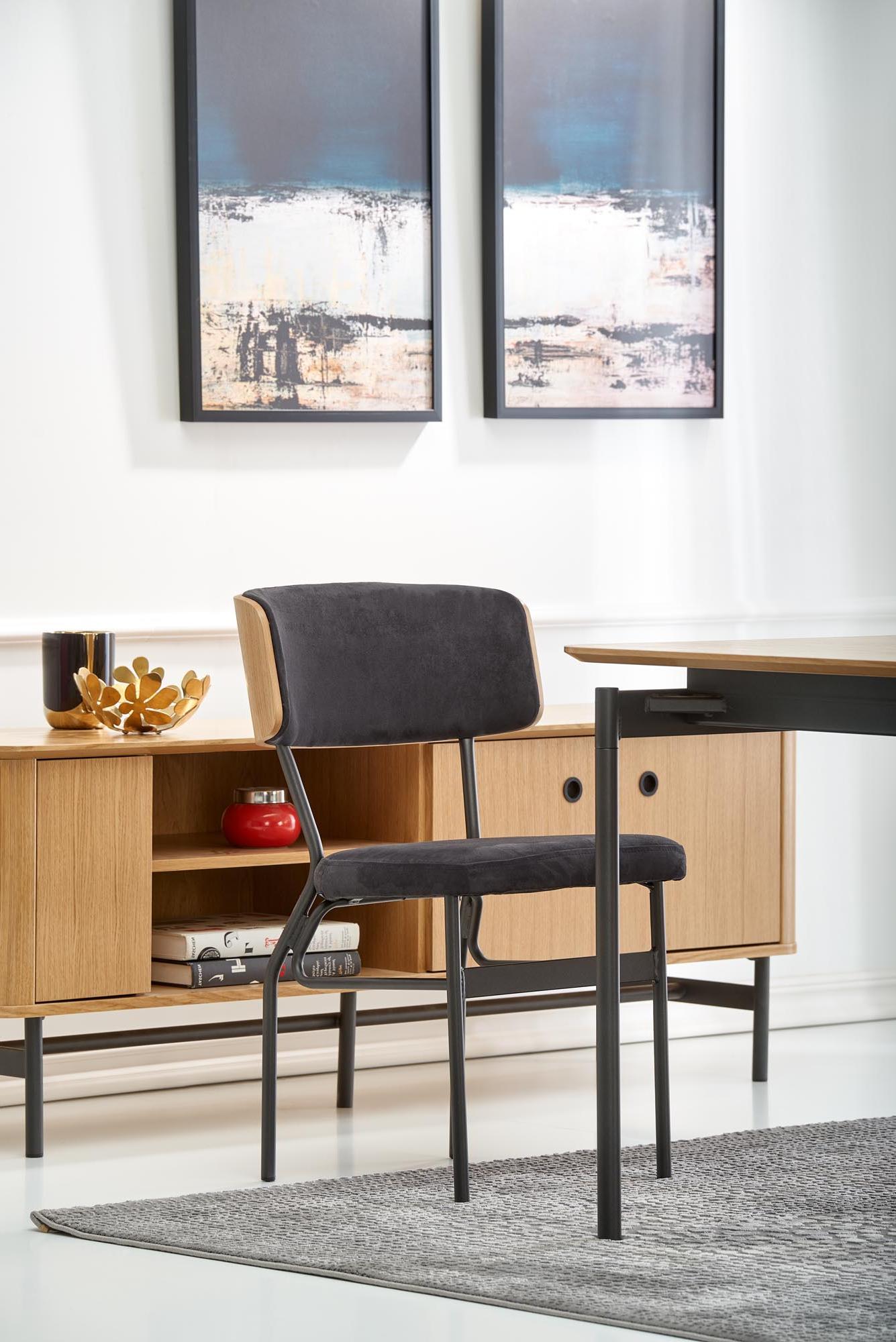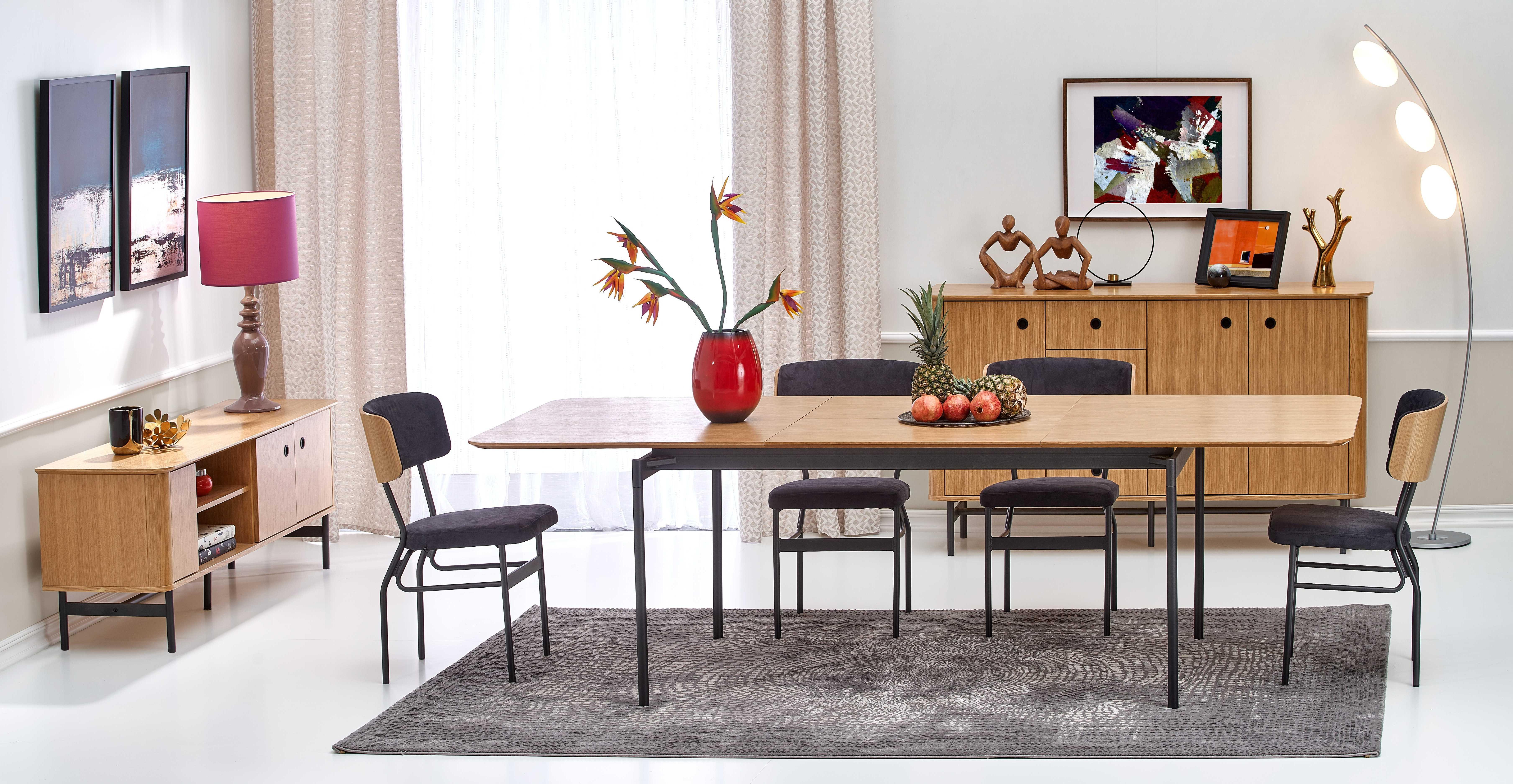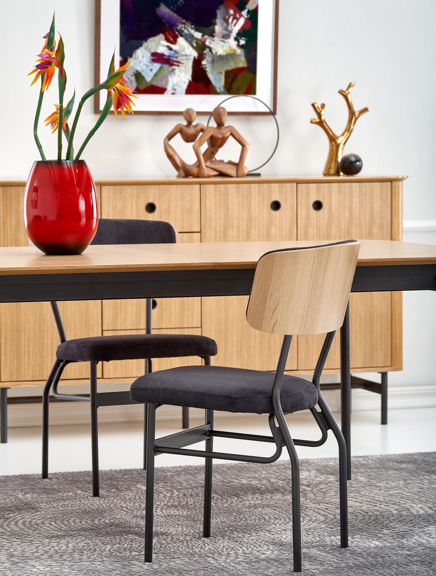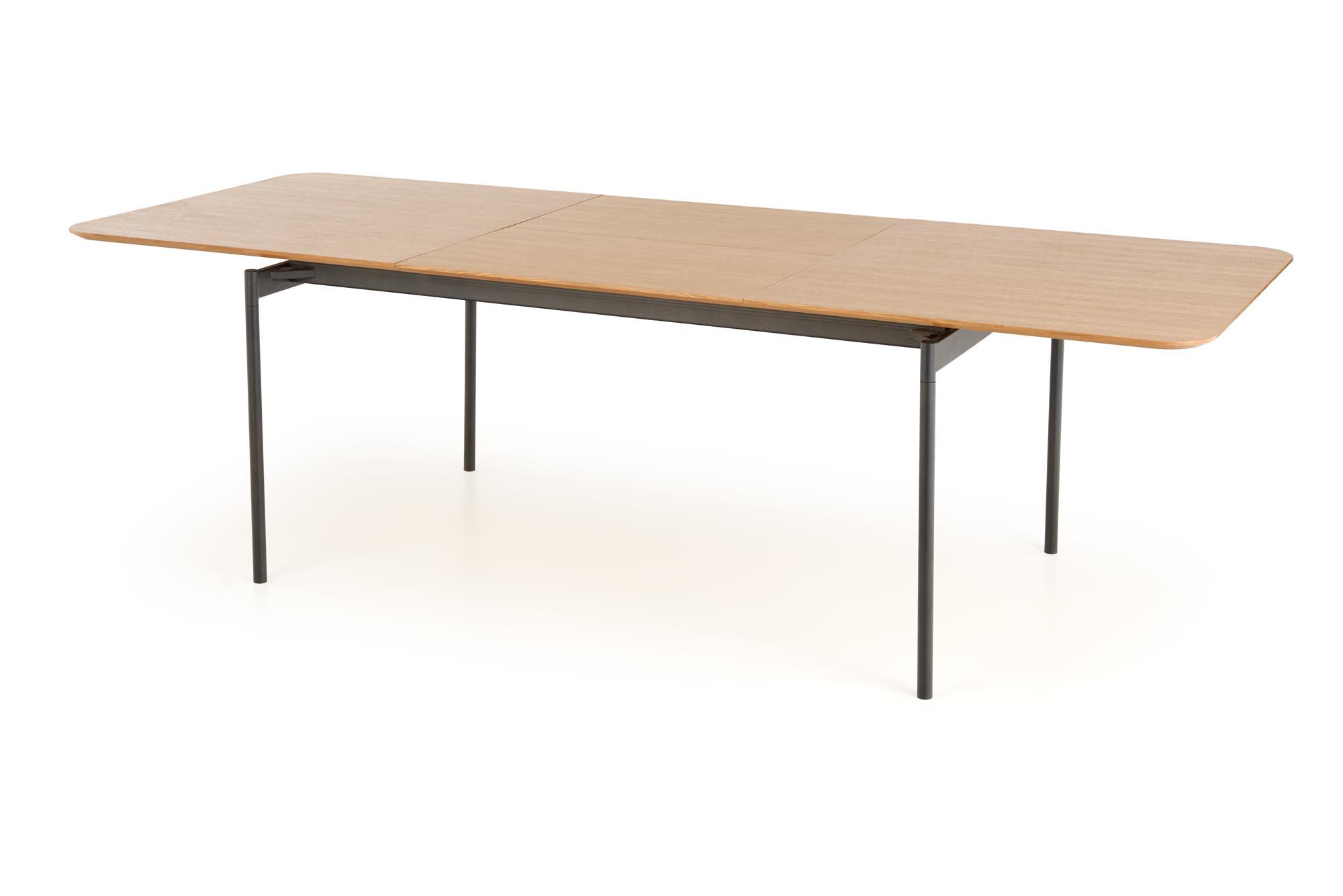 Stół wykonano z materiału: MDF + okleina naturalna - dębowa / płyta meblowa + okleina naturalna - dębowa / stal malowana proszkowo, kolor dąb naturalny - czarny