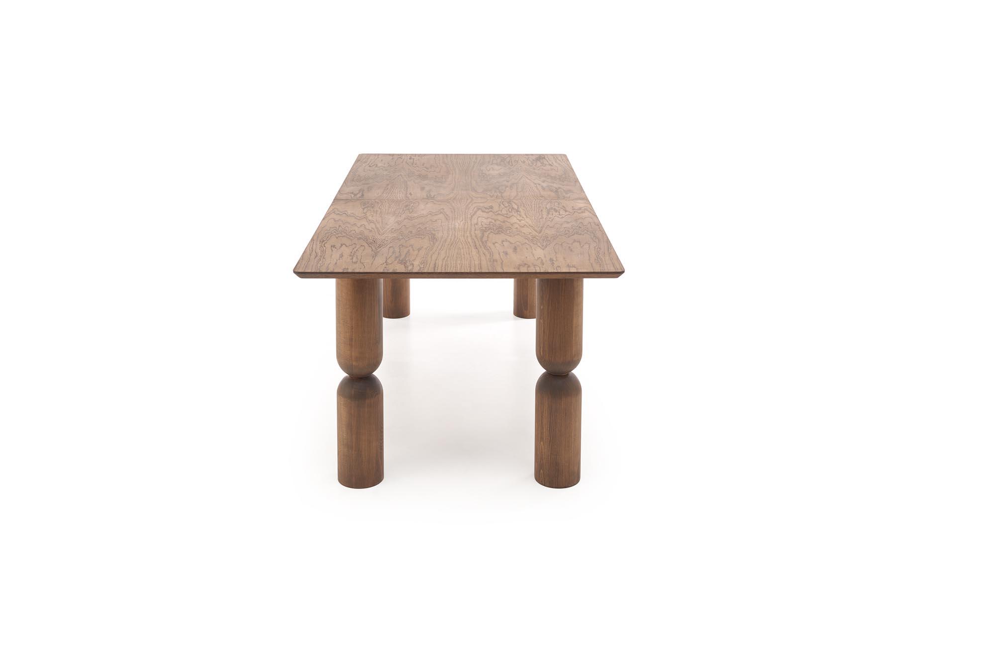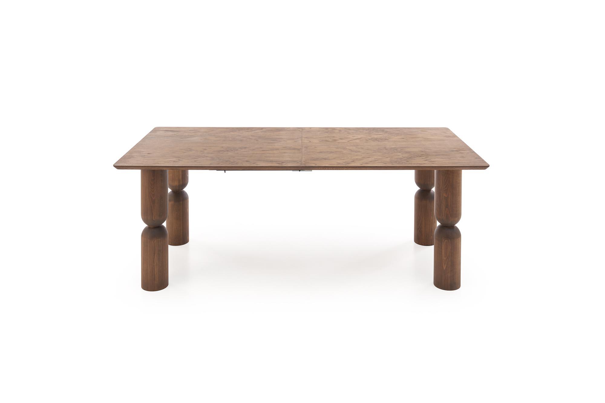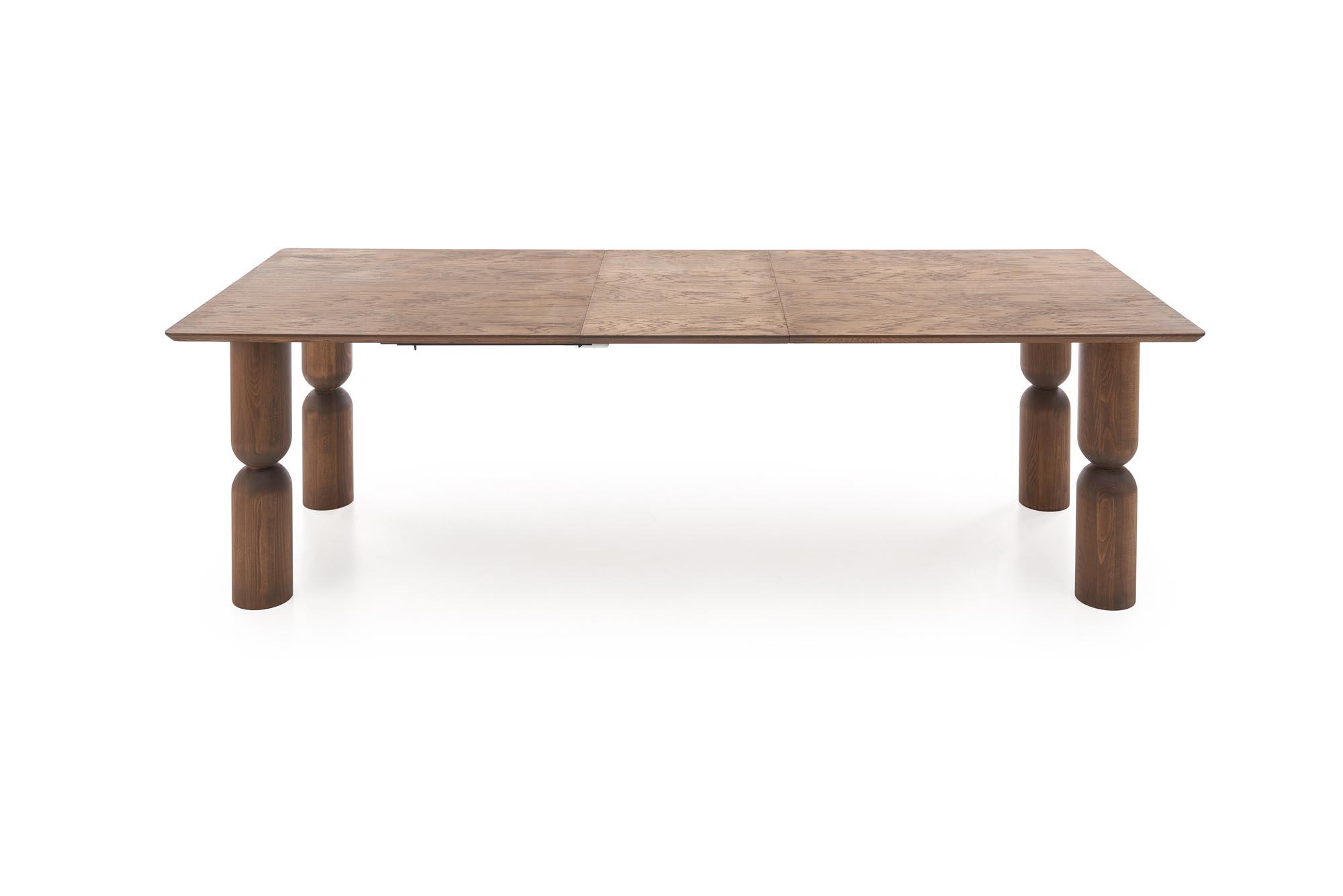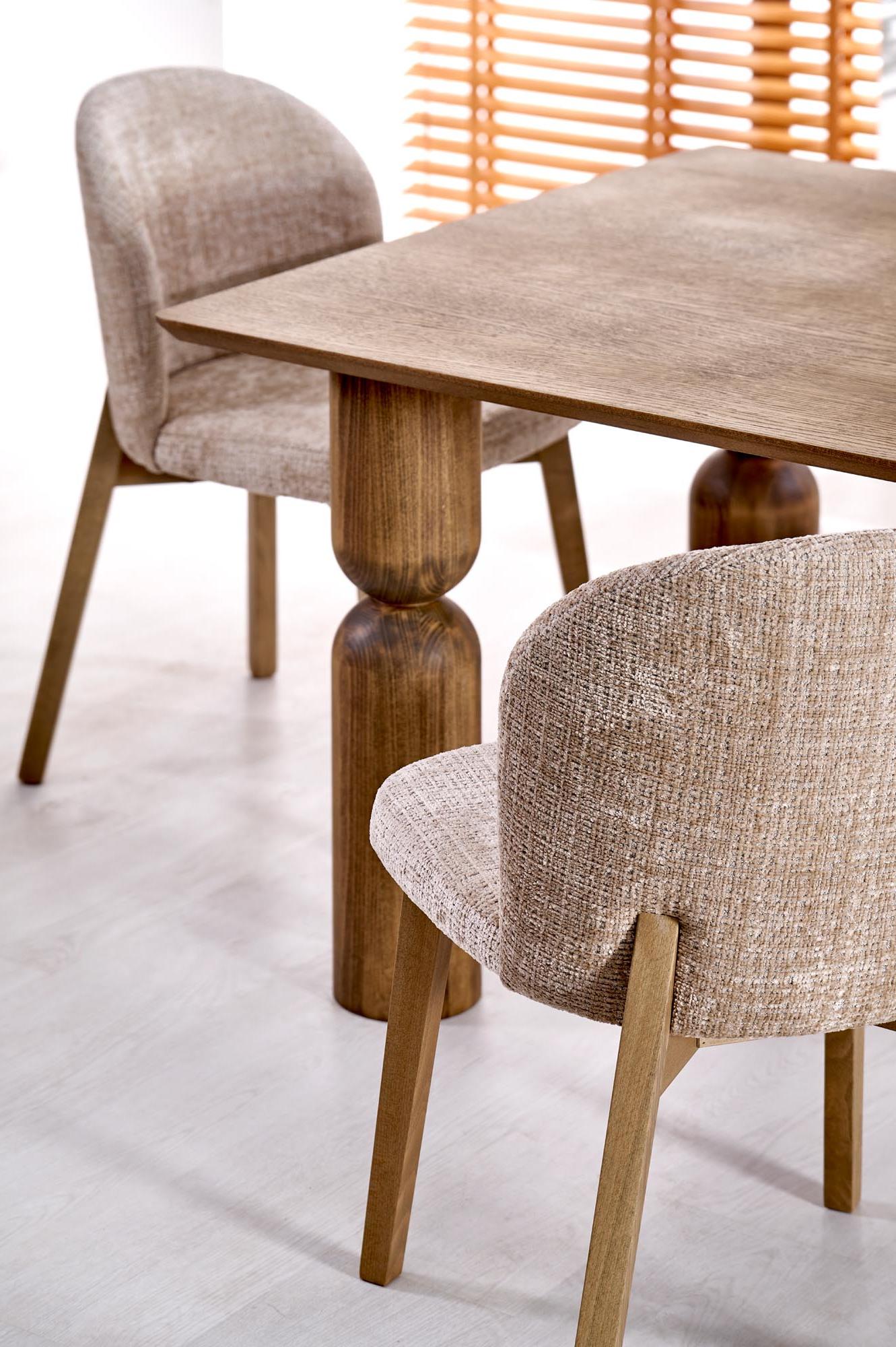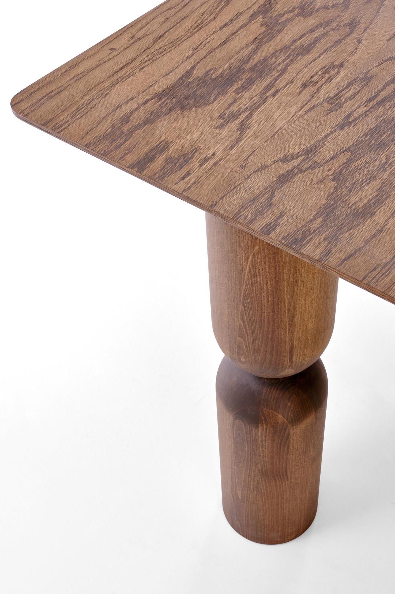 Stół wykonano z materiału: MDF + okleina naturalna ( dębowa ) / drewno lite - bukowe, kolor blat – jasny orzech, nogi - jasny orzech