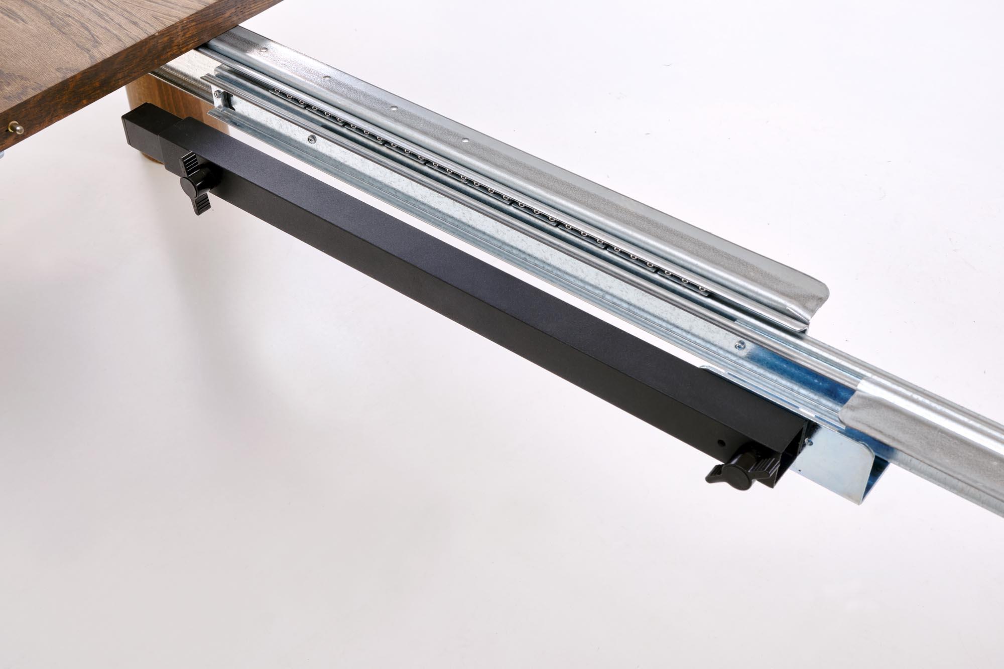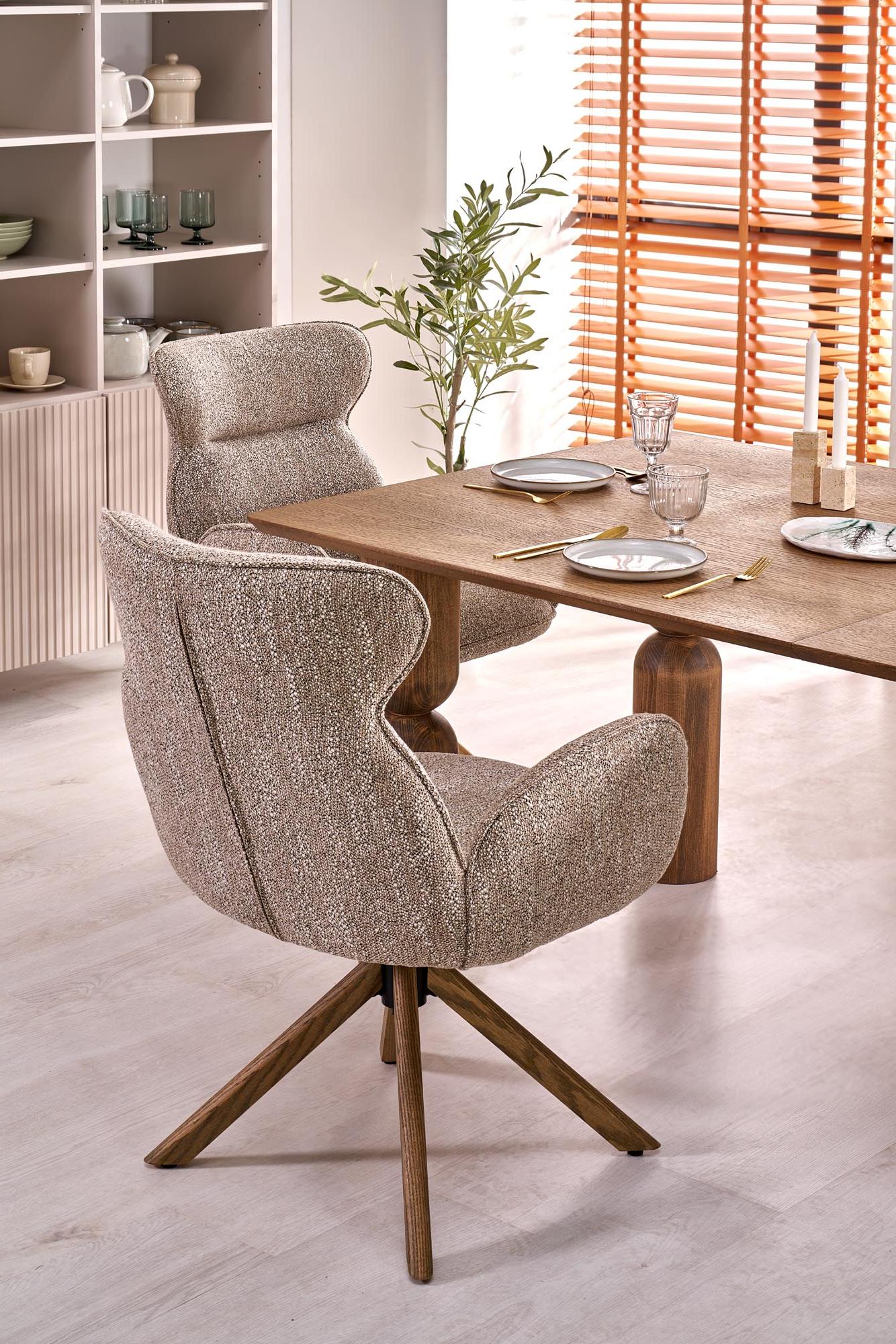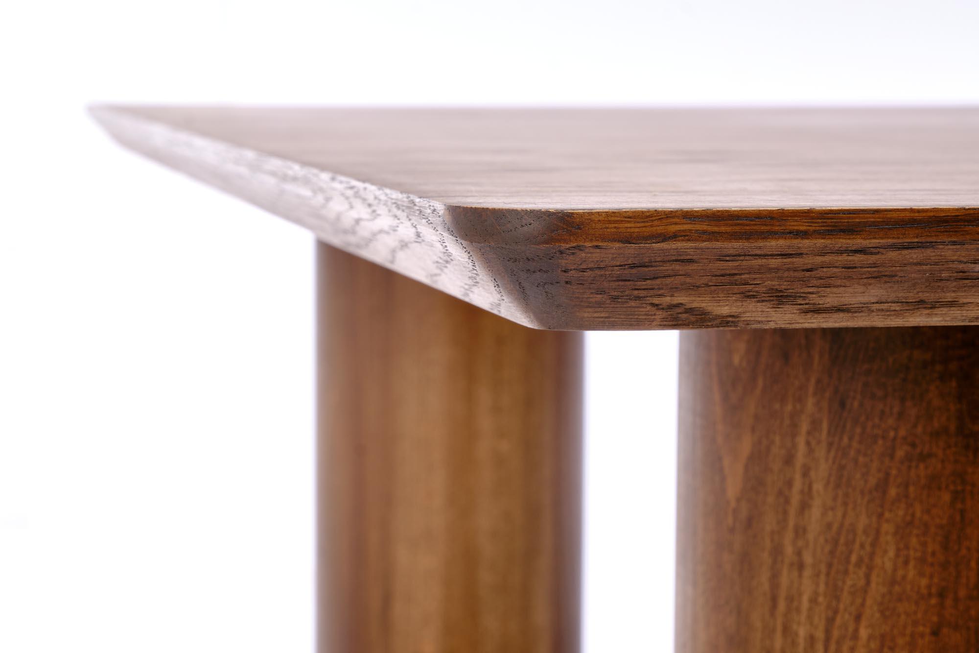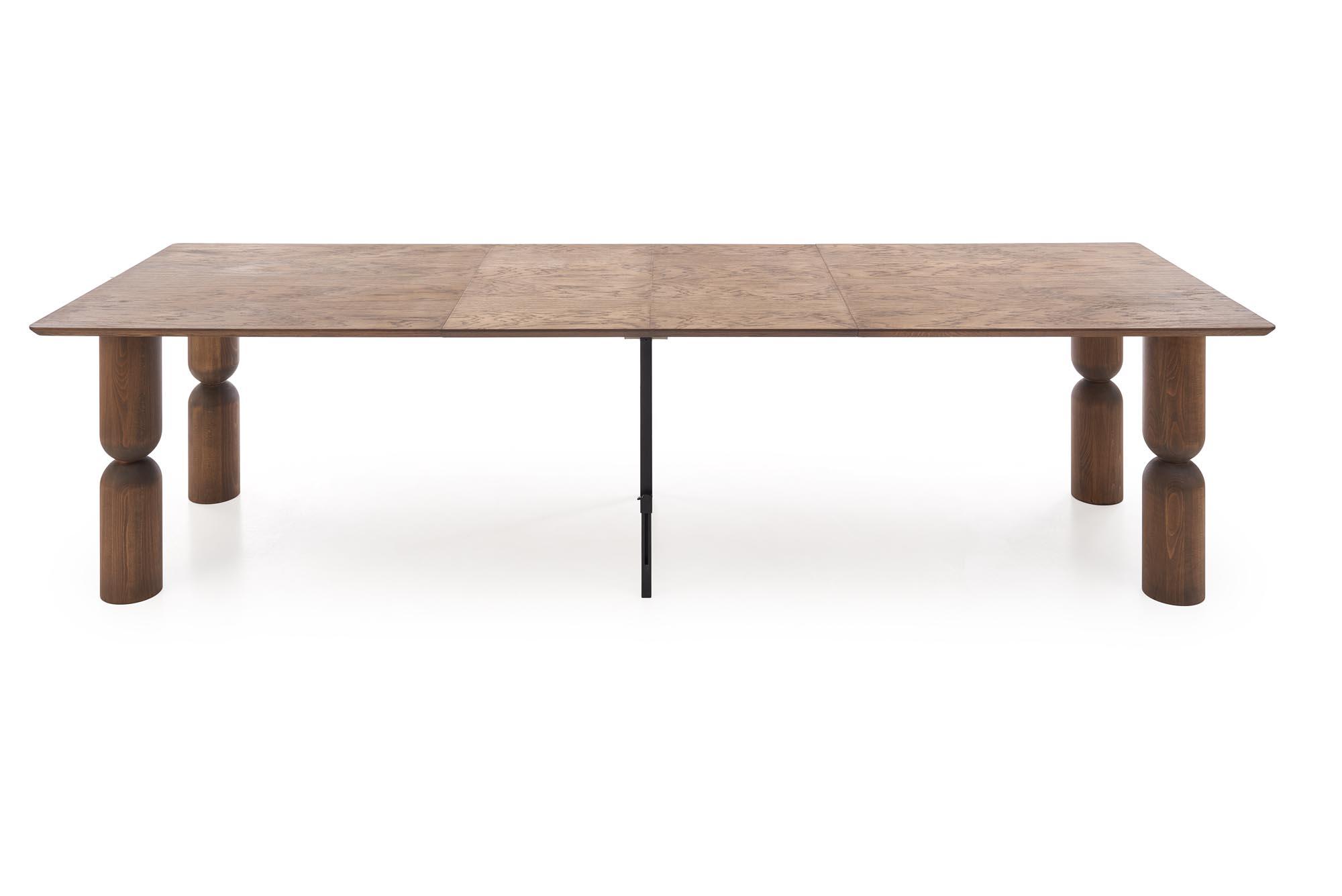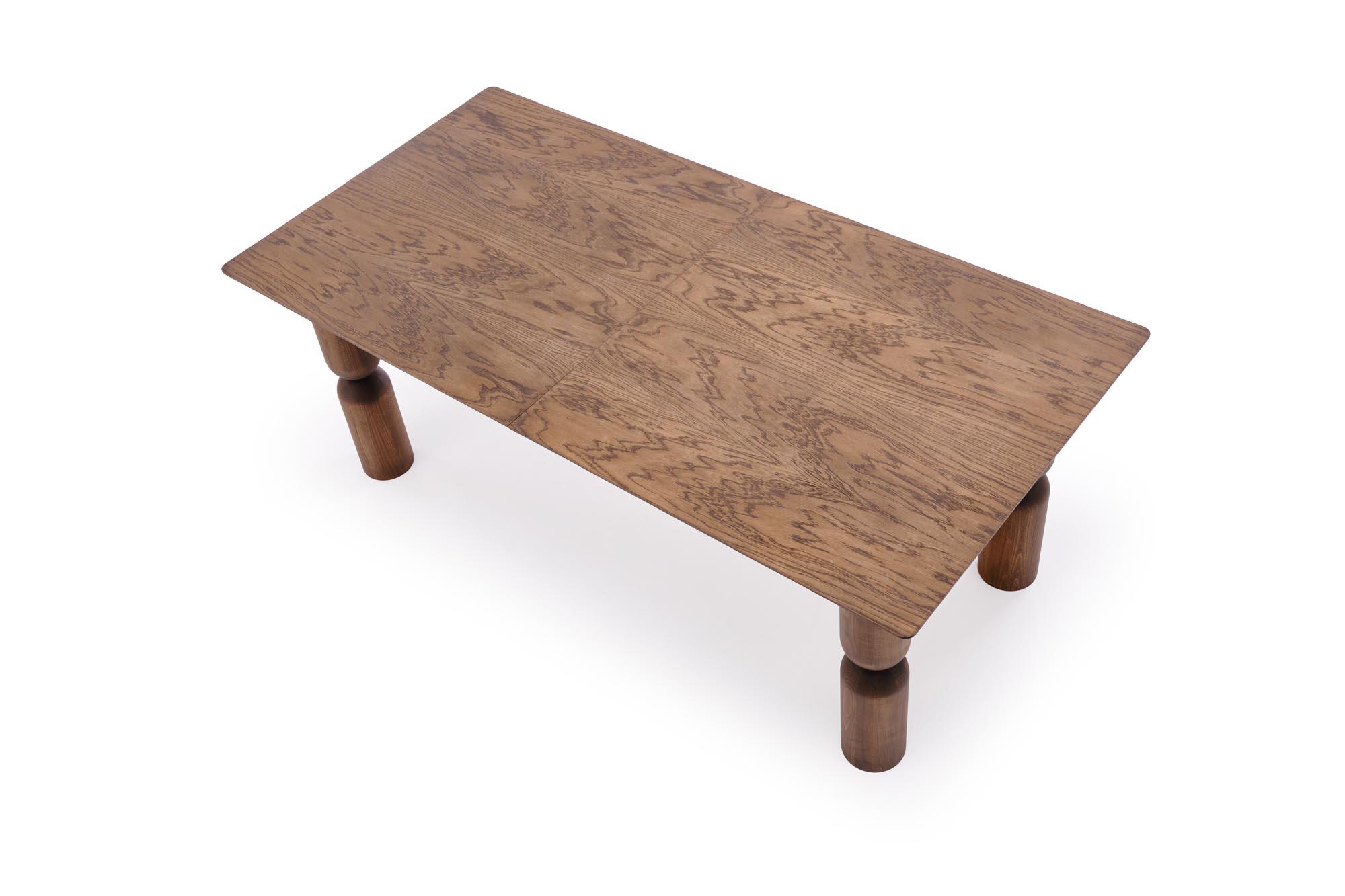 Stół wykonano z materiału: MDF + okleina naturalna ( dębowa ) / drewno lite - bukowe, kolor blat – jasny orzech, nogi - jasny orzech