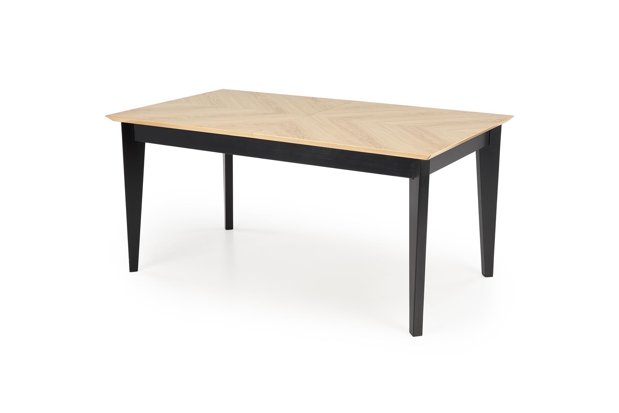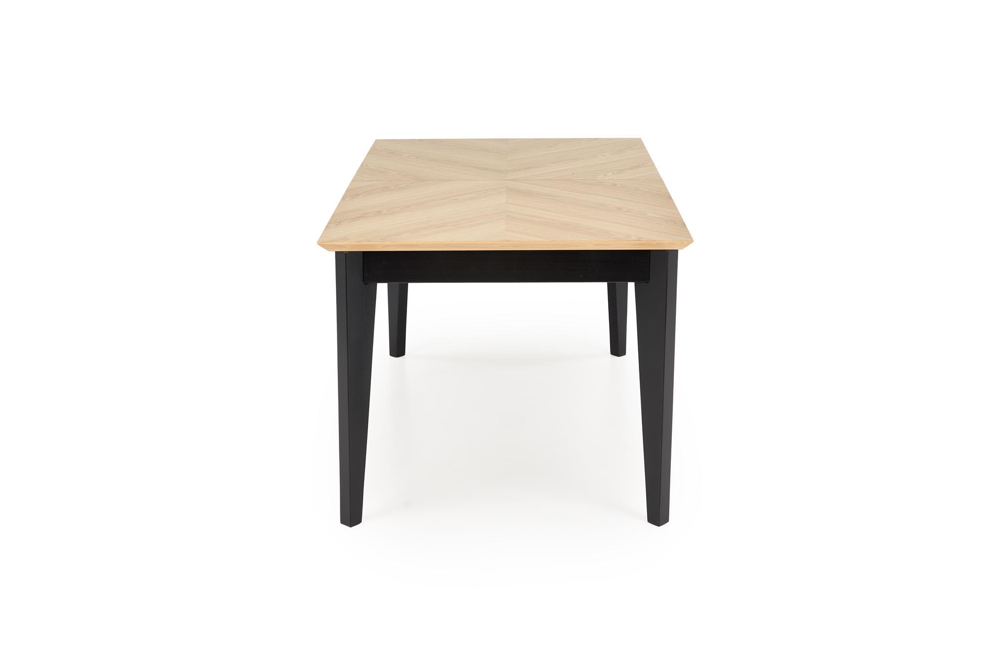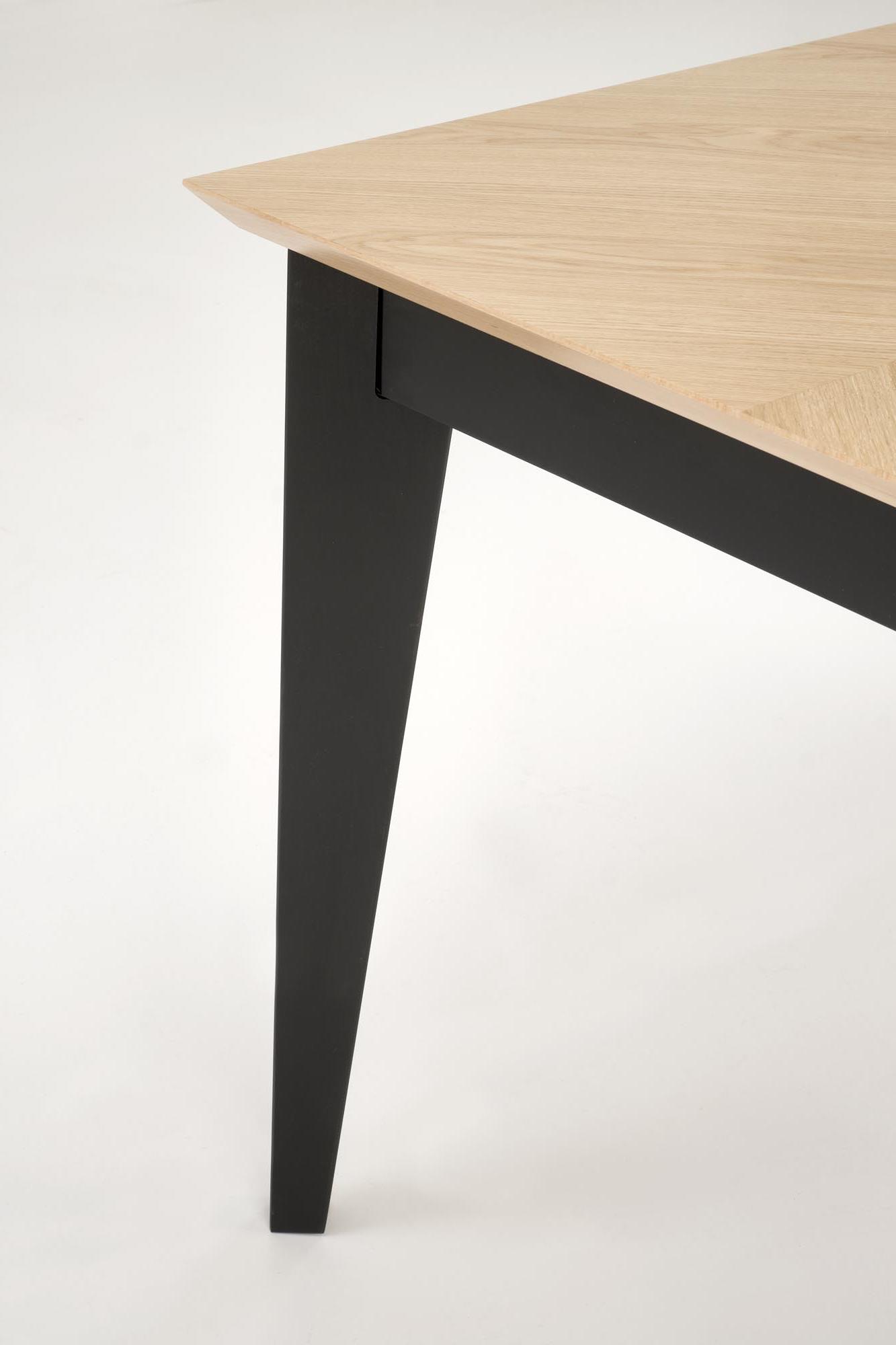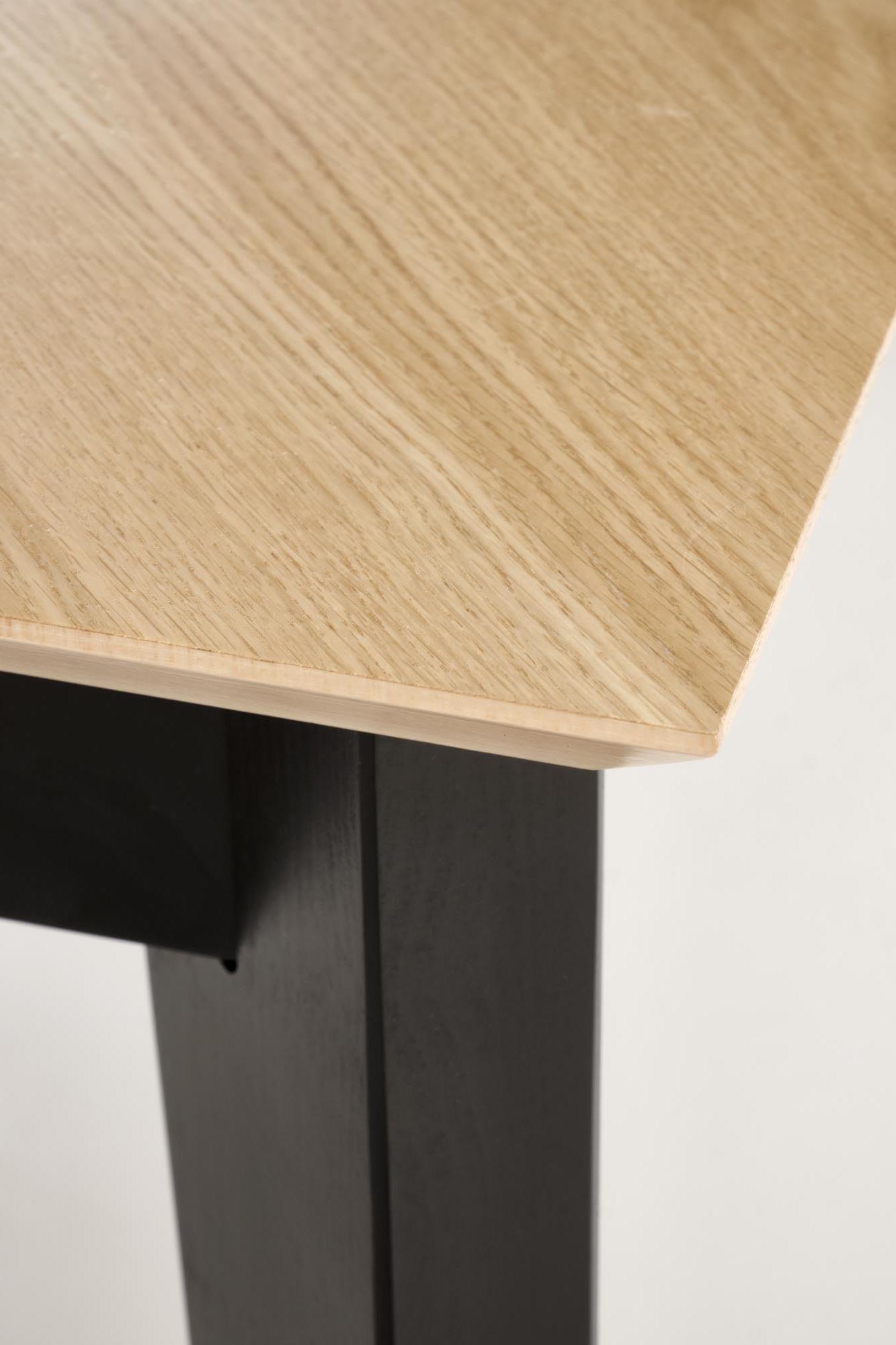 Stół wykonano z materiału: płyta meblowa + okleina naturalana - dębowa / drewno lite - bukowe, kolor blat - naturalny, nogi - czarny