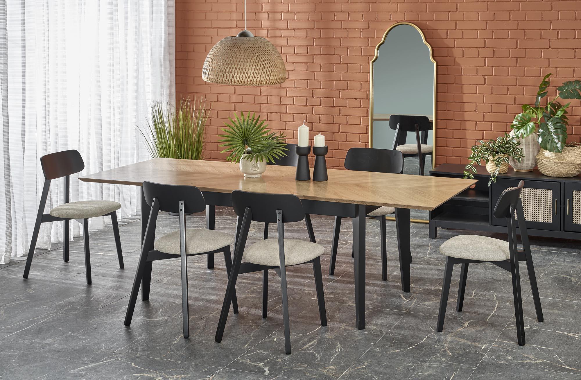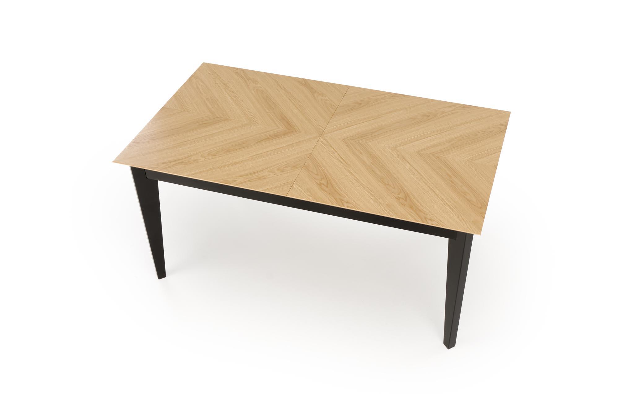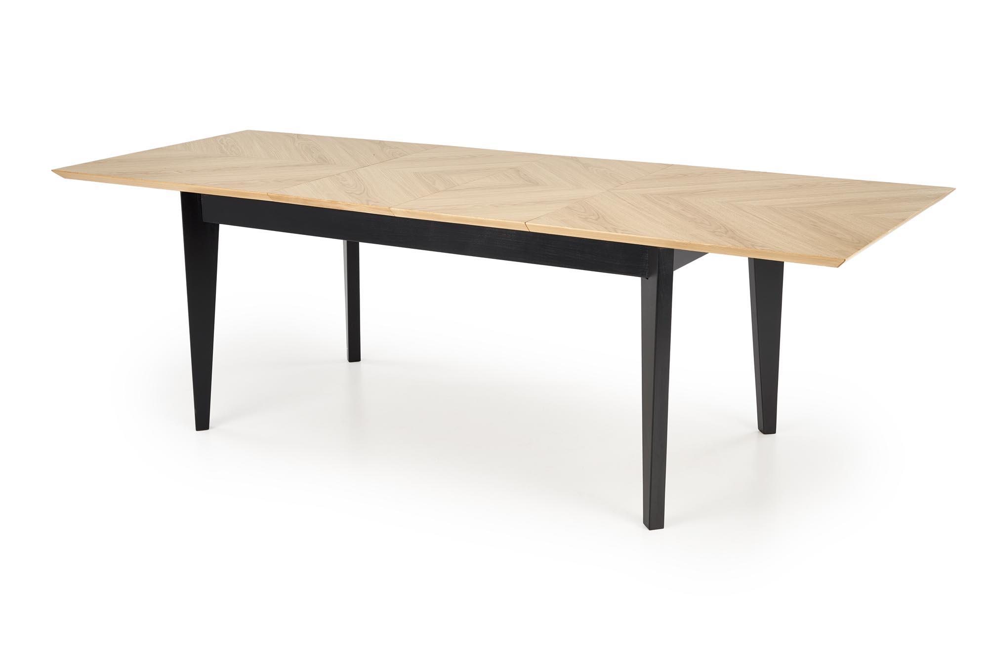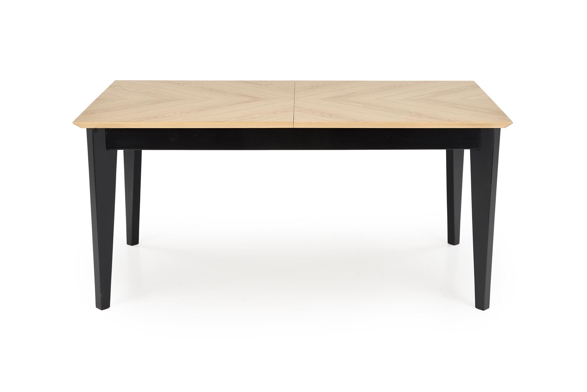 Stół wykonano z materiału: płyta meblowa + okleina naturalana - dębowa / drewno lite - bukowe, kolor blat - naturalny, nogi - czarny