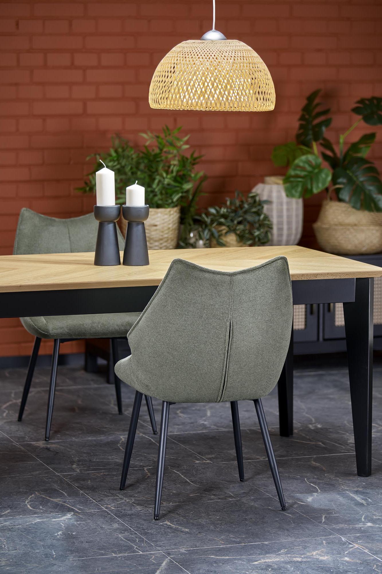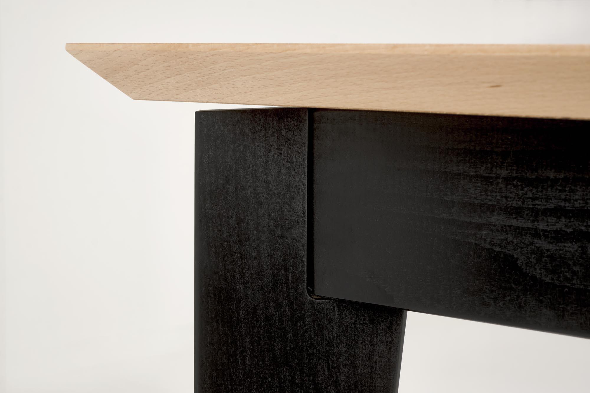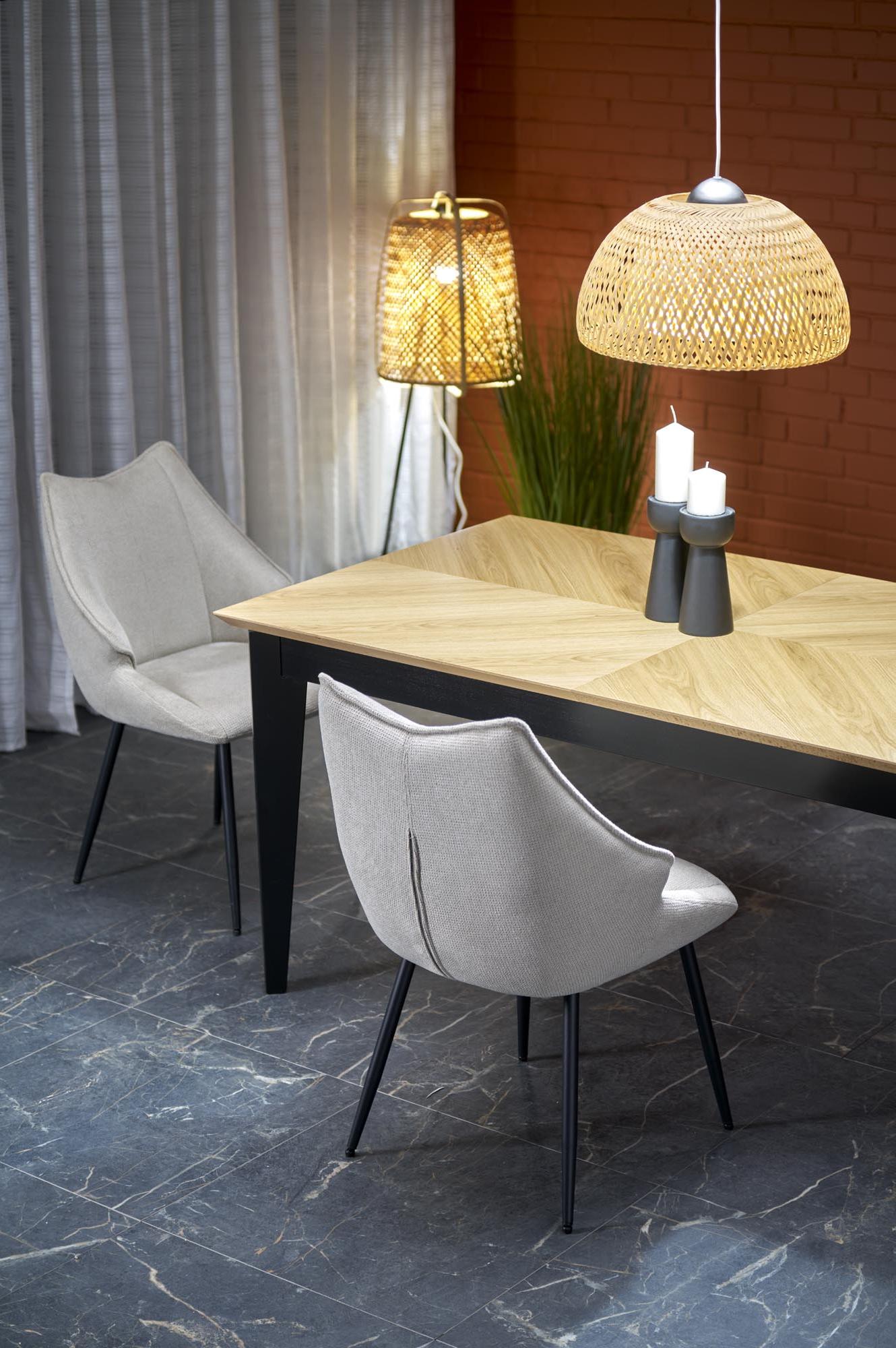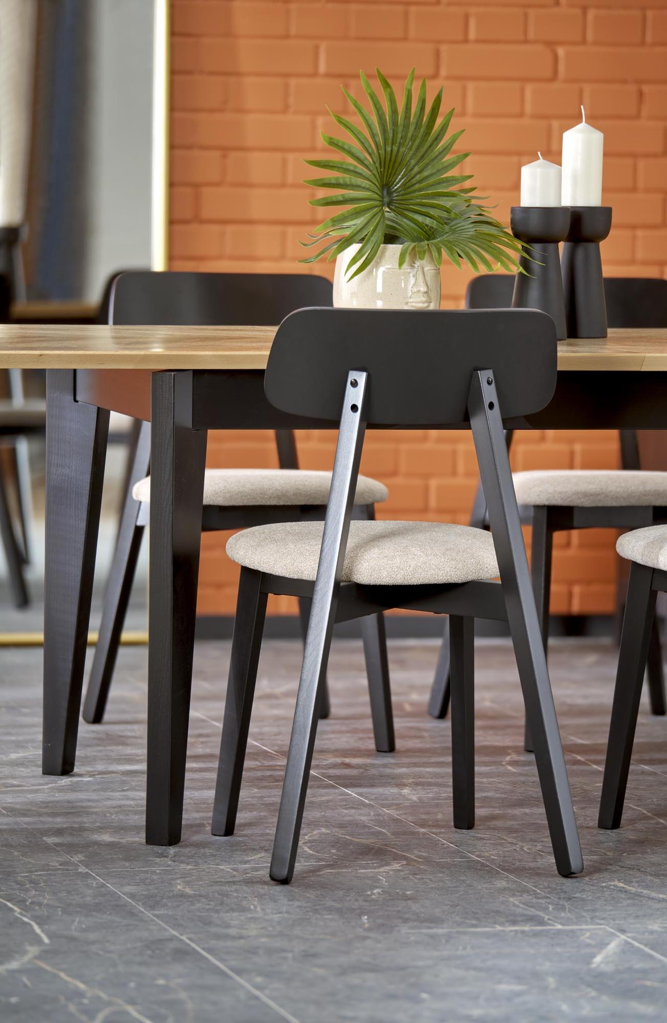 Stół wykonano z materiału: płyta meblowa + okleina naturalana - dębowa / drewno lite - bukowe, kolor blat - naturalny, nogi - czarny