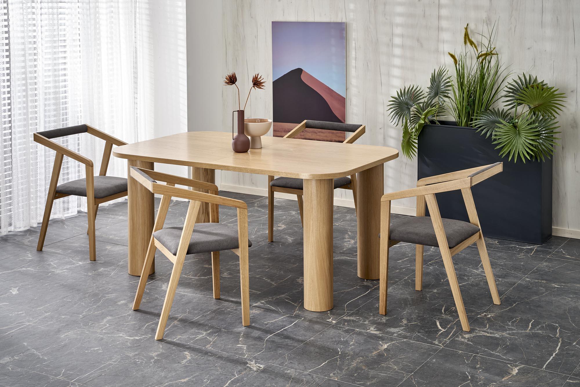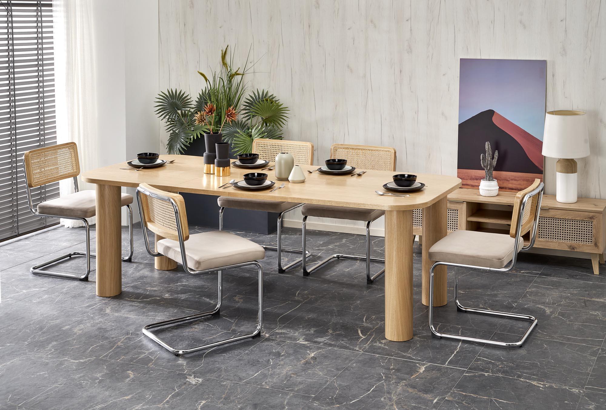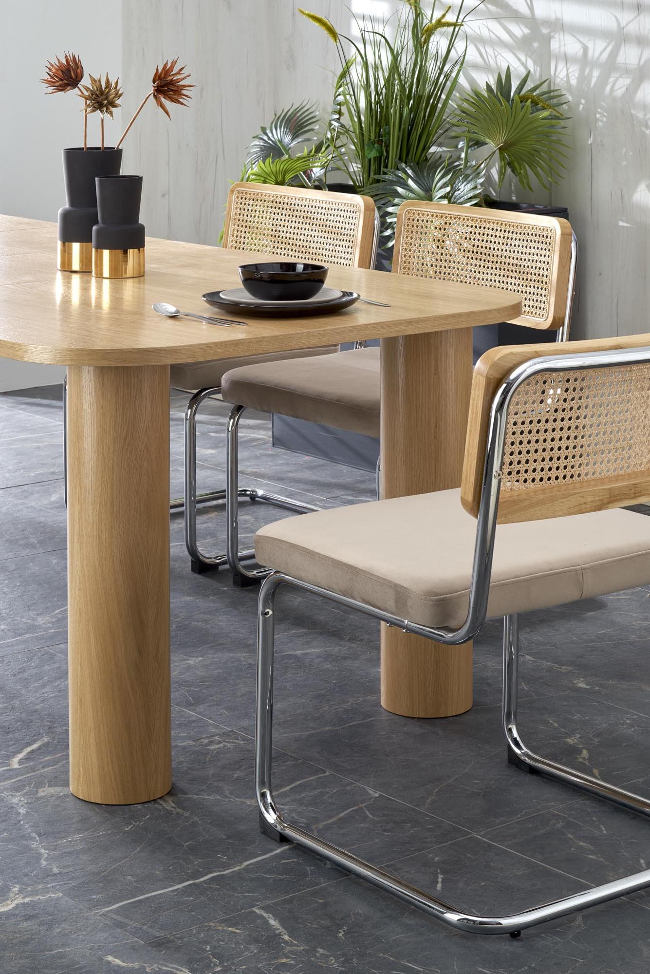 Stół wykonano z materiału: MDF + okleina naturalna - dębowa, kolor dąb naturalny