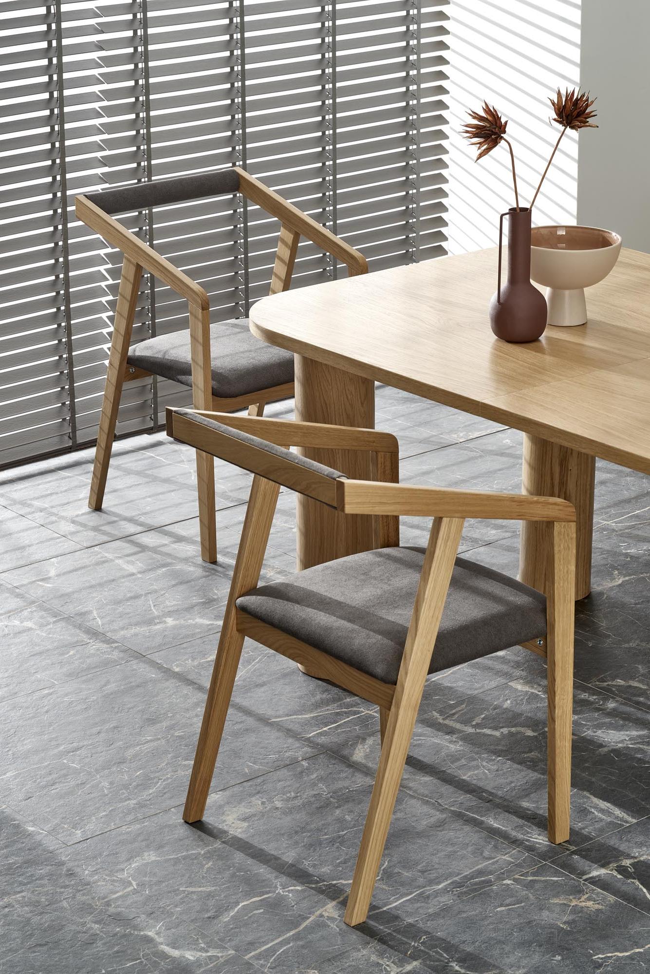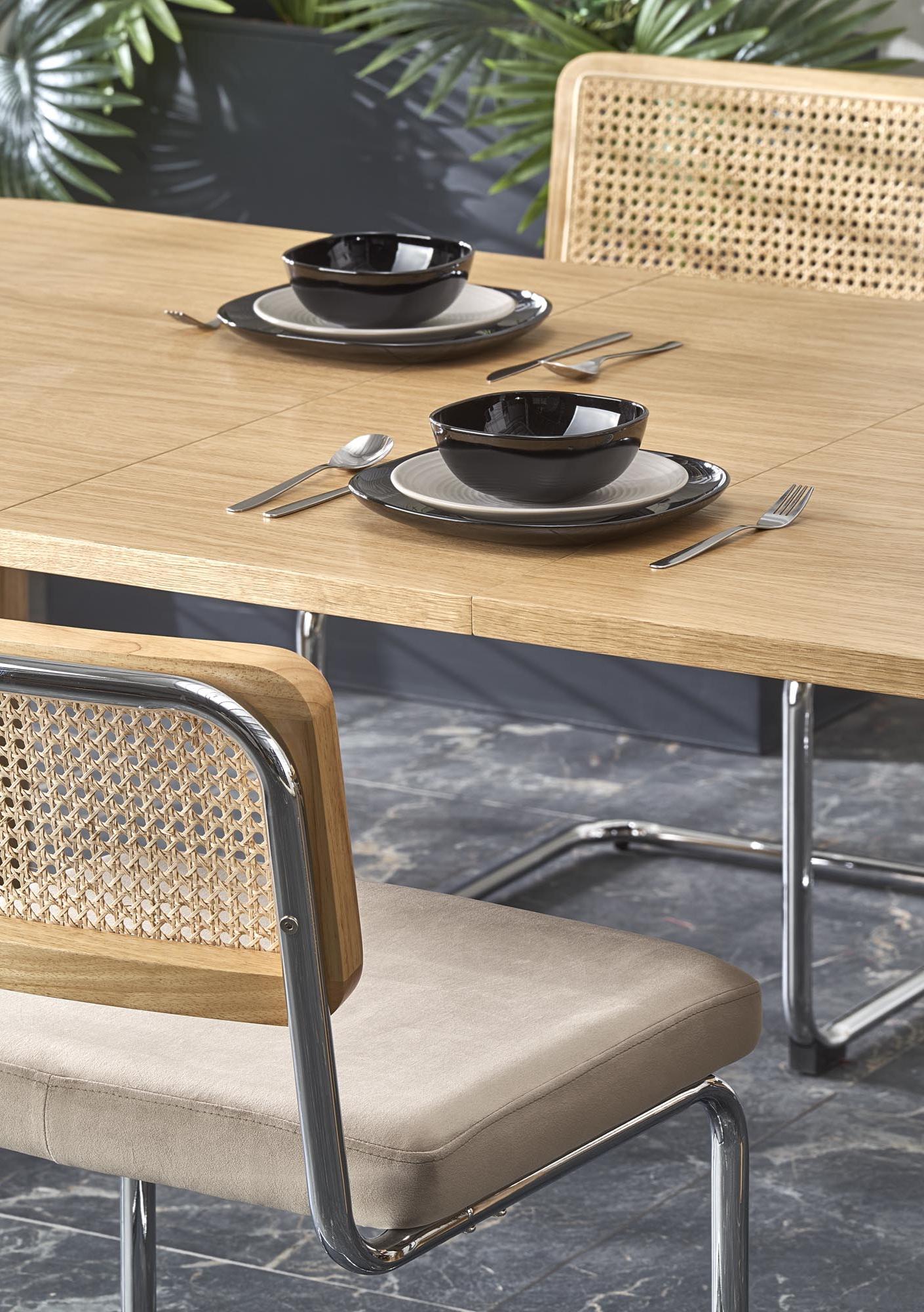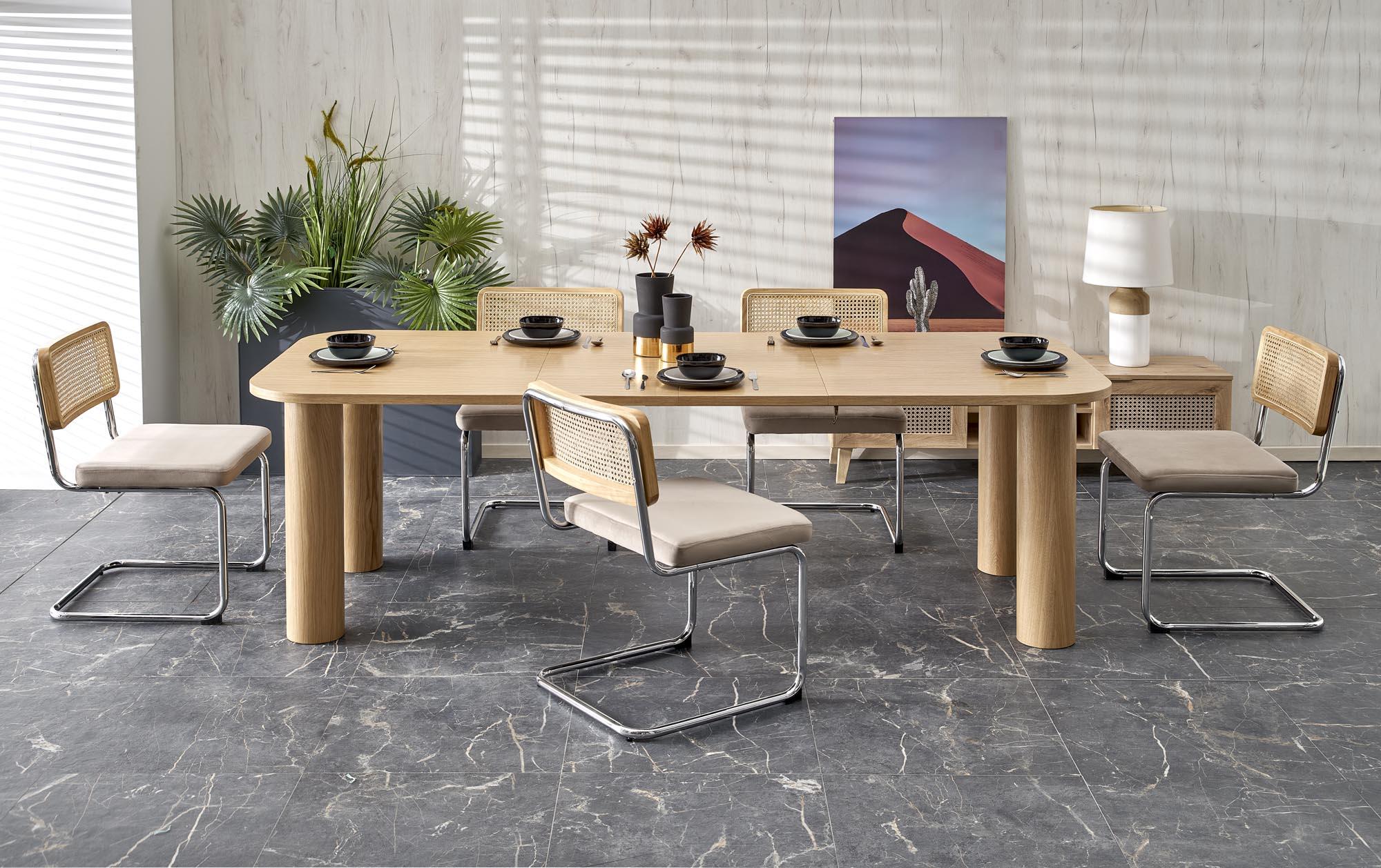 Stół wykonano z materiału: MDF + okleina naturalna - dębowa, kolor dąb naturalny