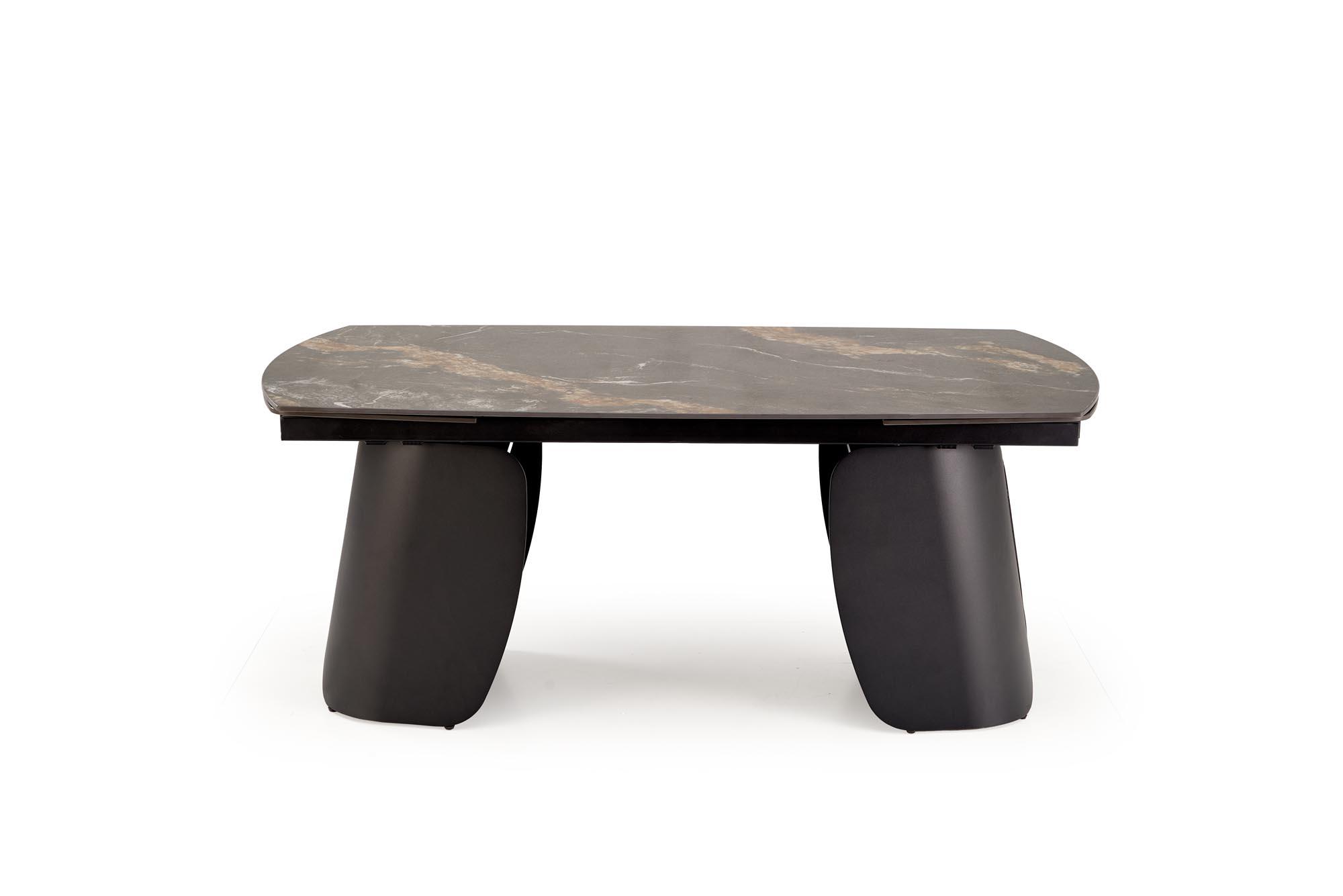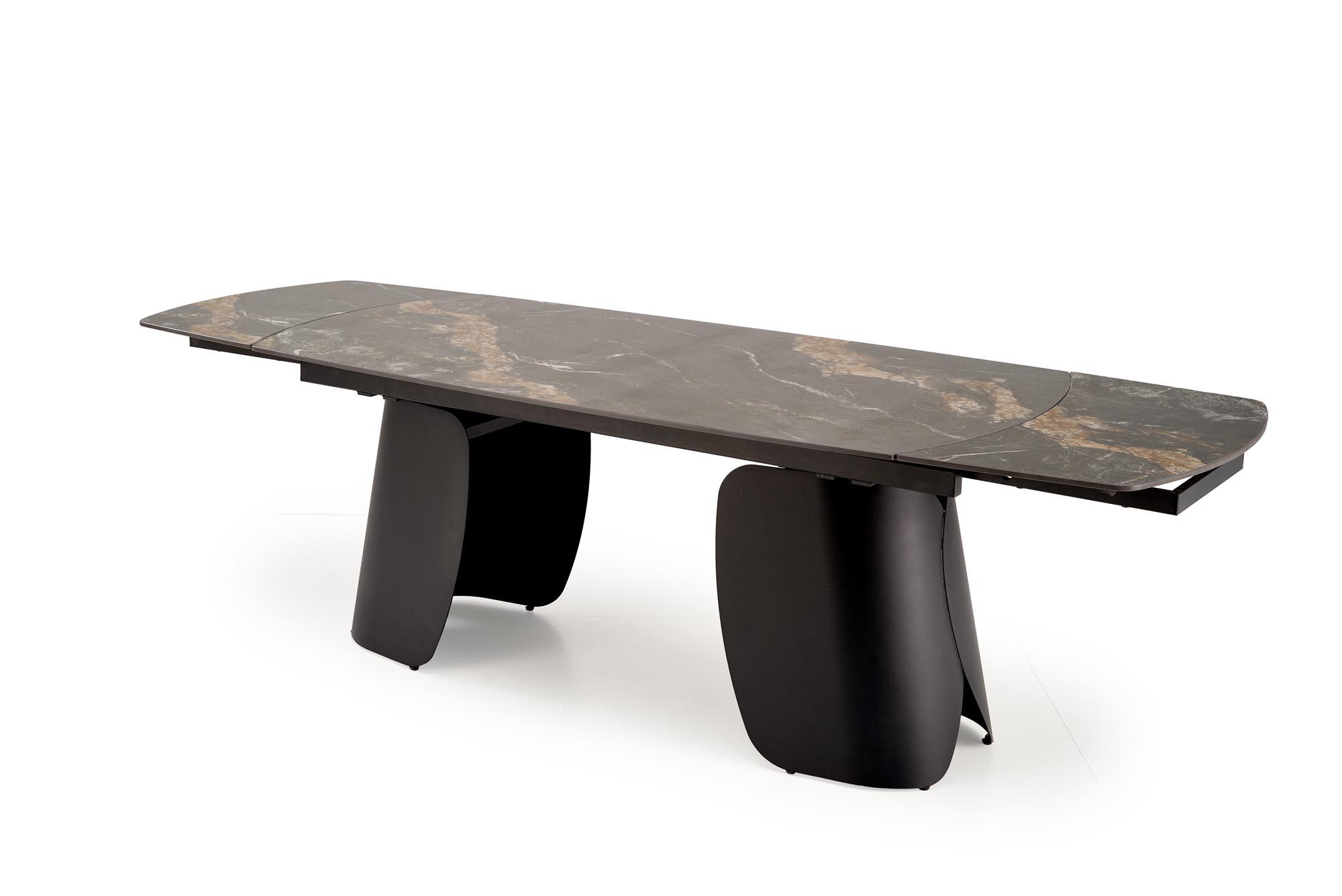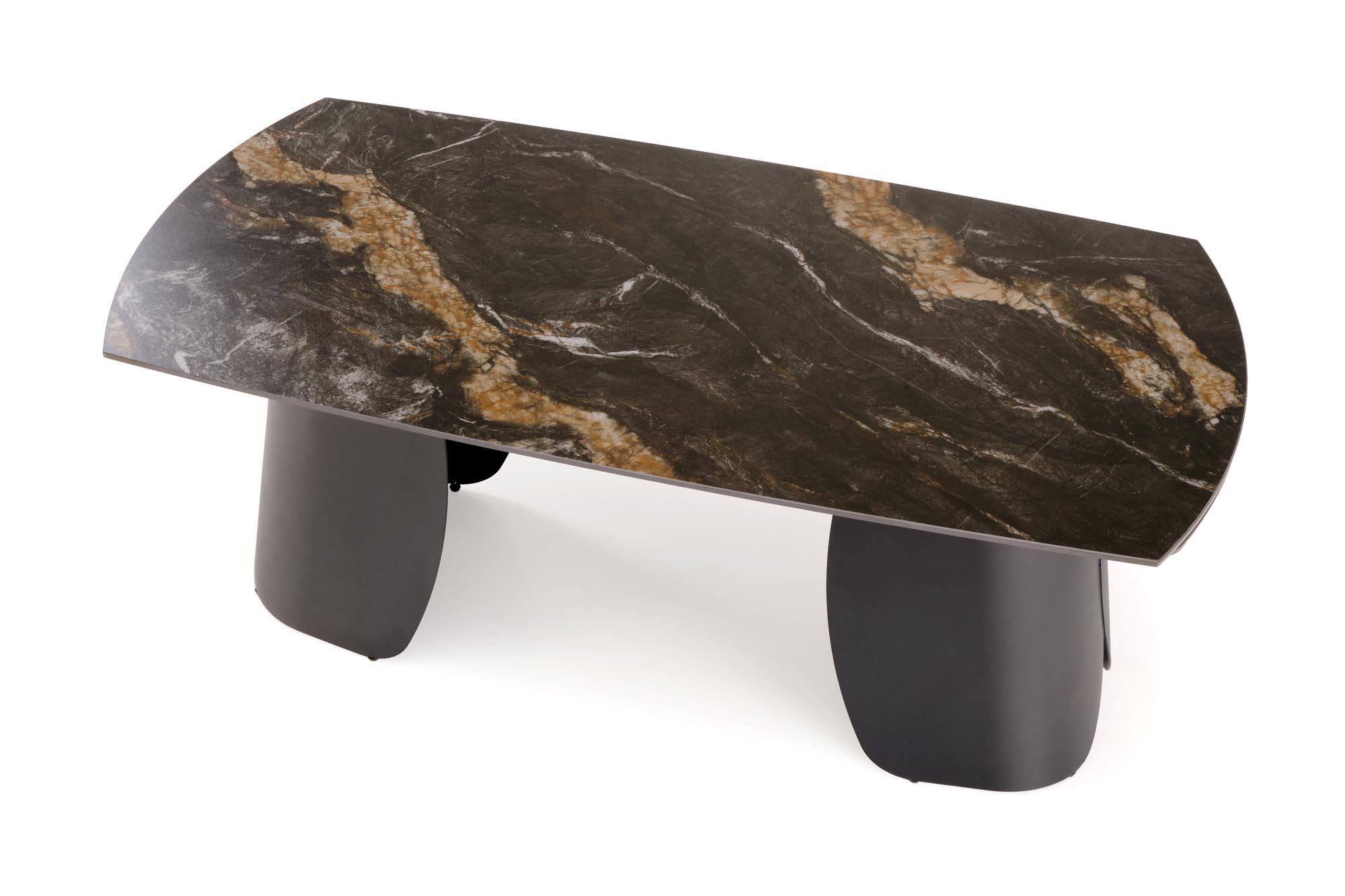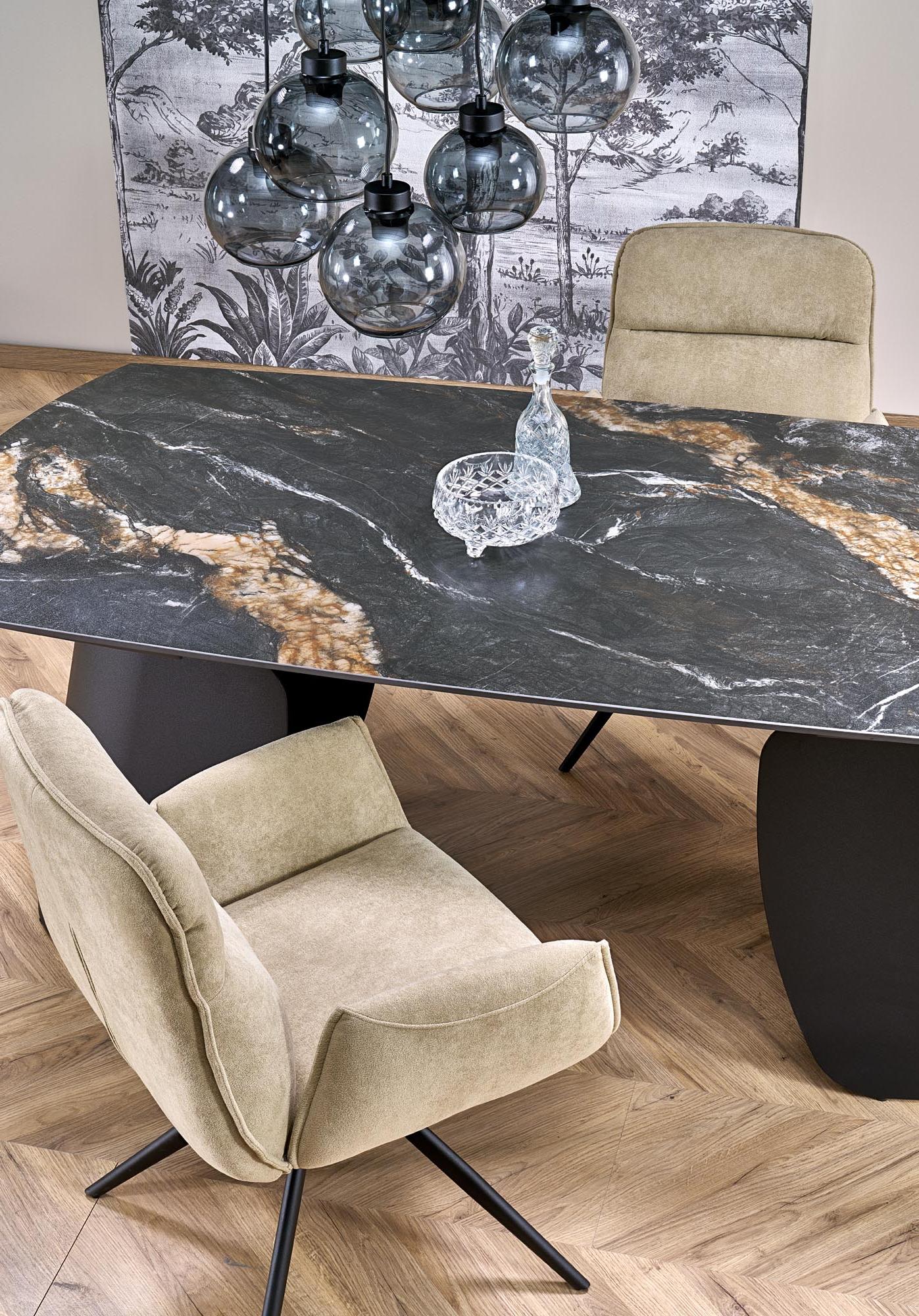 Stół wykonano z materiału: spiek / stal malowana proszkowo, kolor blat – czarny marmur, nogi - czarny