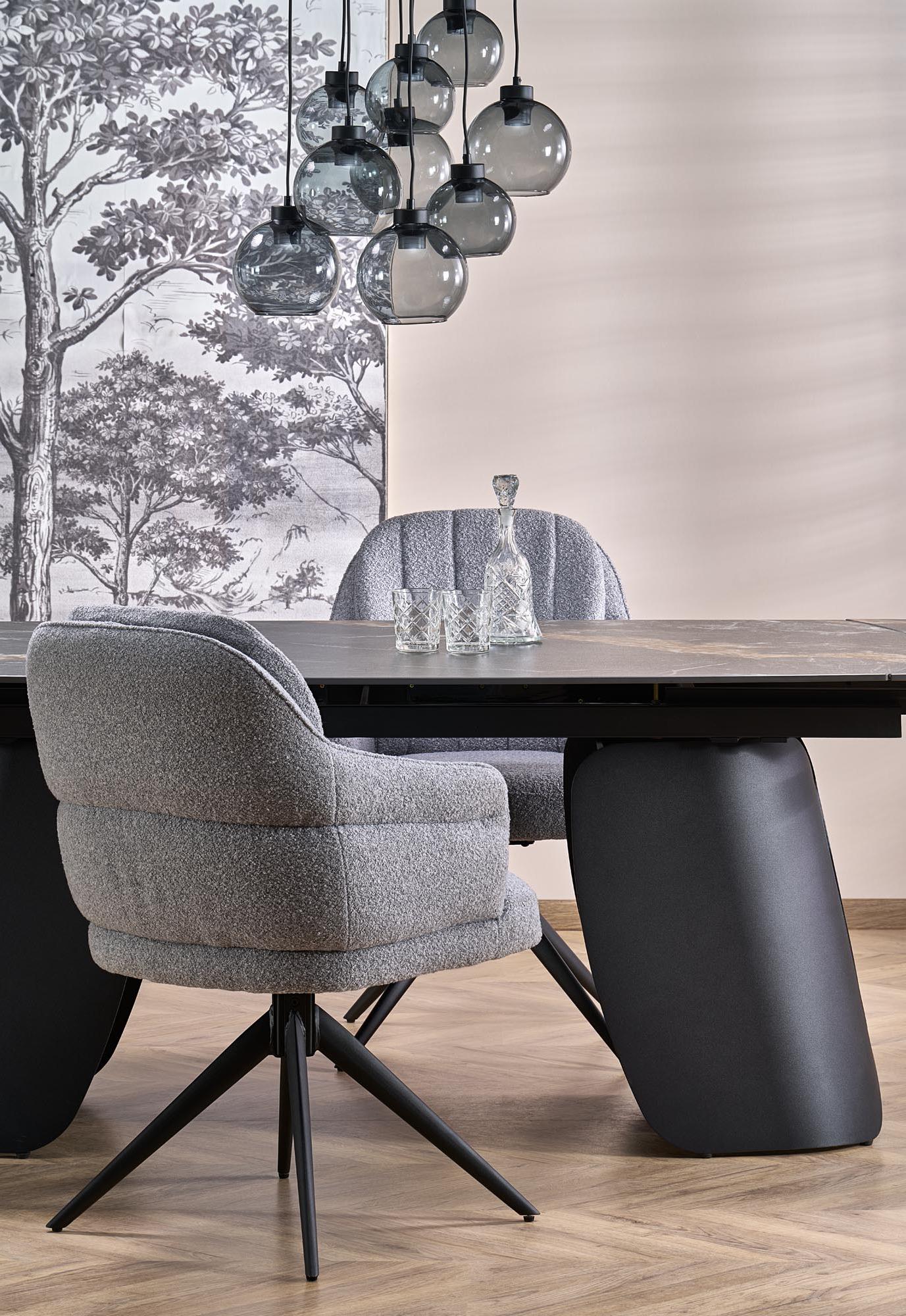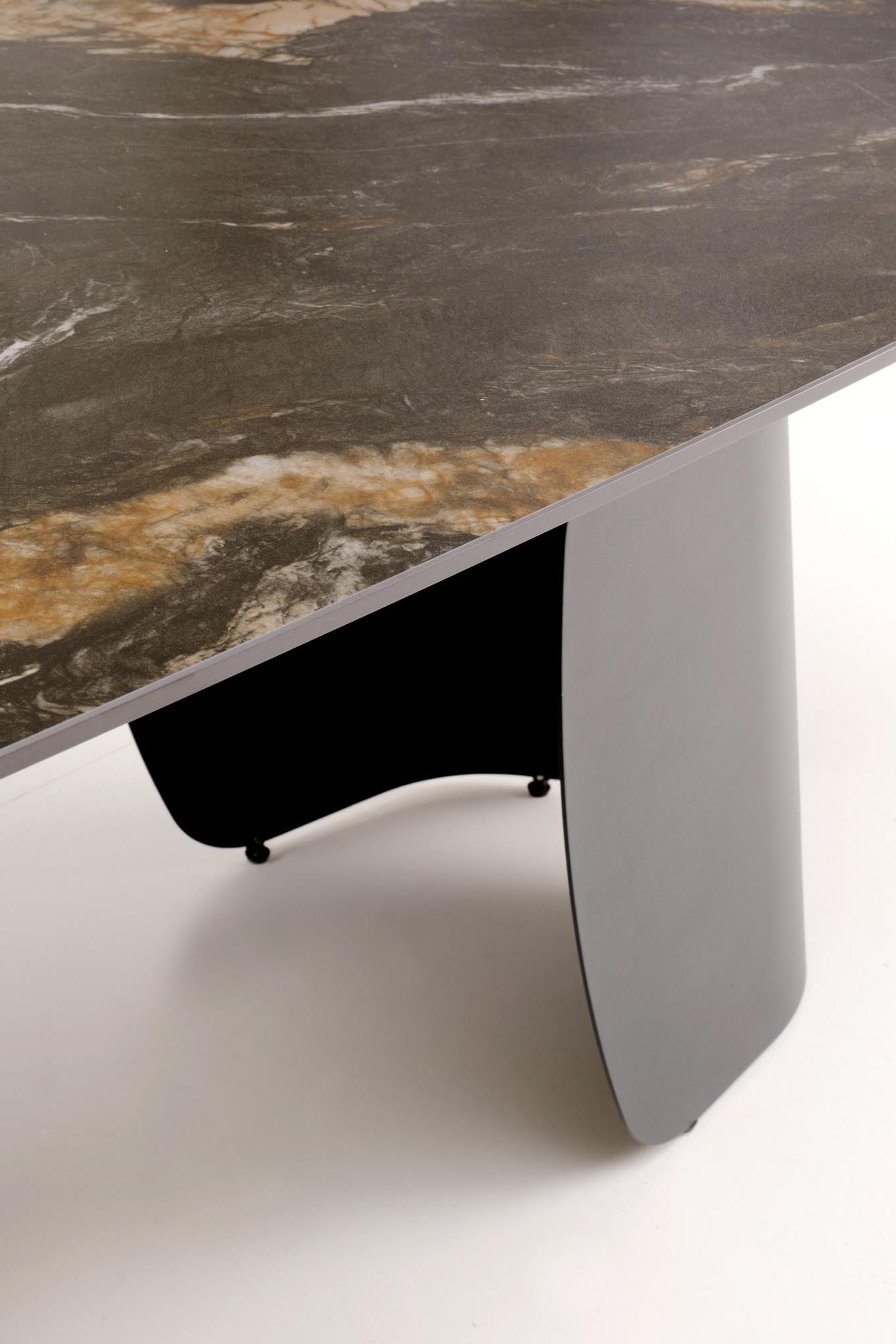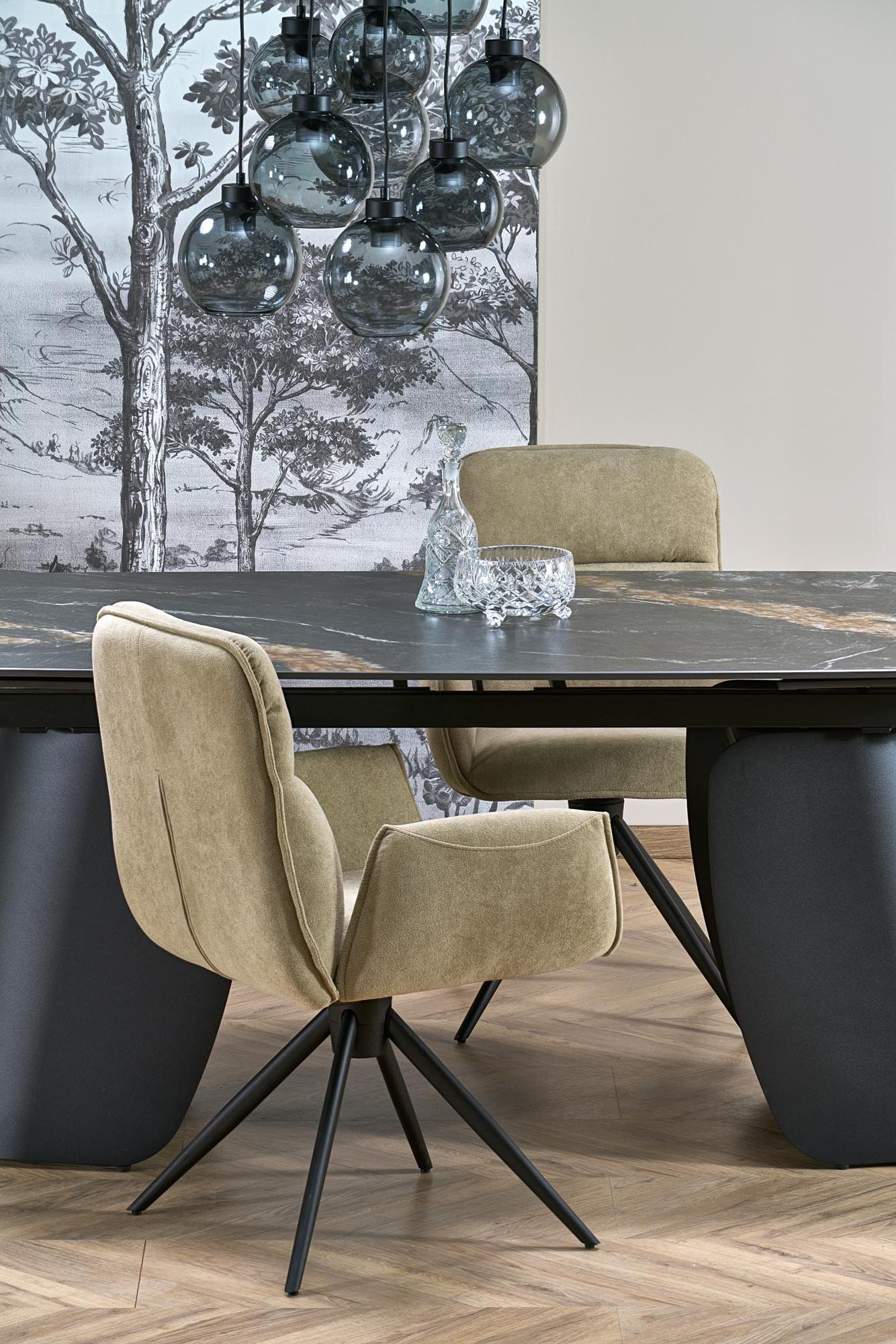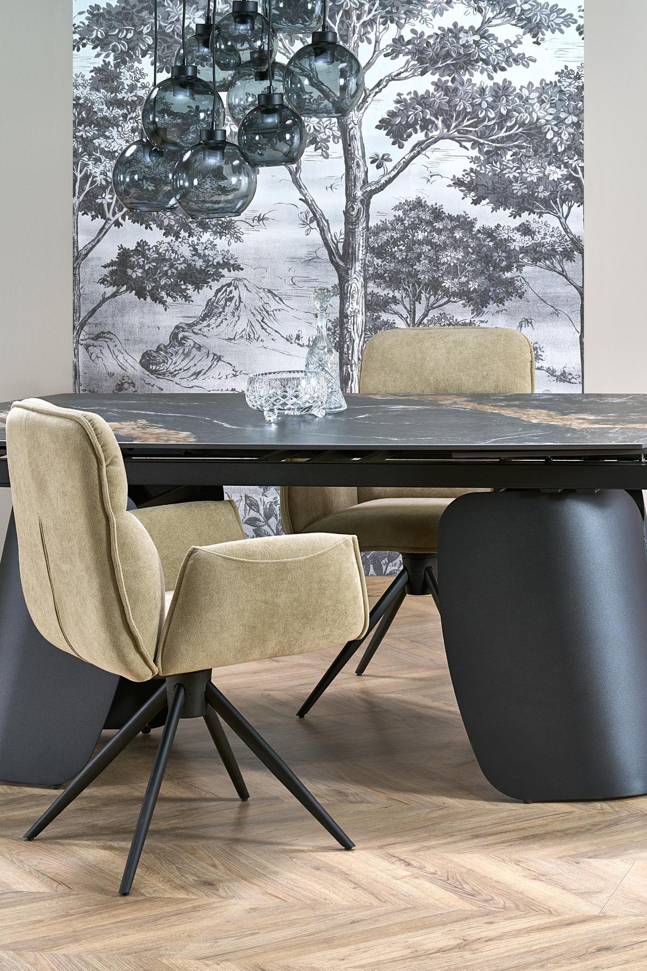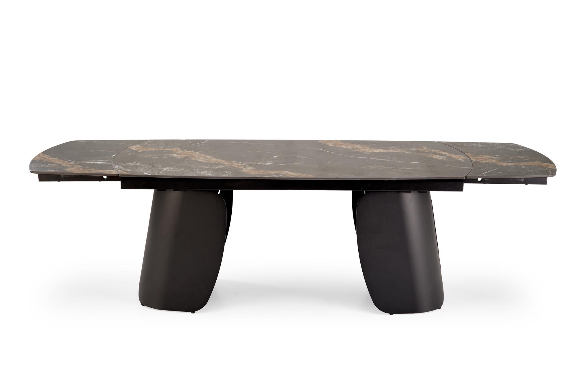 Stół wykonano z materiału: spiek / stal malowana proszkowo, kolor blat – czarny marmur, nogi - czarny