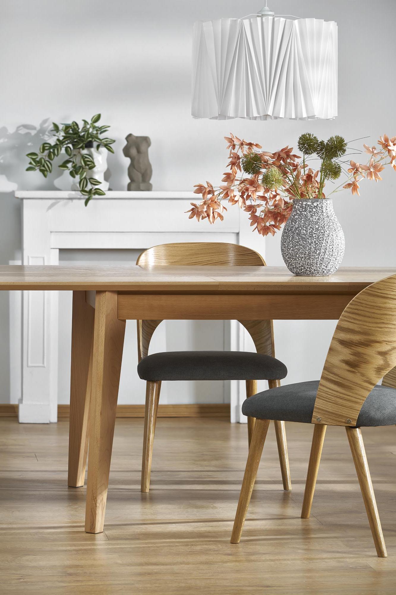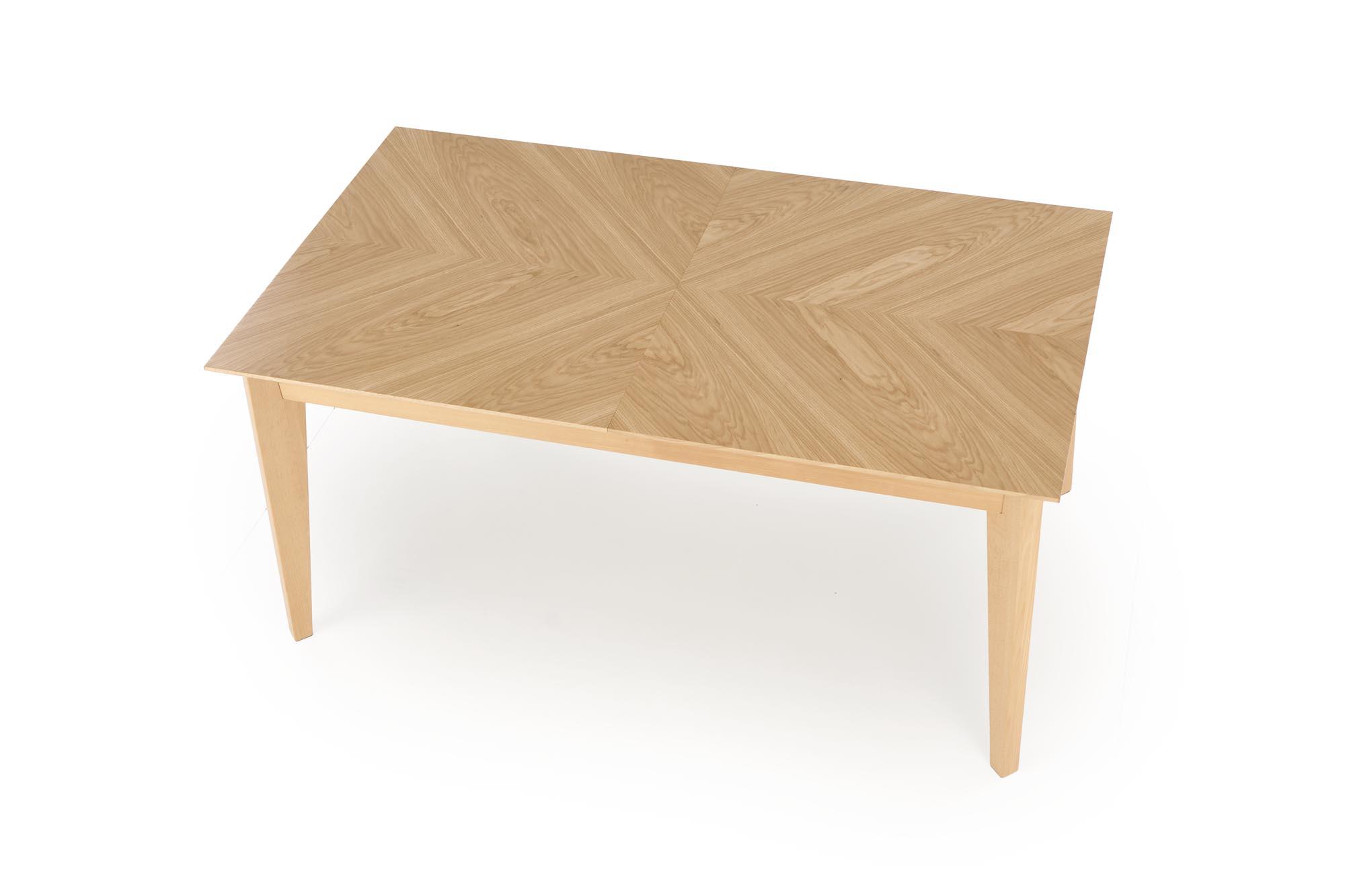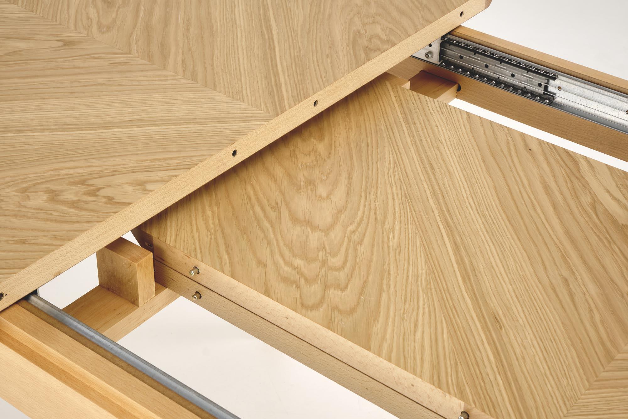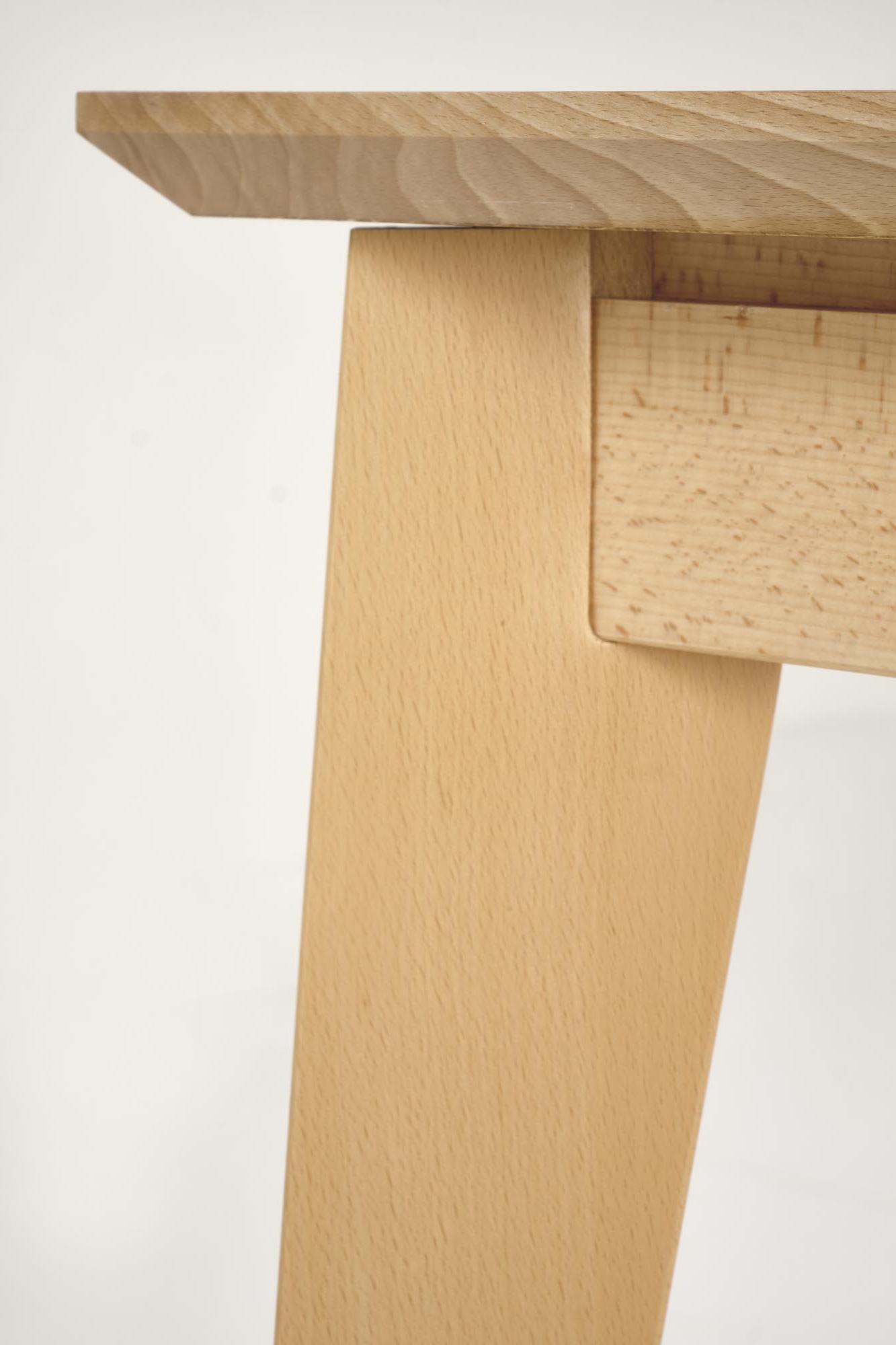 Stół wykonano z materiału: płyta meblowa + okleina naturalana - dębowa / drewno lite - bukowe, kolor blat - naturalny, nogi - naturalny