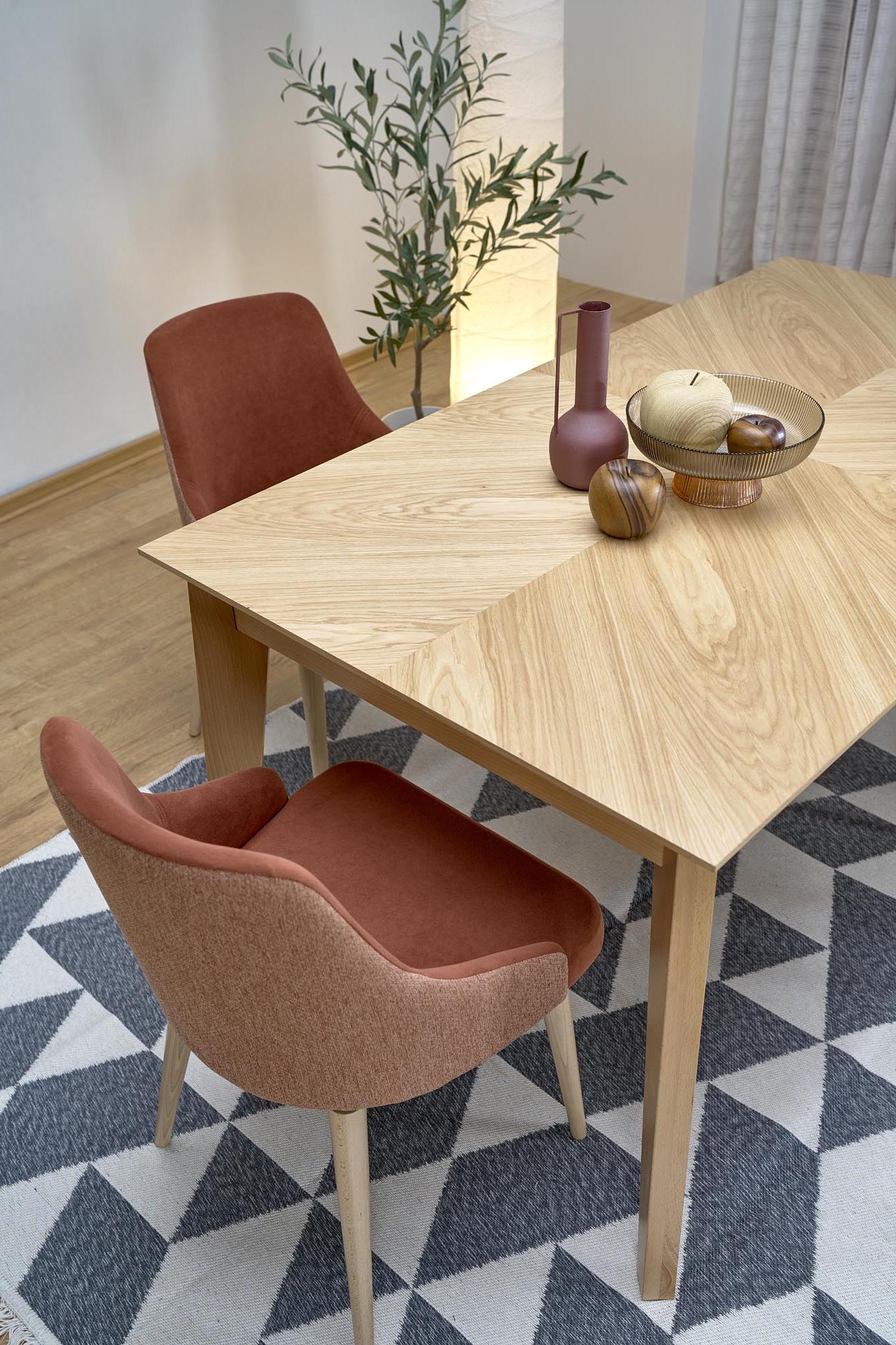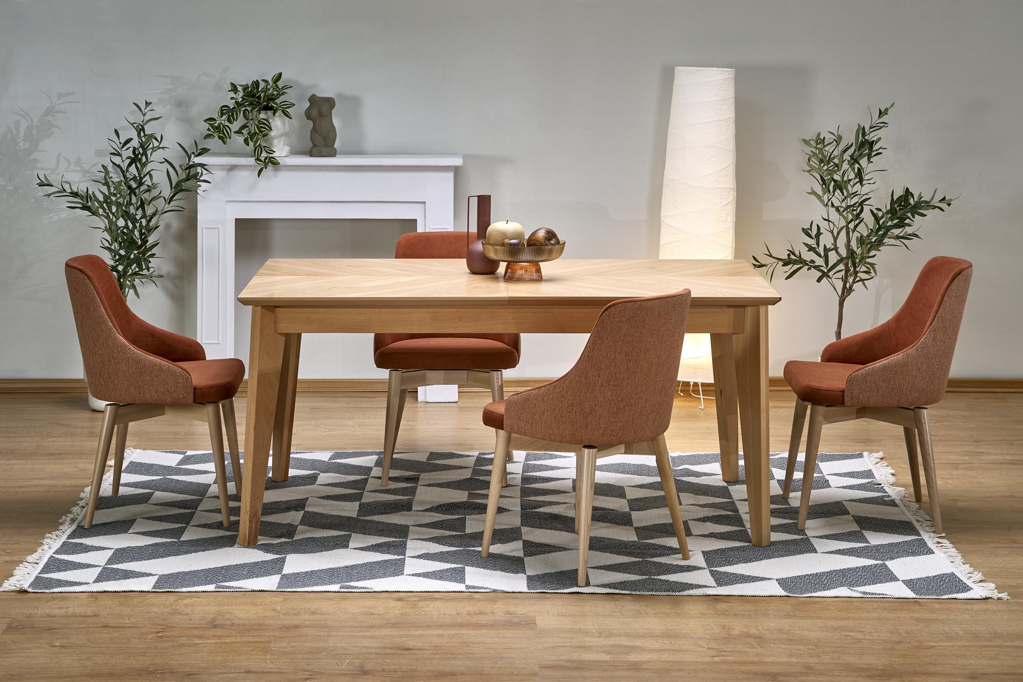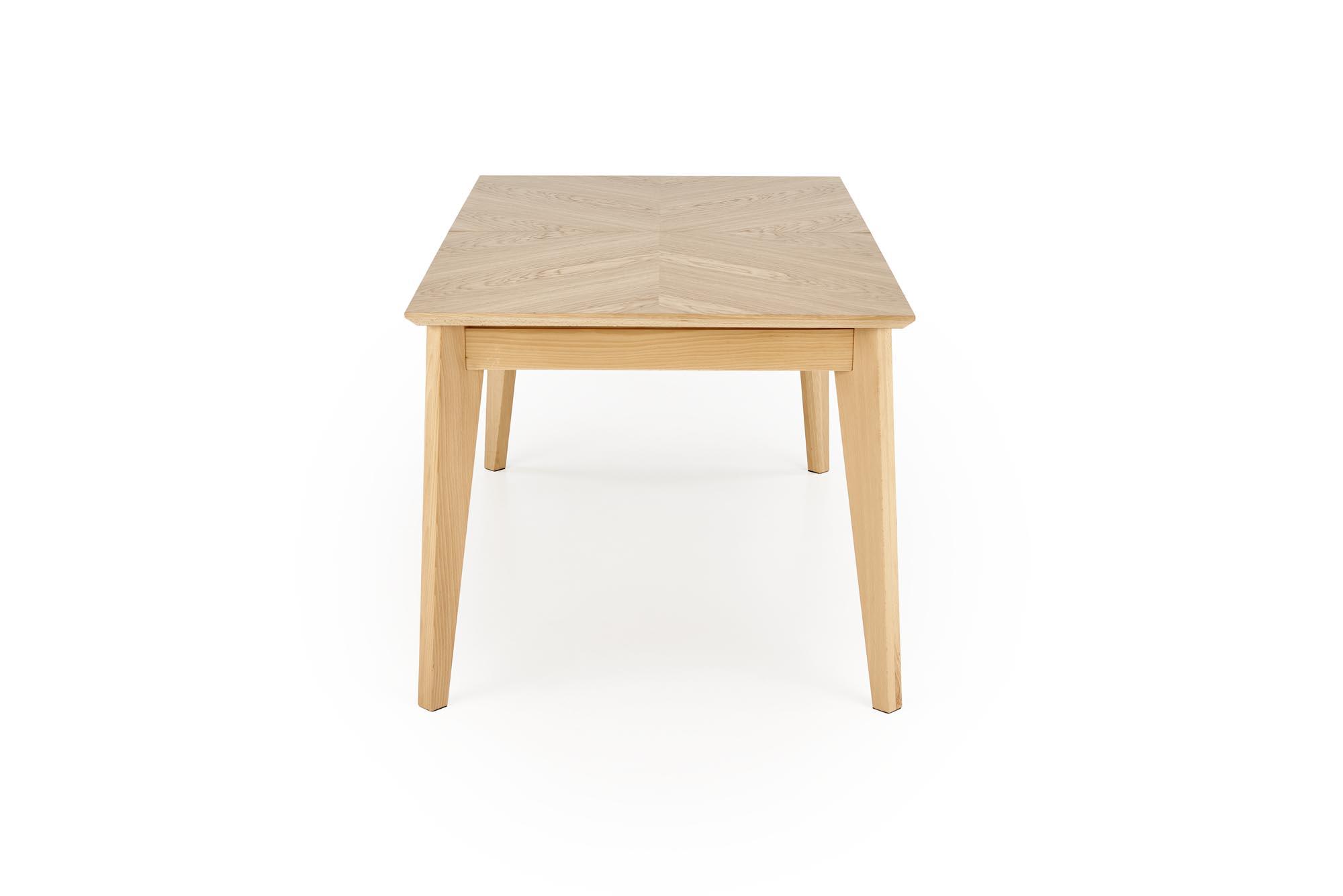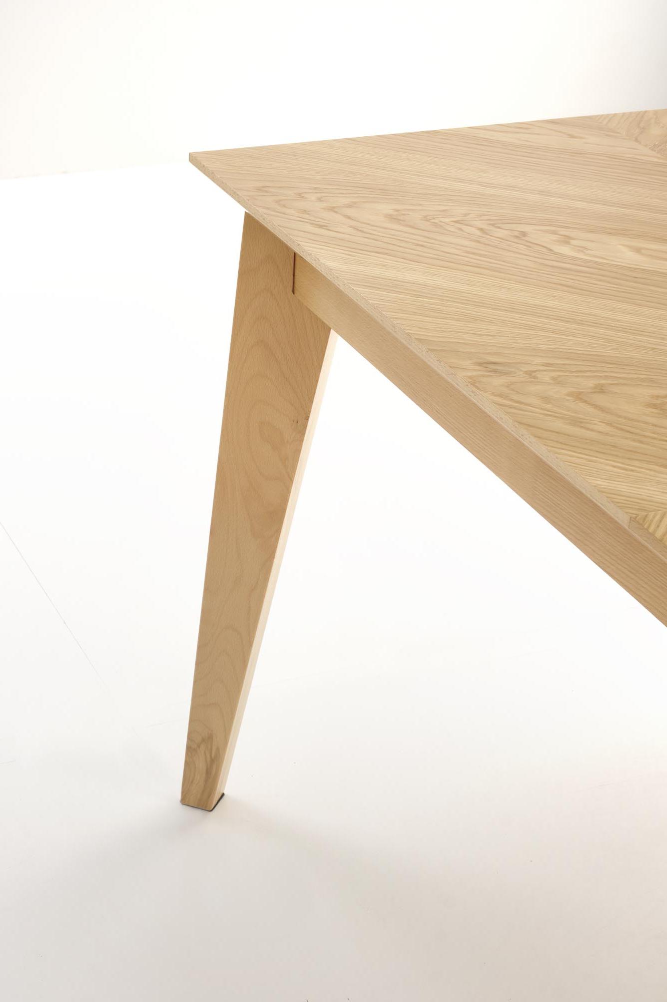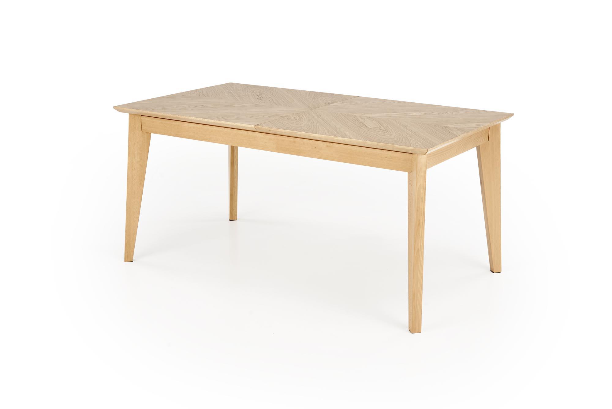 Stół wykonano z materiału: płyta meblowa + okleina naturalana - dębowa / drewno lite - bukowe, kolor blat - naturalny, nogi - naturalny